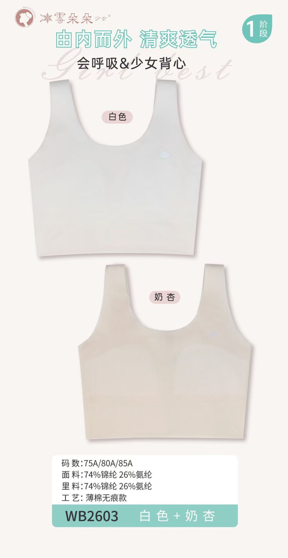 얼음과 눈 꽃 소녀 브라 모달 속옷베이스 조끼 순수 면화 개발 중학교 고등학생 Traceless