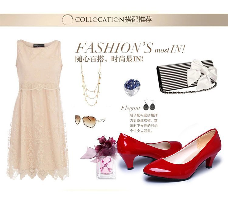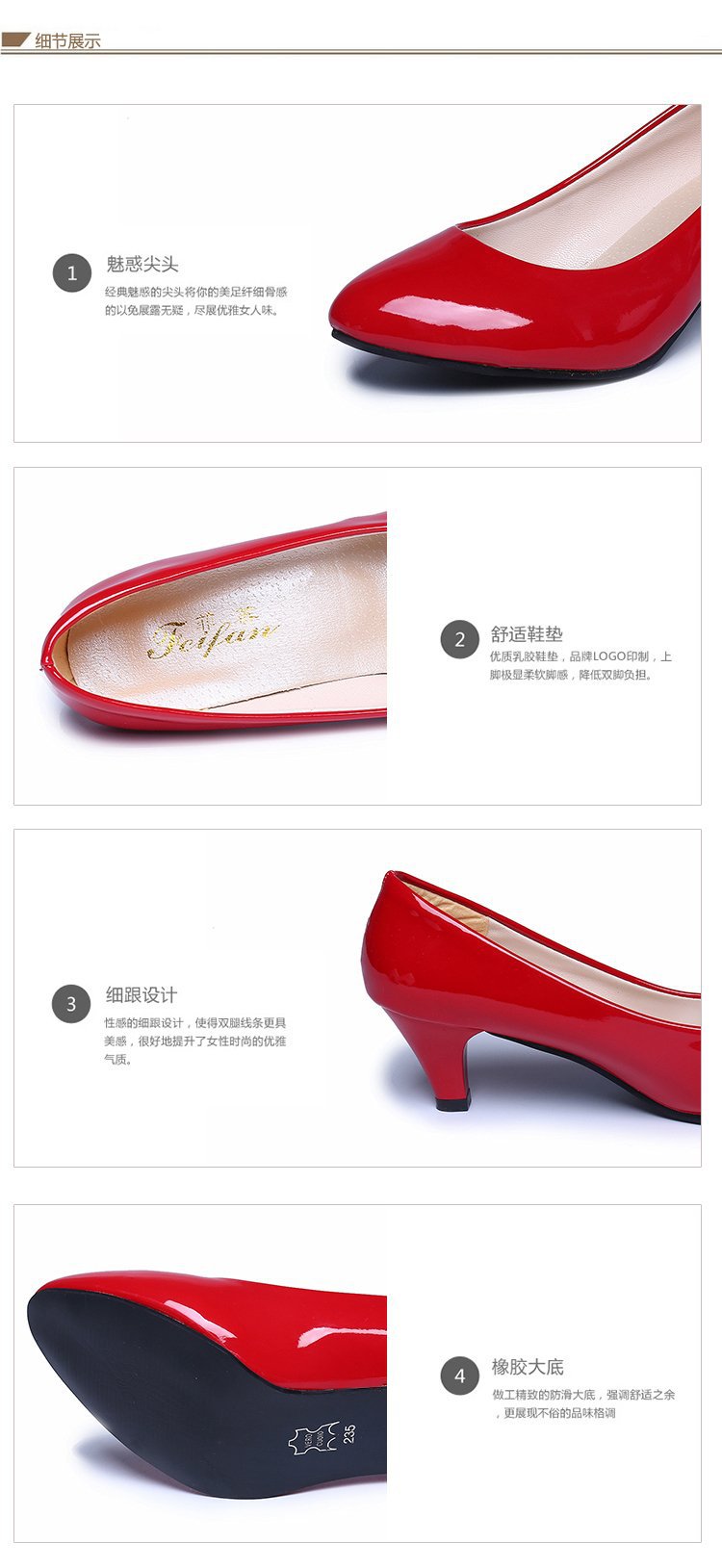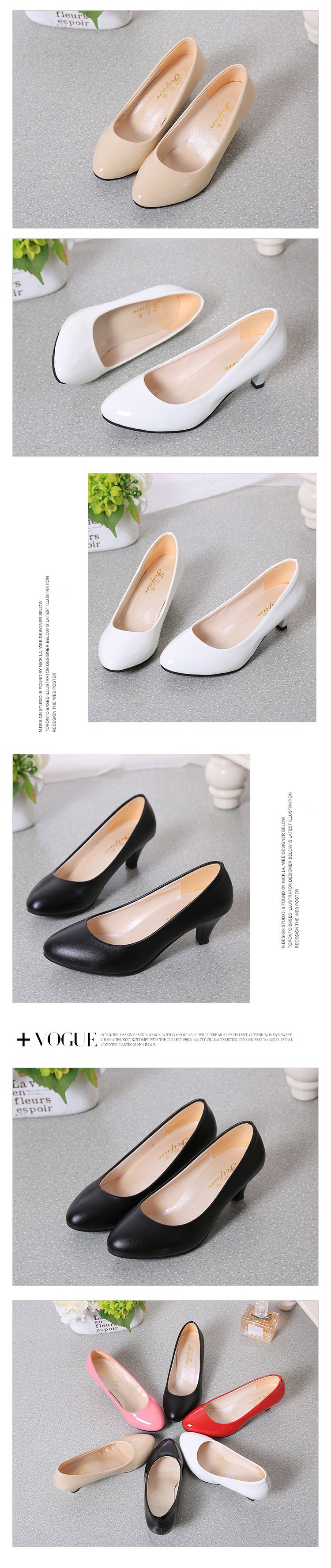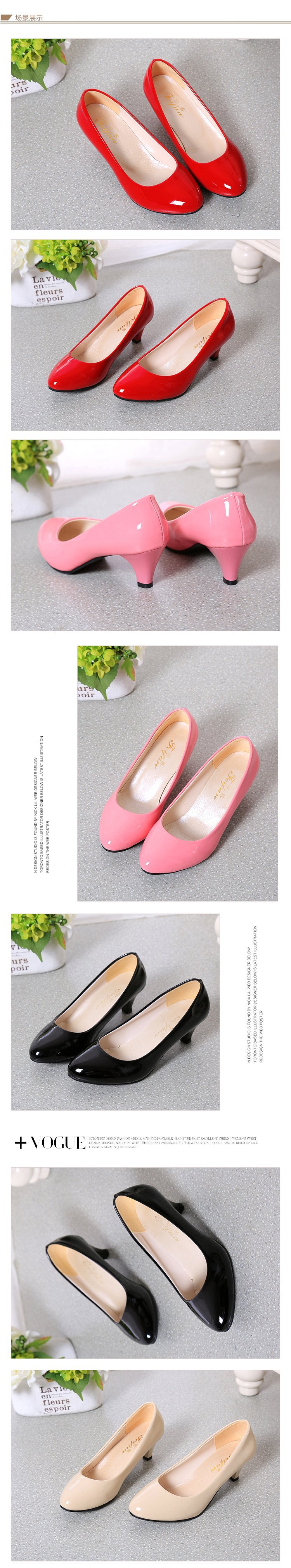 라운드 헤드 특허 가죽 전문 작업 신발 패션 하이힐 여성 신발 사계절 얕은 입 신발 플러스 사이즈 세대스토어 가기