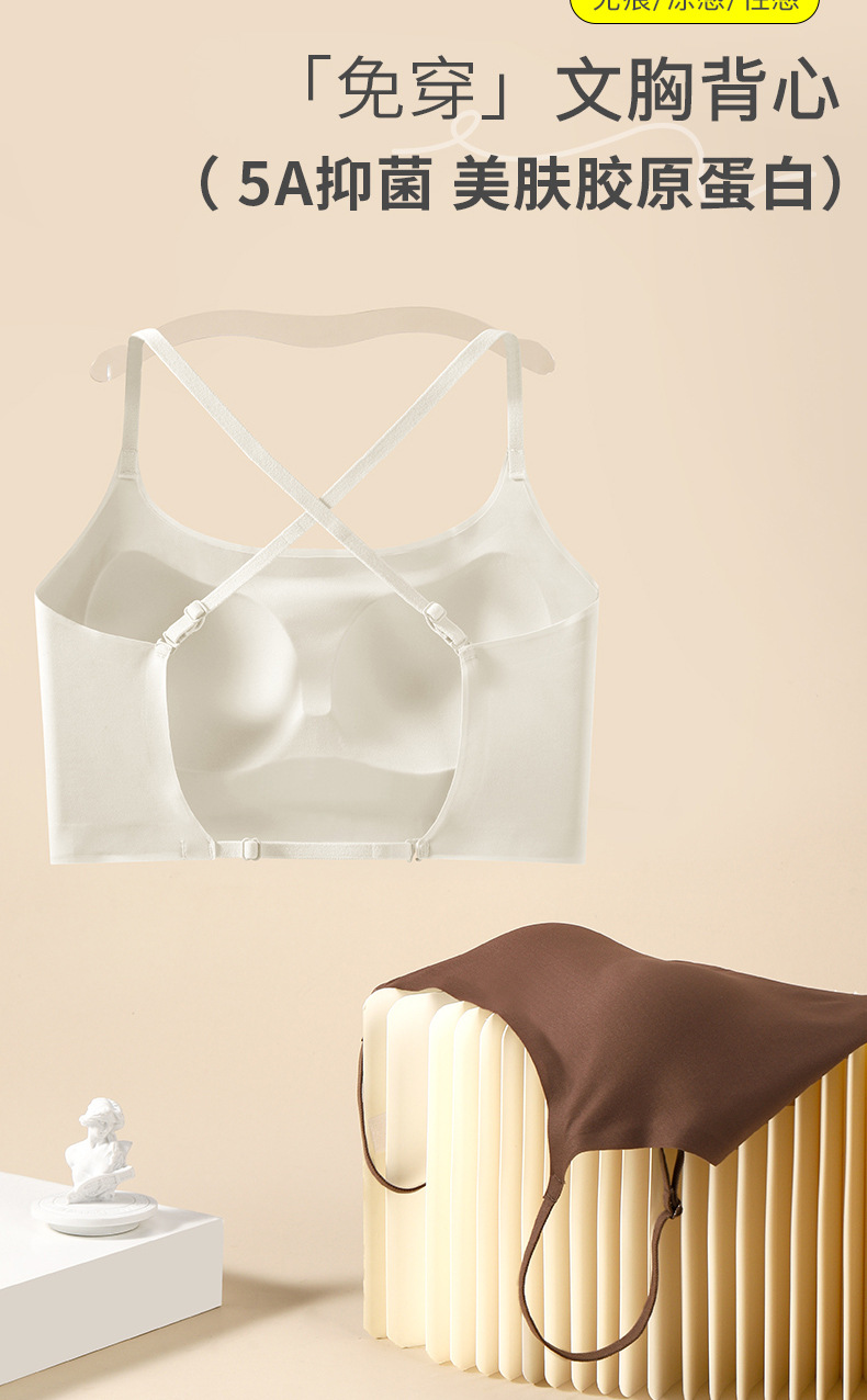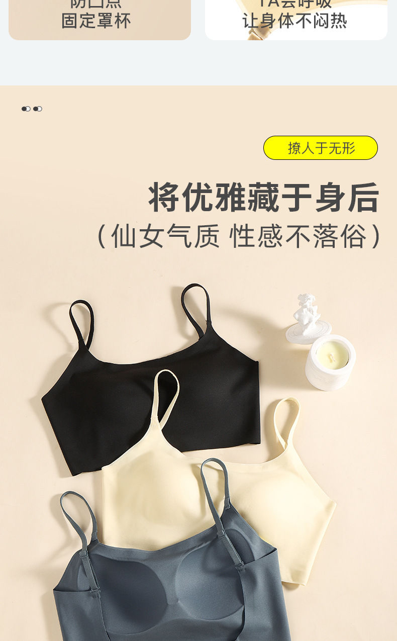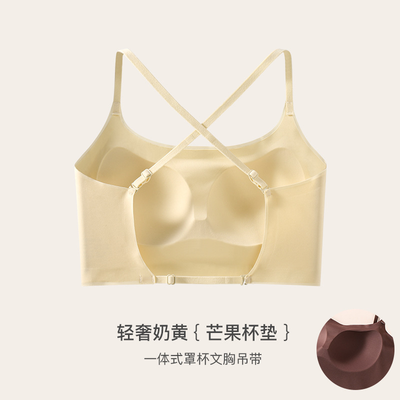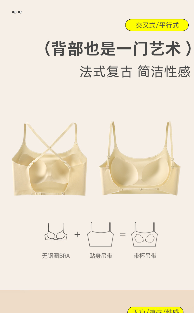 无痕美背内衣女吊带背心内搭带胸垫一体聚拢文胸性感打底薄款抹胸