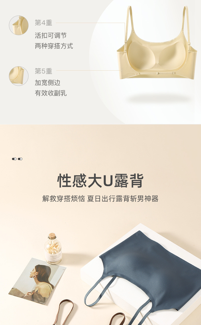 여성용 섹시한 U 자형 아이스 실크 원피스 스트랩 고정 컵 내부 봄과 여름 새 브래지어스토어 가기