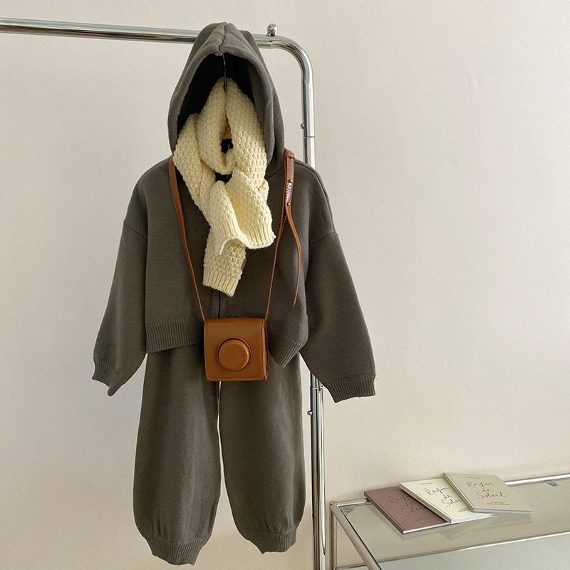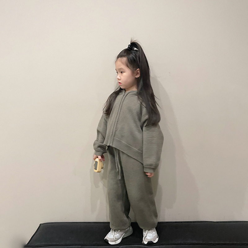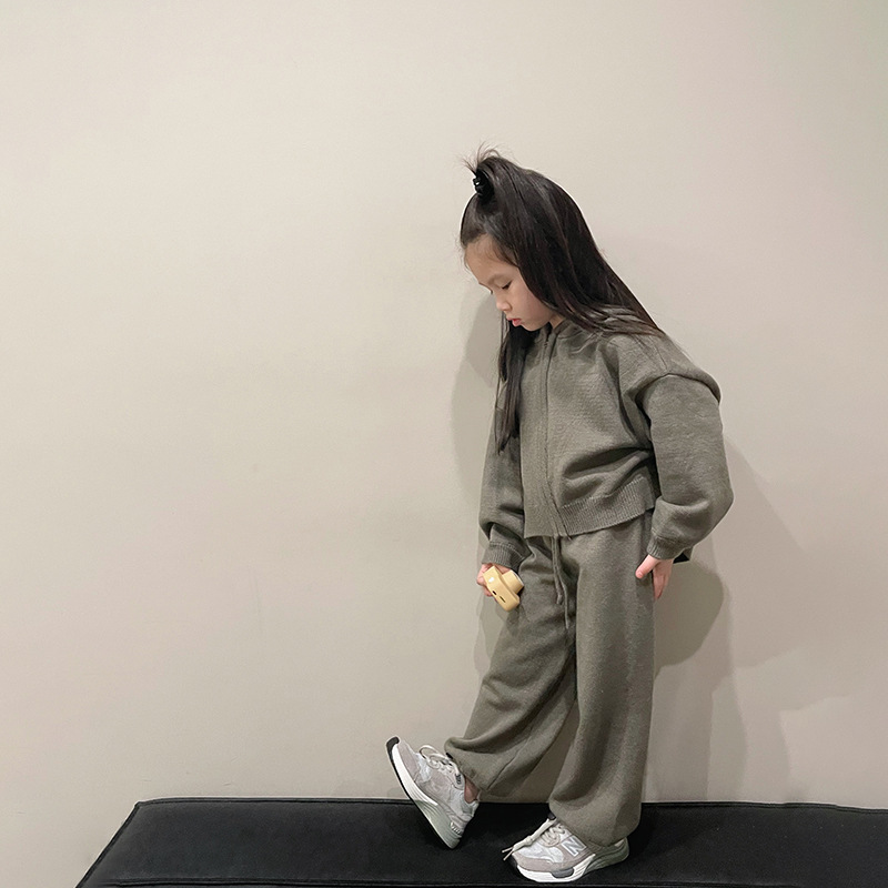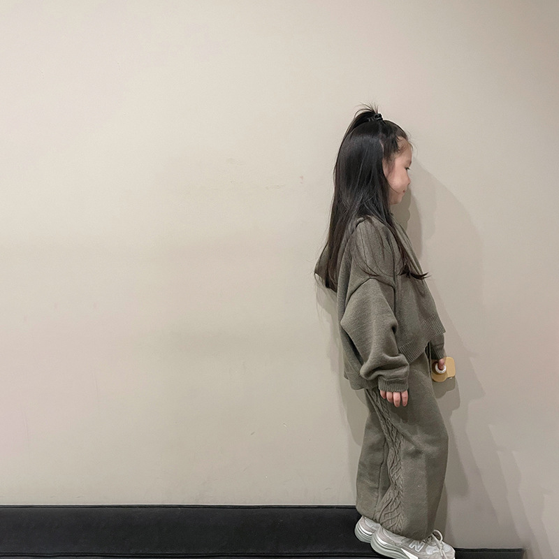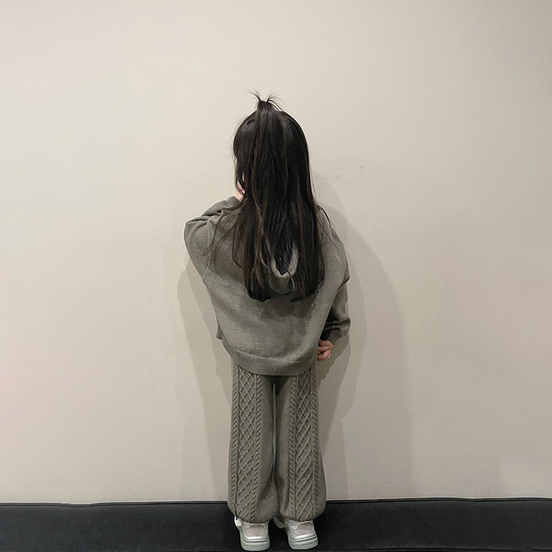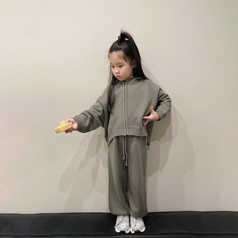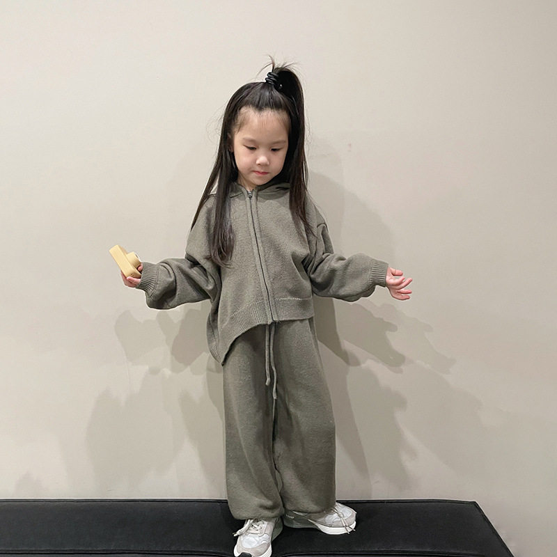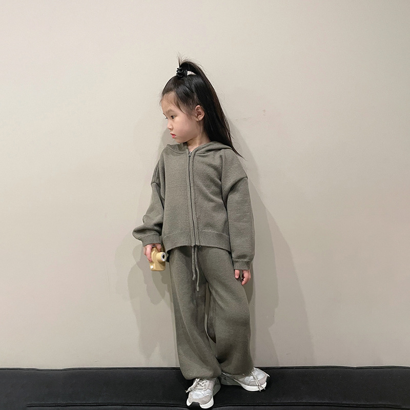 여아 세트 봄과 가을 여아 캐주얼 스웨터 세트 어린이 모든 일치 후드 니트 재킷 투피스 한국 스타일
