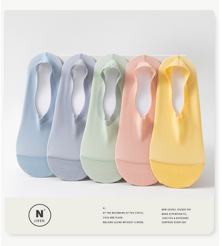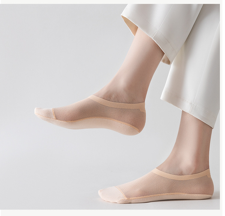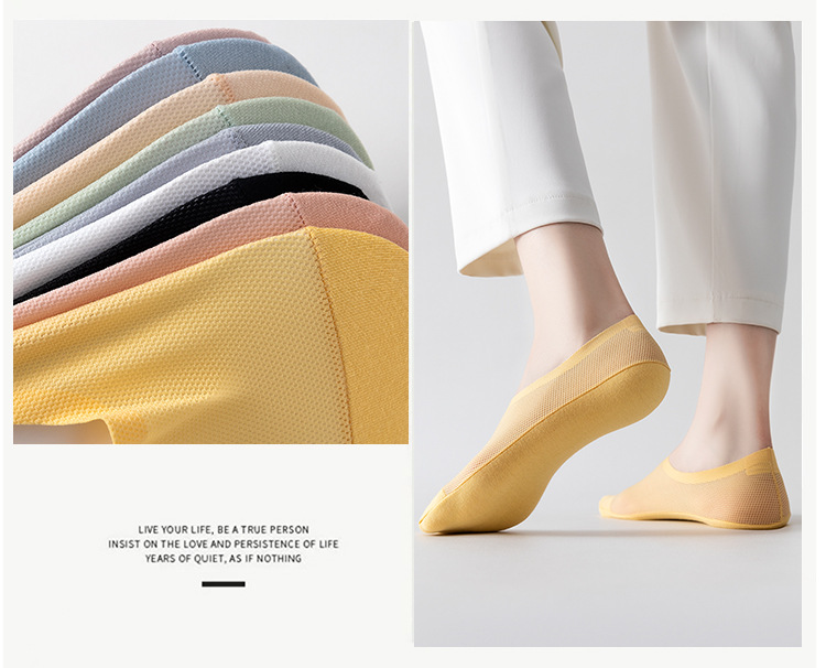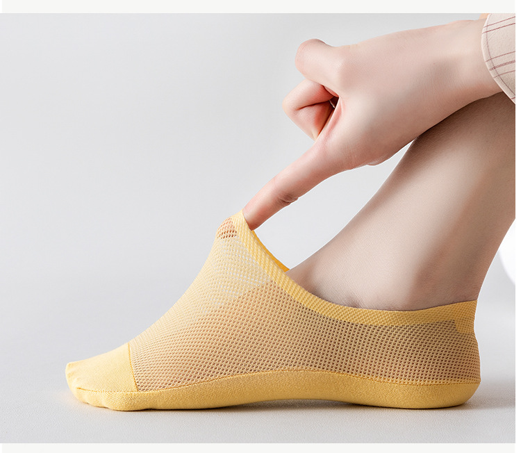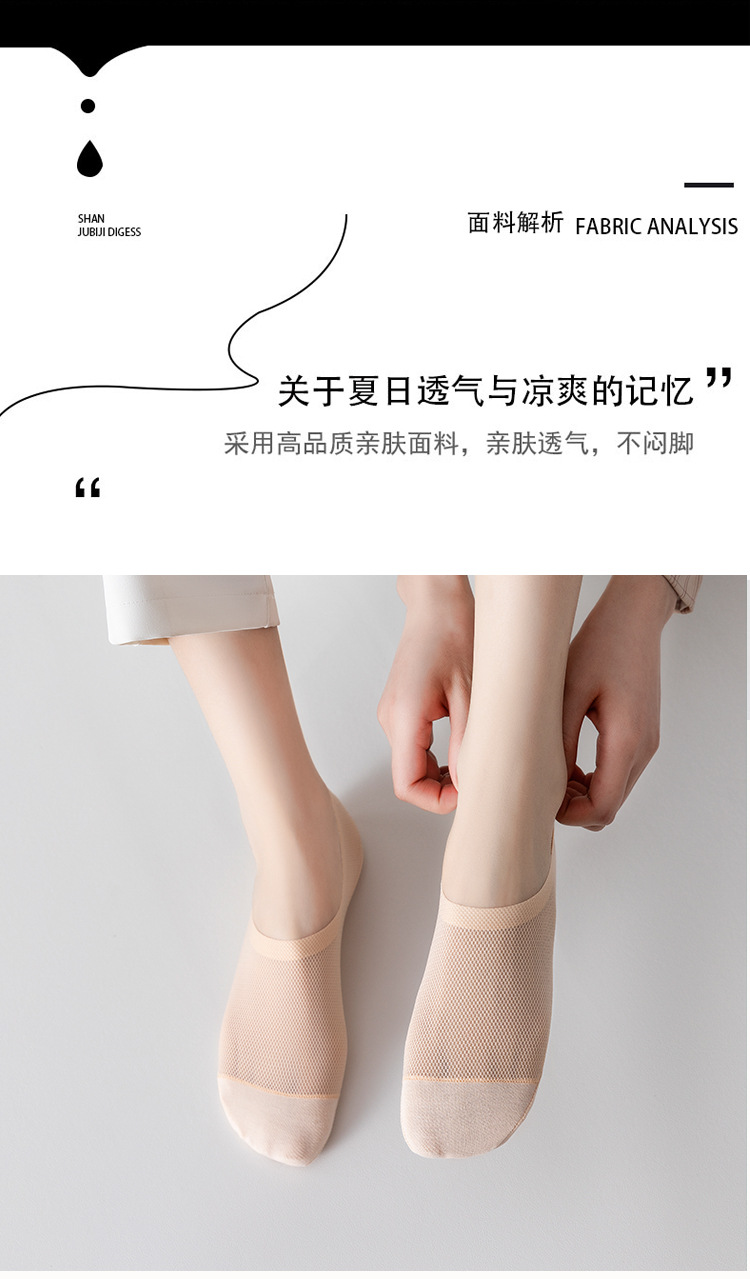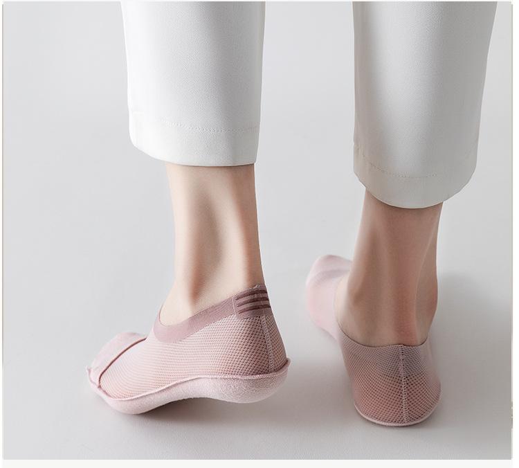 양말 여성용 얕은 얼음 실크 메쉬 보트 양말 여름 얇은 순면 바닥 실리콘 미끄럼 방지 통기성 스텔스 양말