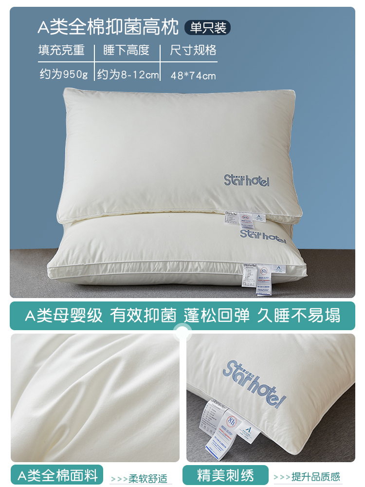 • 클래스 A 스타 코튼 하이 베개-[싱글 팩]