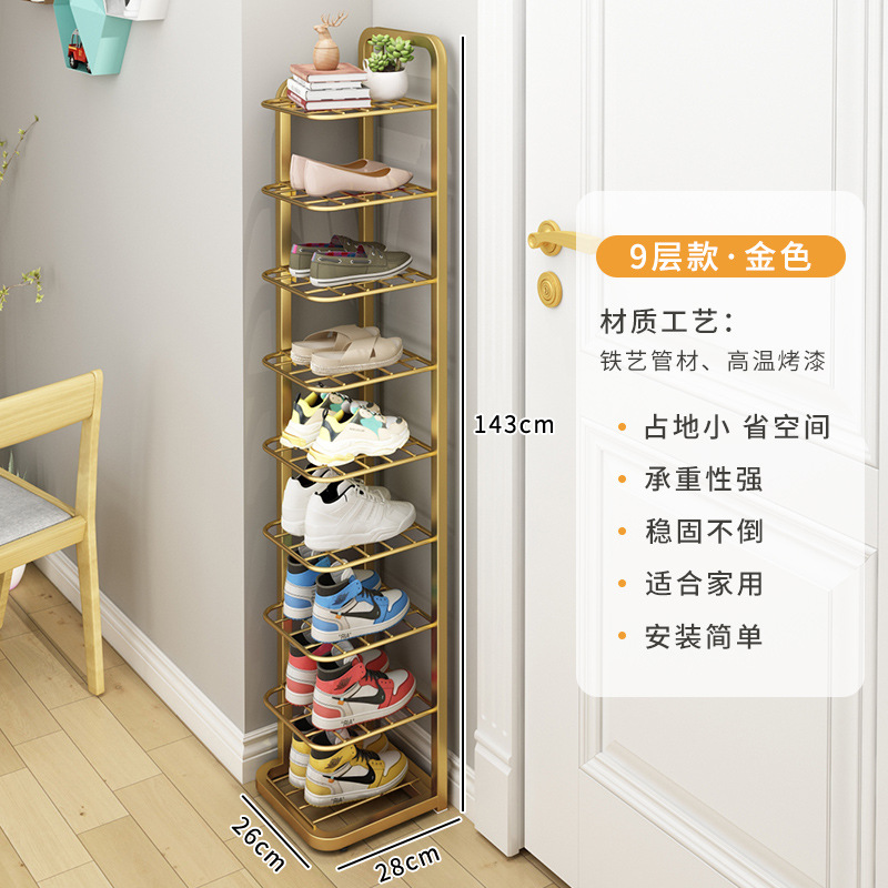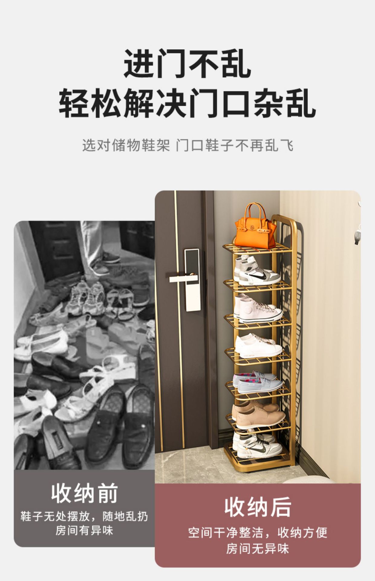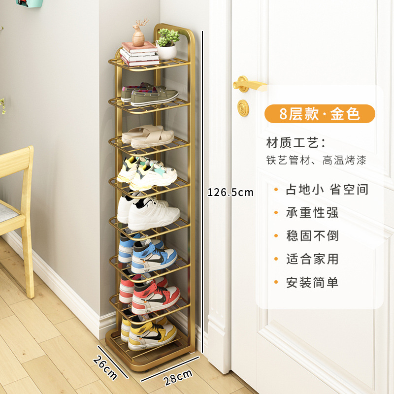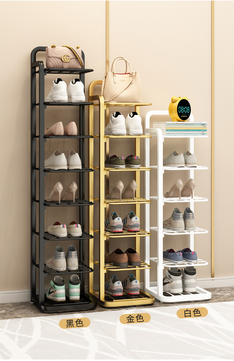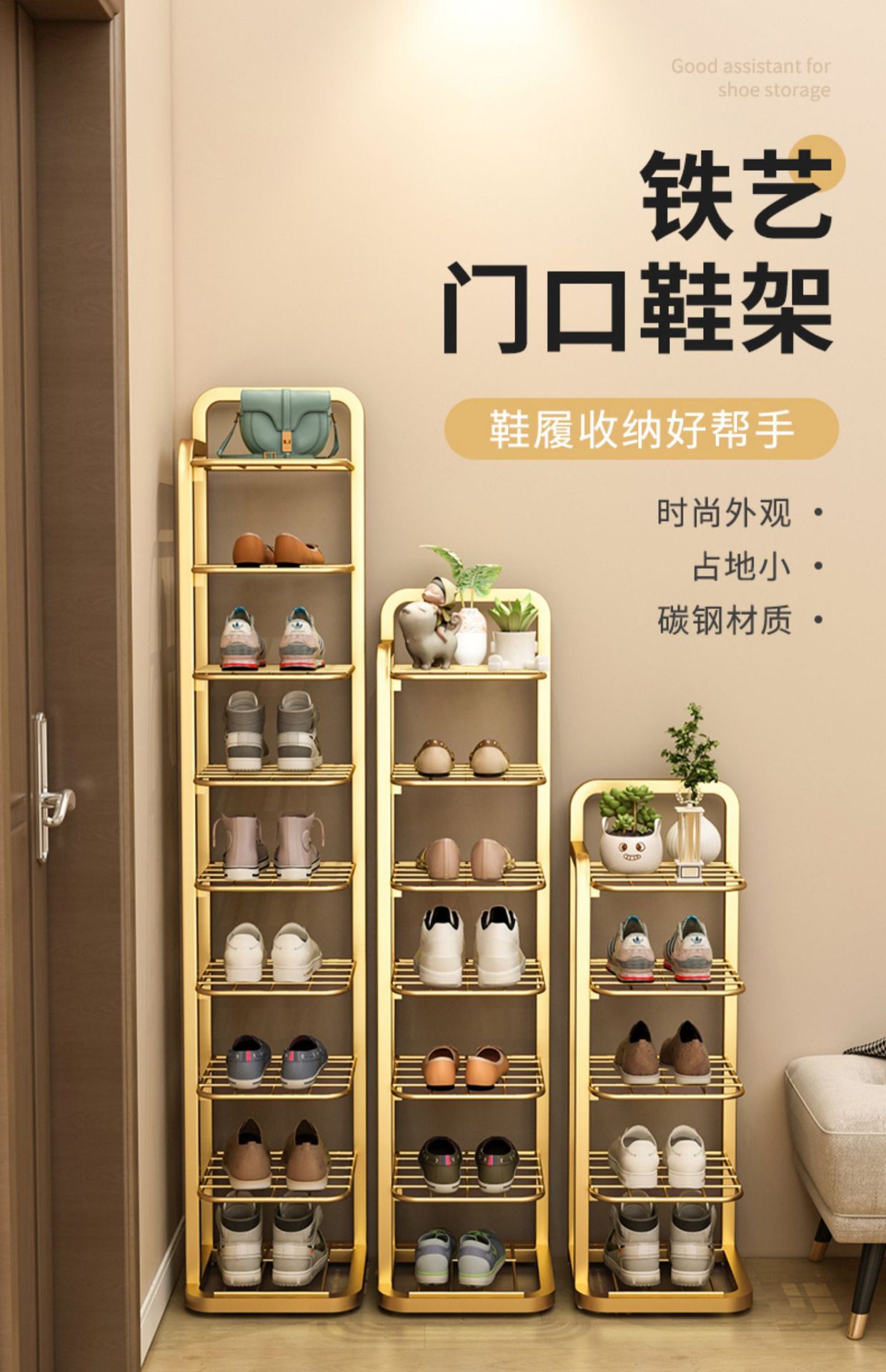 기숙사 다층 소형 좁은 신발장 금속 수납 신발 선반 가정용 간편 현관문 스탠드형 접이식 슬리퍼 선반스토어 가기