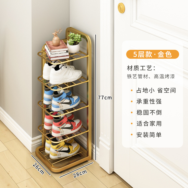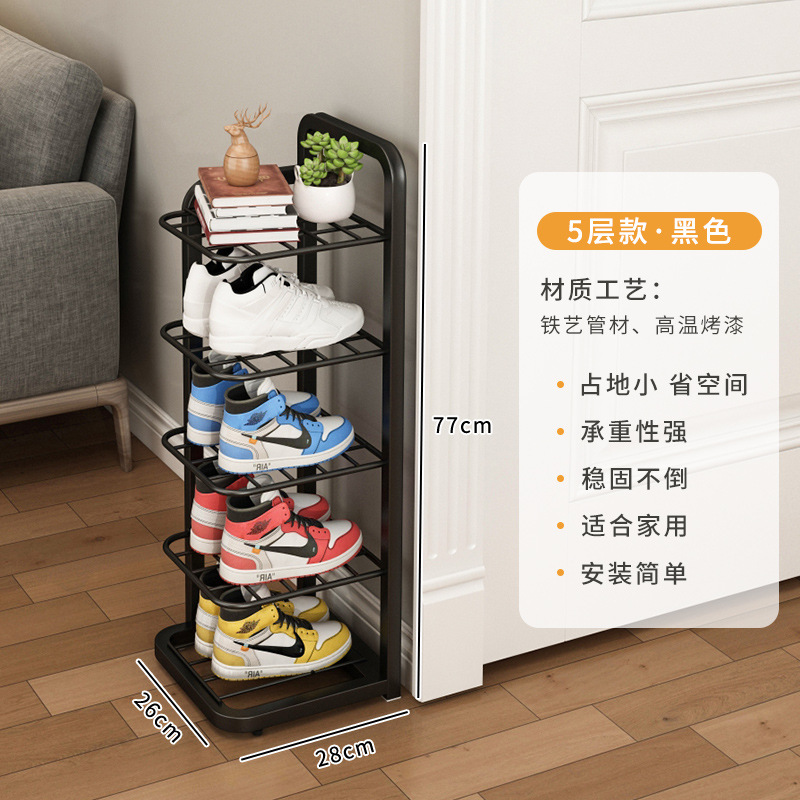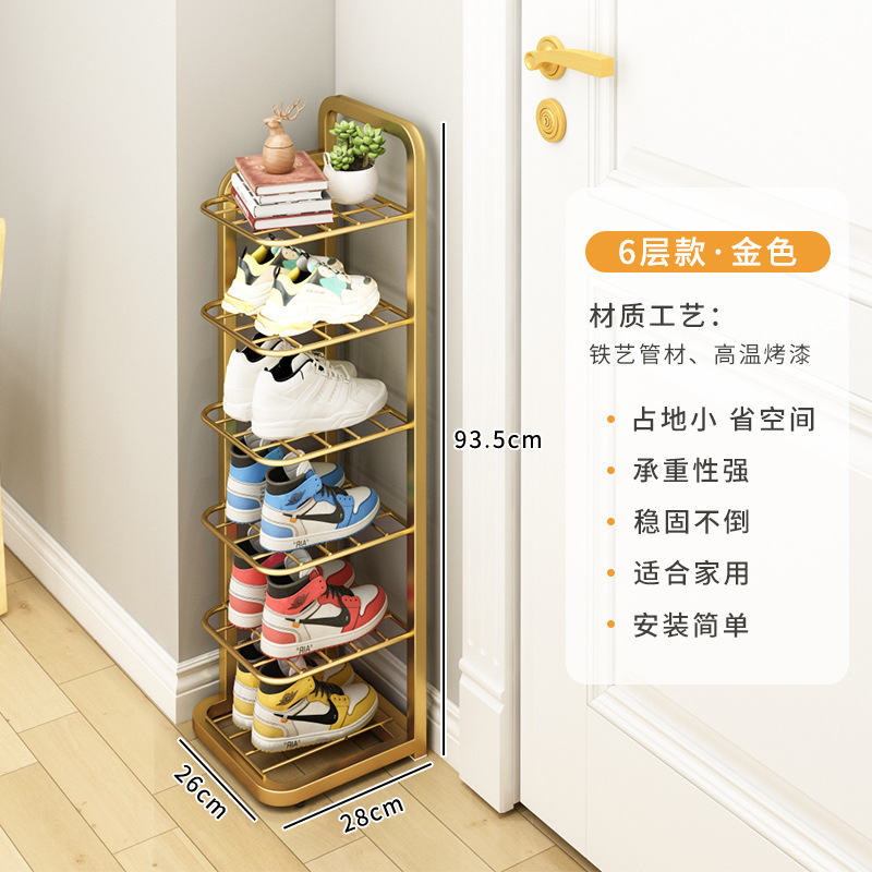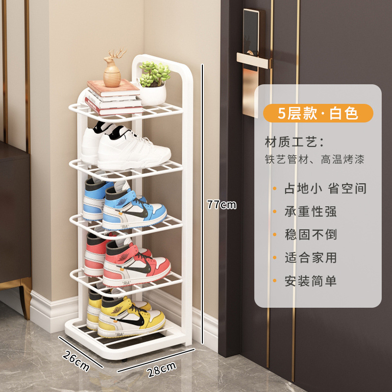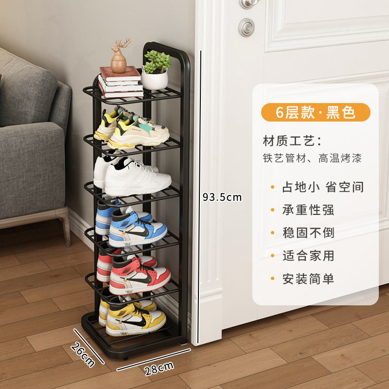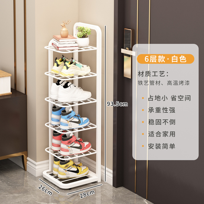기숙사 다층 소형 좁은 신발장 금속 수납 신발 선반 가정용 간편 현관문 스탠드형 접이식 슬리퍼 선반