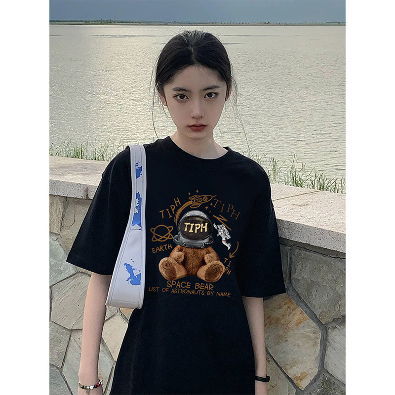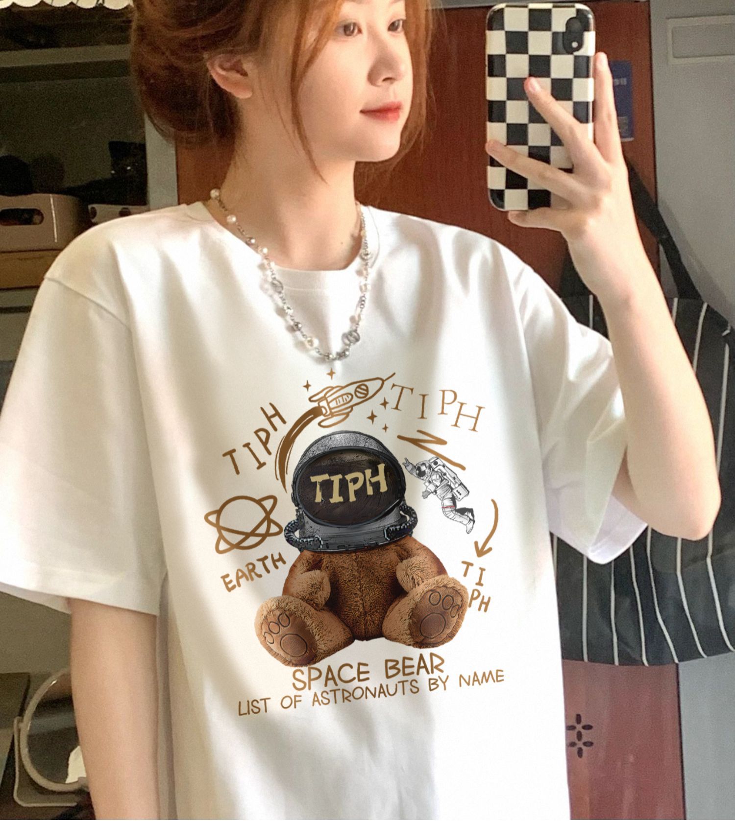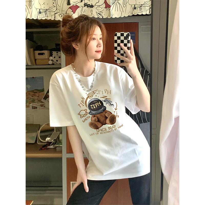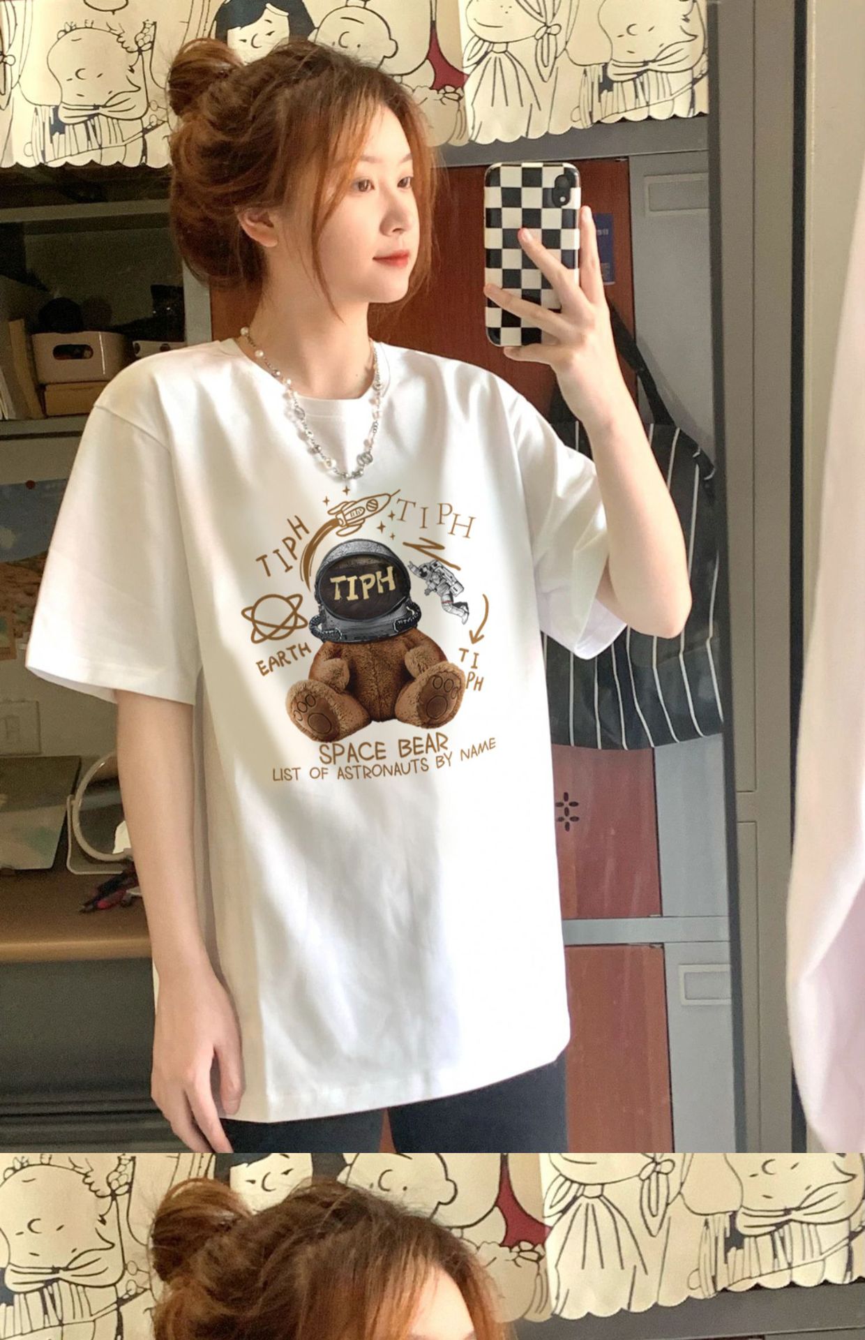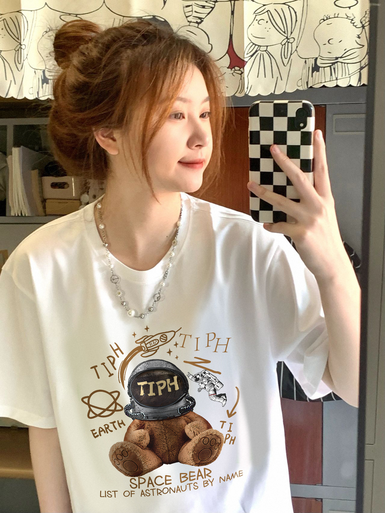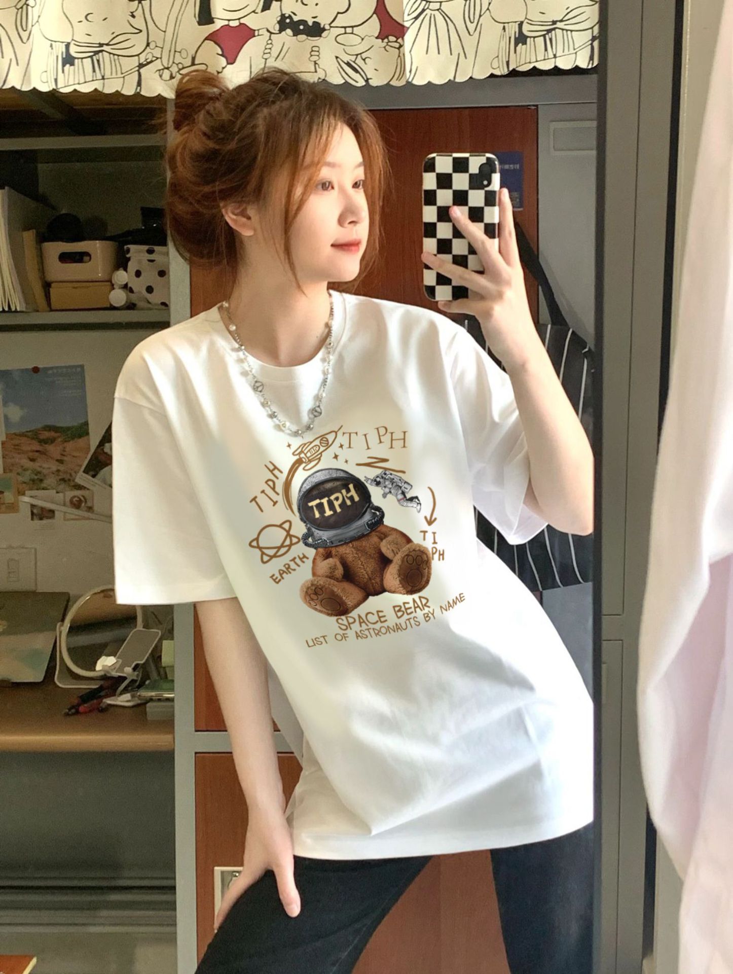 만화 곰 소녀 티셔츠 봄 새로운 스타일 2025 여름 반팔 작은 디자인 틈새 흰색 탑스토어 가기