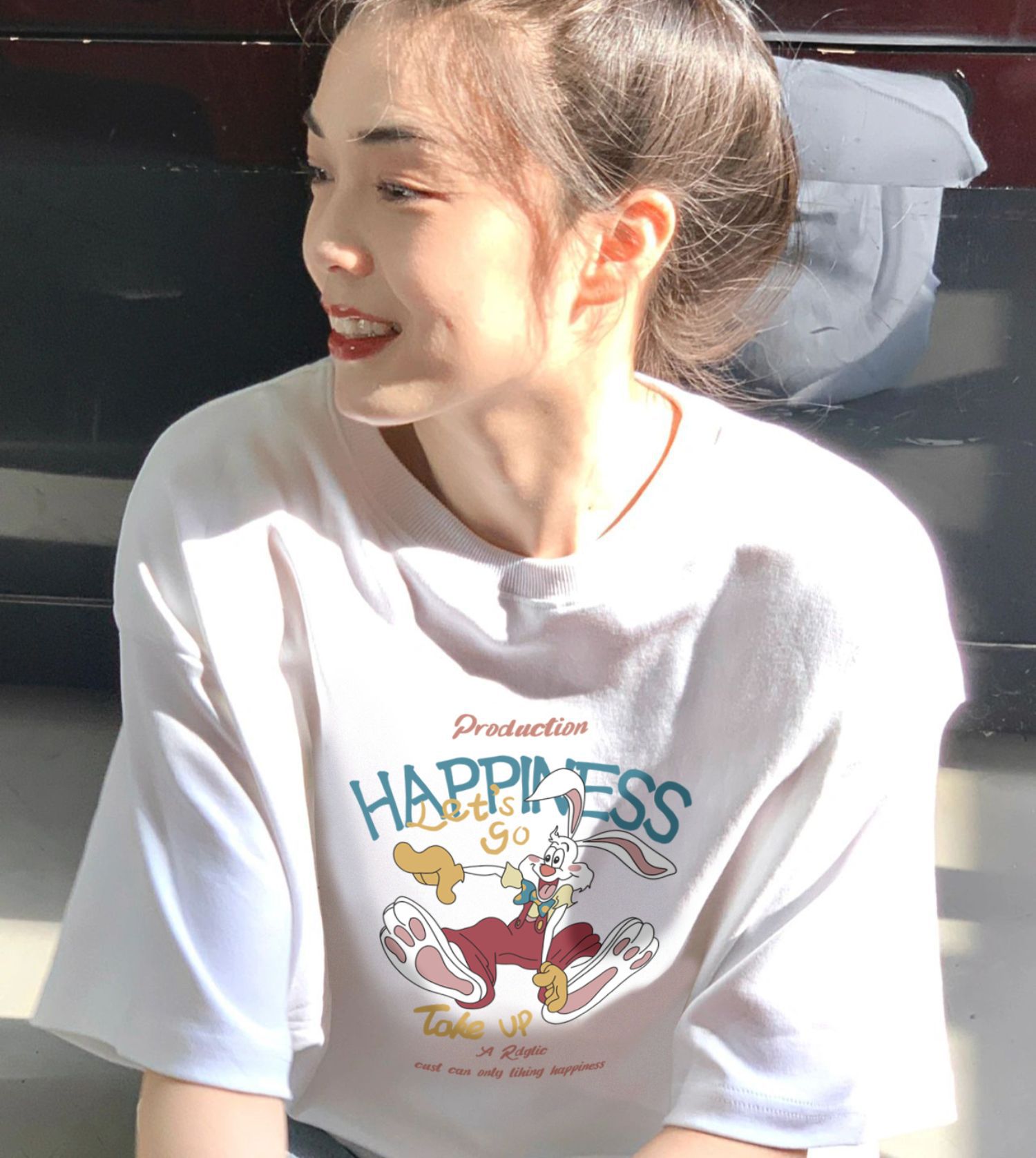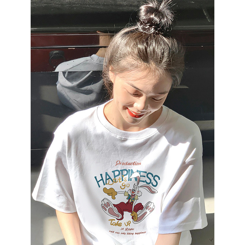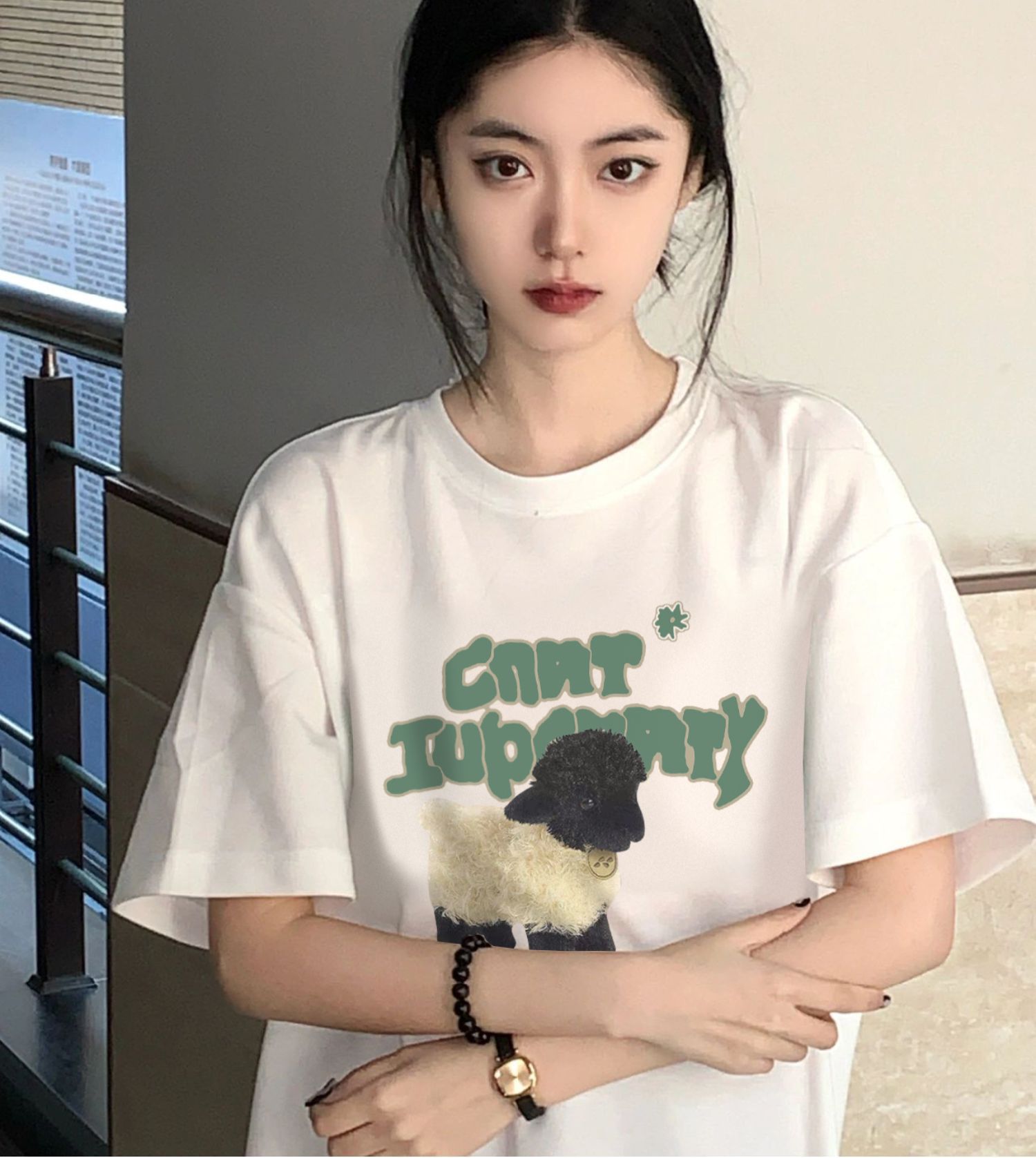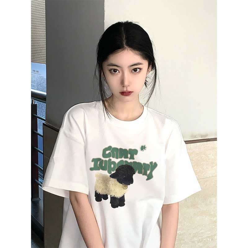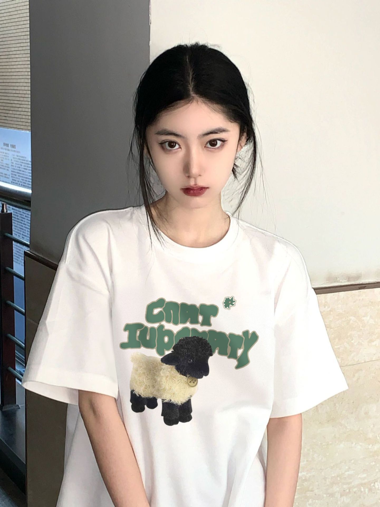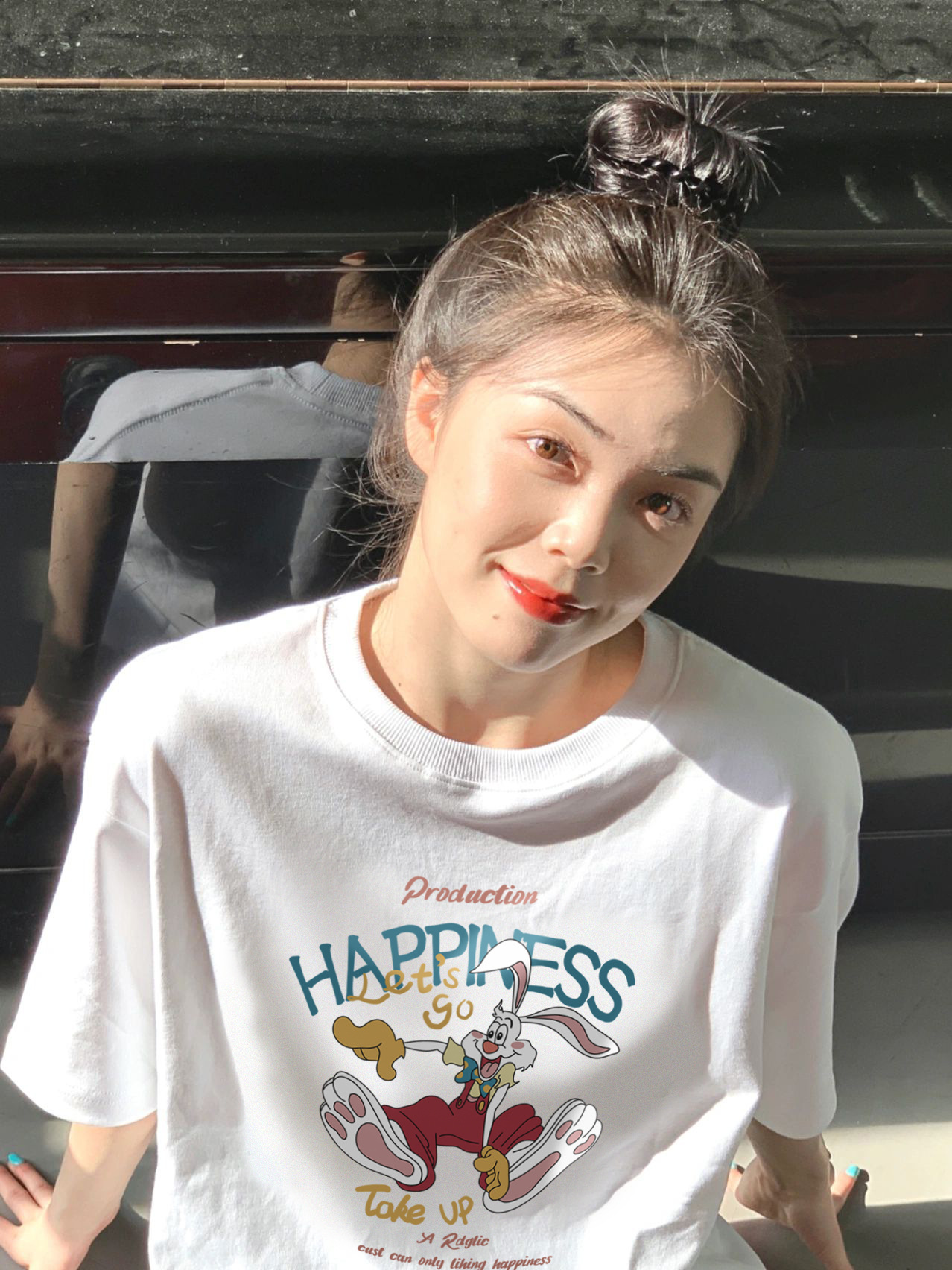 만화 곰 소녀 티셔츠 봄 새로운 스타일 2025 여름 반팔 작은 디자인 틈새 흰색 탑스토어 가기