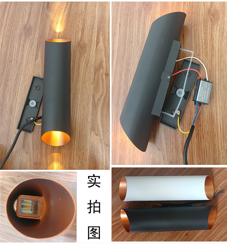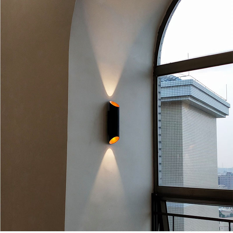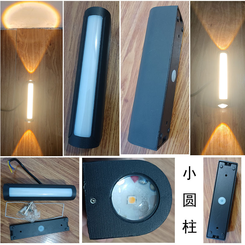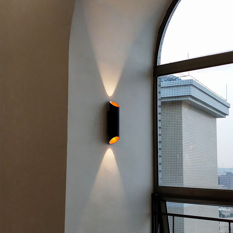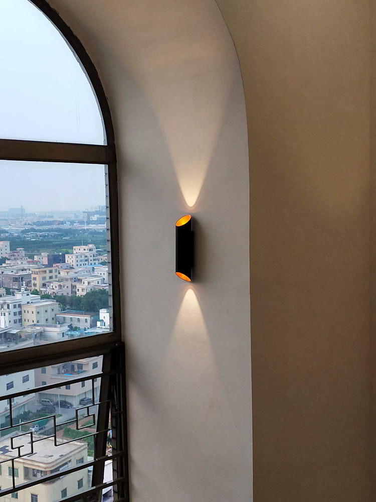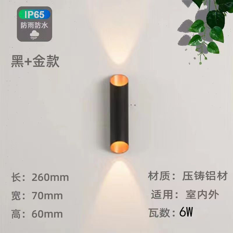 户外防水led壁灯双头上下发光墙壁灯铝材黑金竹筒款创意过道射灯