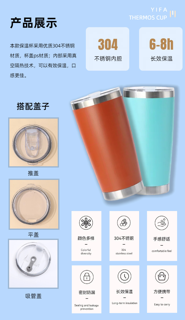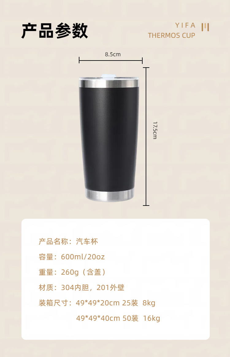 국경 간 재고 20온스 자동차 컵, 스프레이 도장된 304 스테인리스 이중 진공 단열 보온/보냉 차량용 아이스컵