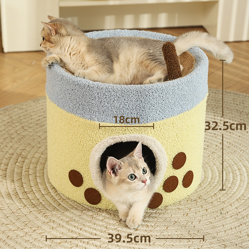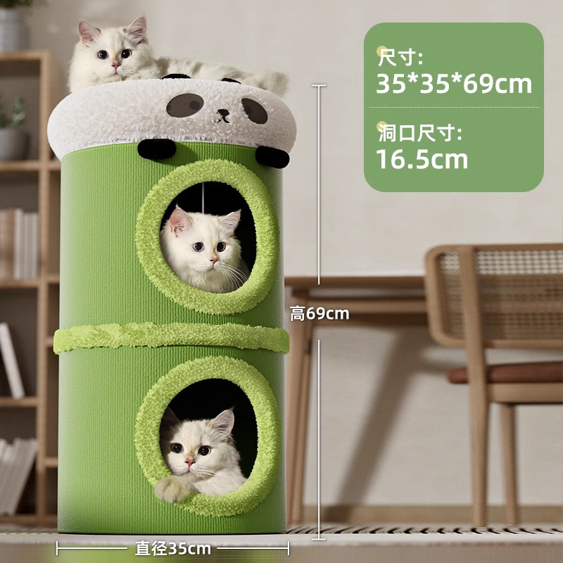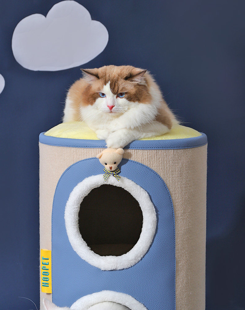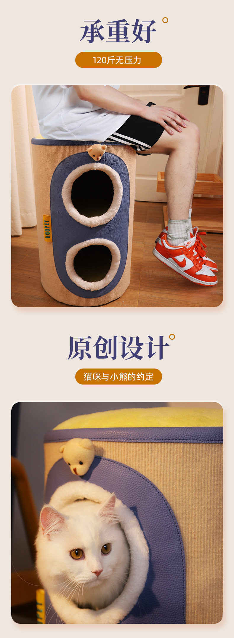 【品名】:HOOPET圆形剑麻猫抓桶/邮筒小熊双层猫窝 S/小熊之家高筒窝爬 S/ 奶茶剑麻桶-(单层/双层)/宠物三层树洞圆筒爬架(米色)