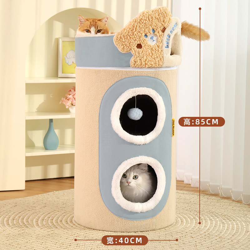 宠物三层树洞圆筒爬架(米色):37*37*72 CM