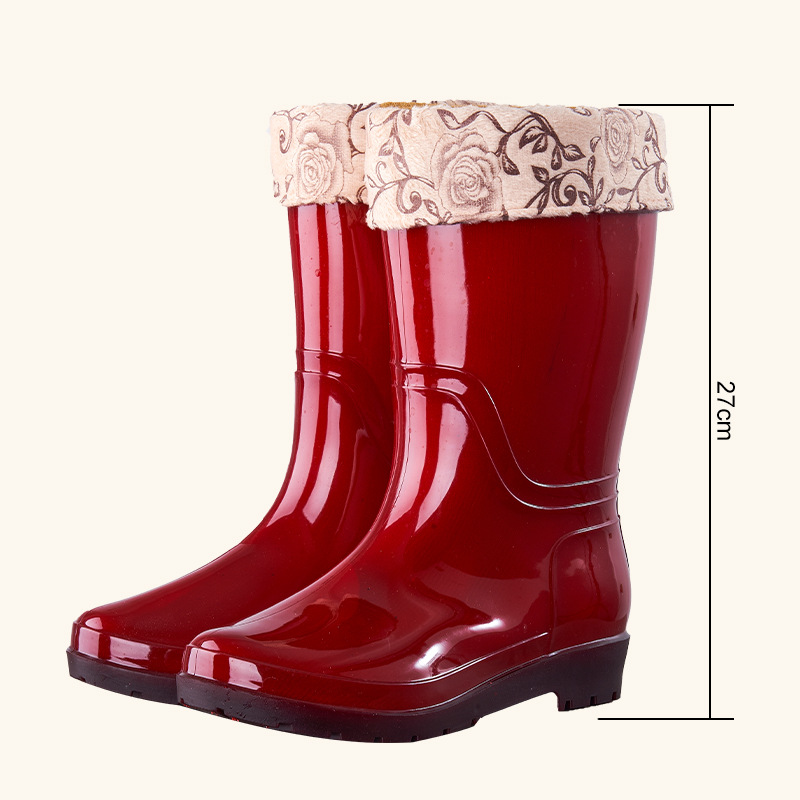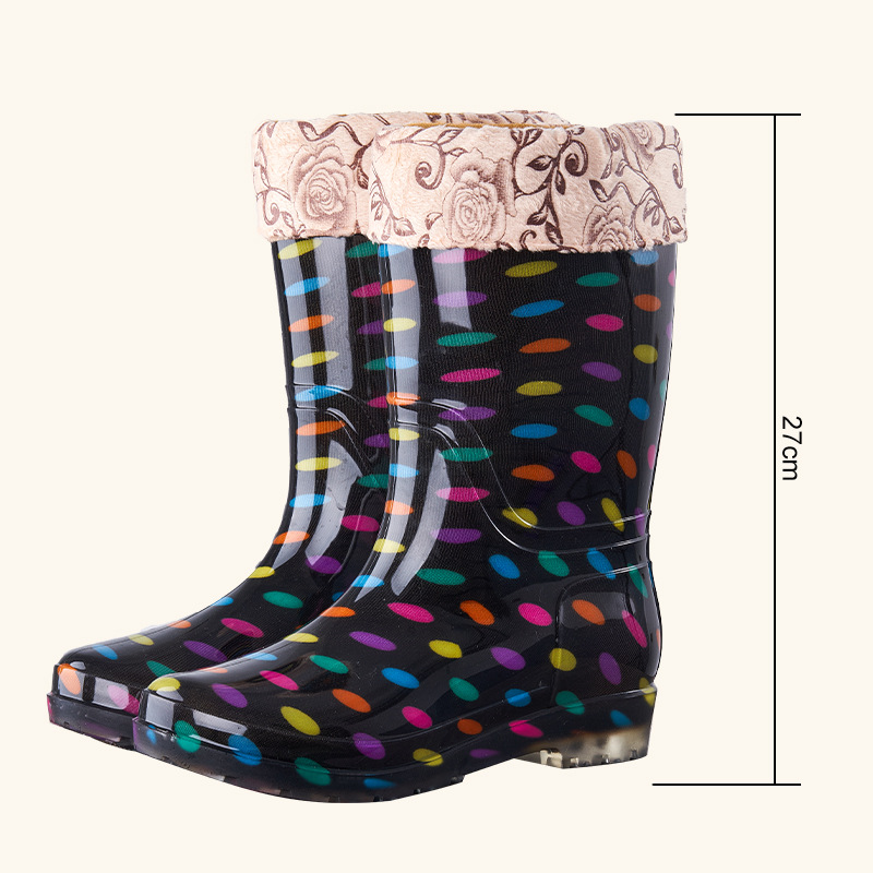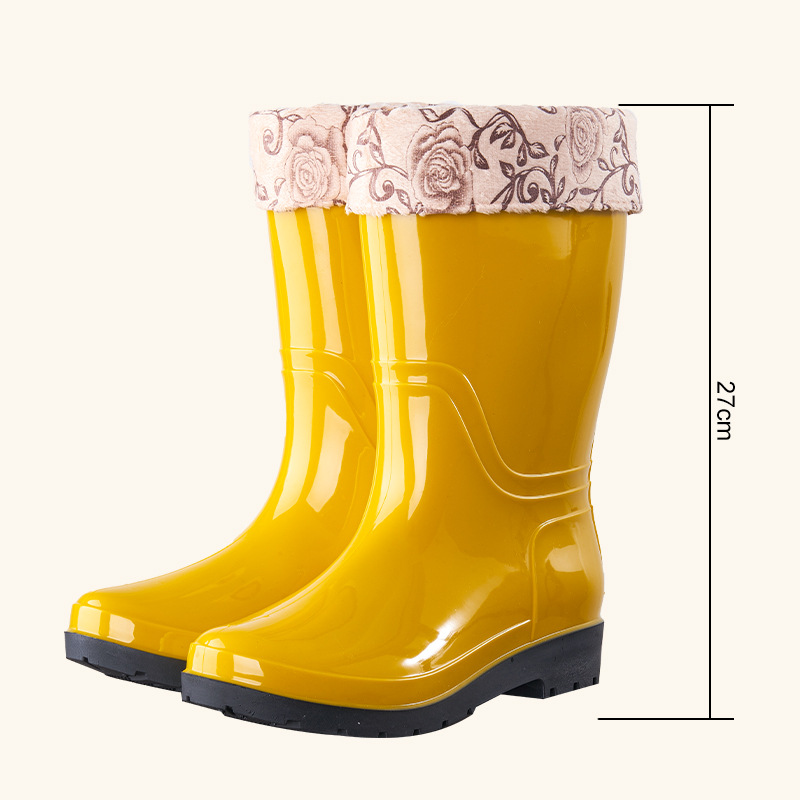 여성용 중간 길이 레인부츠, 성인용 워터슈즈, 패셔너블한 워터부츠, 보온 및 플리스 안감, 방수 작업화, 고무신