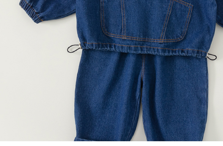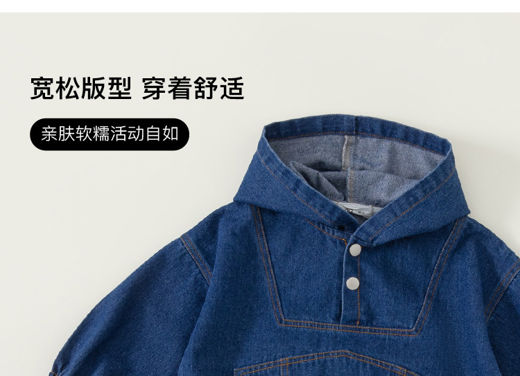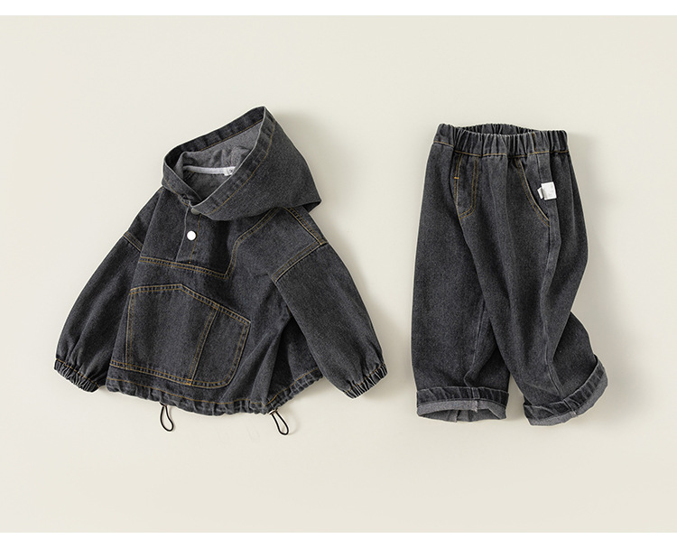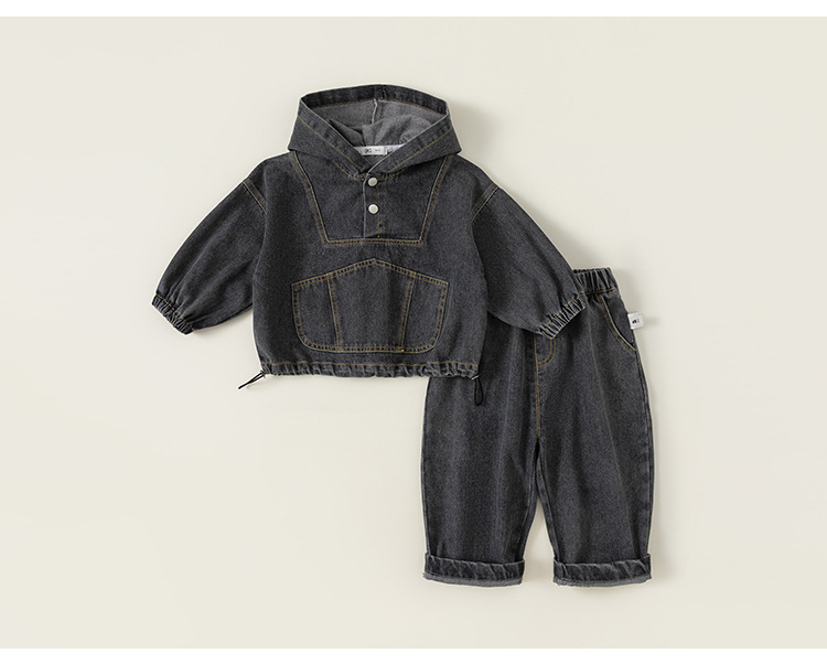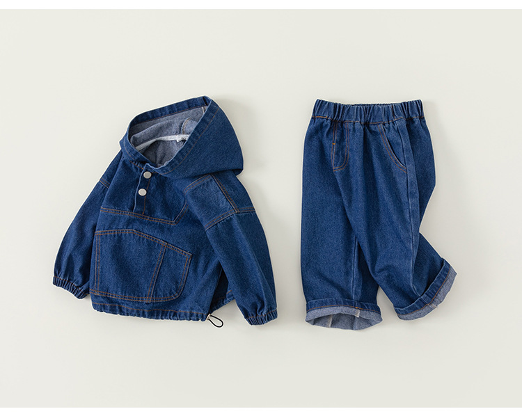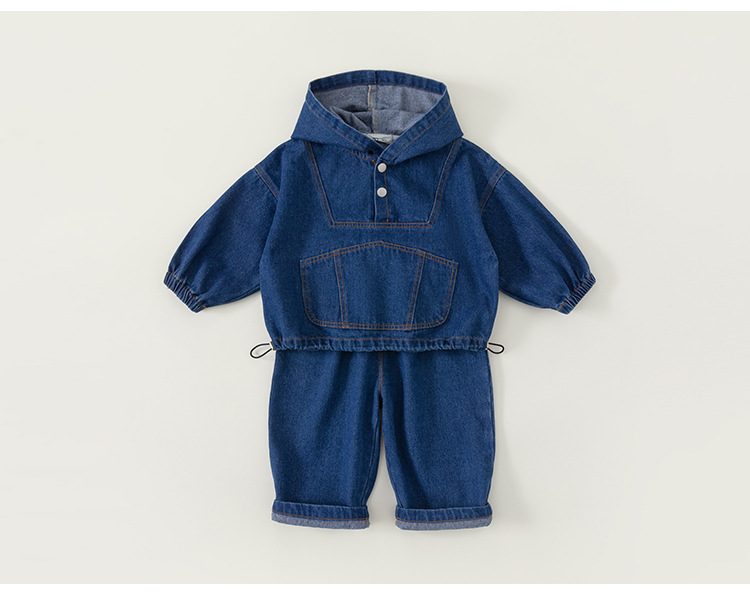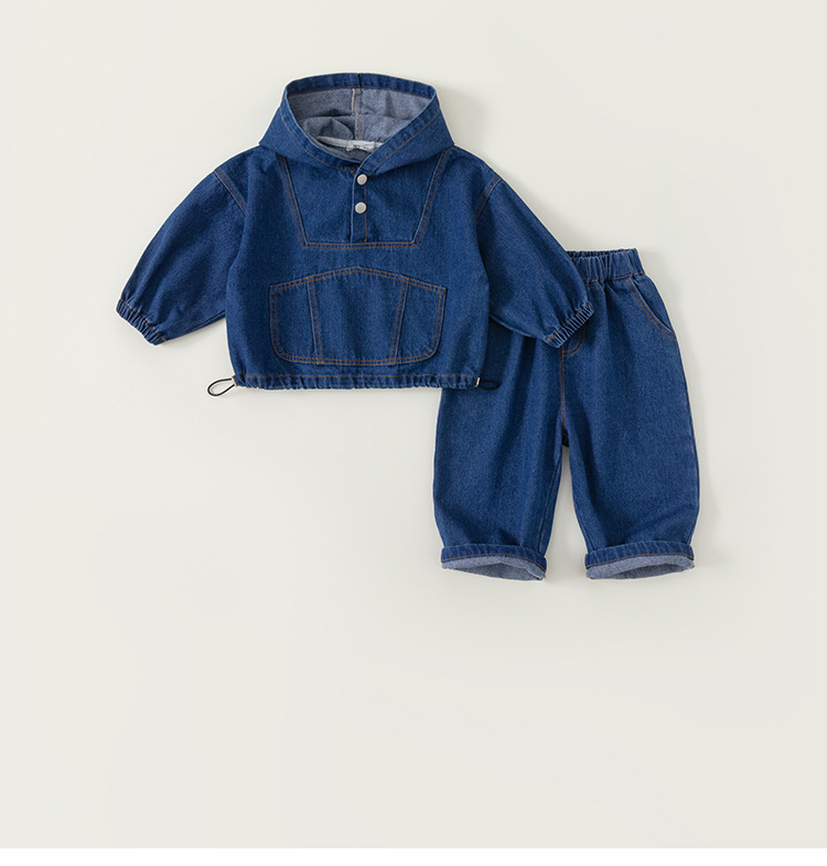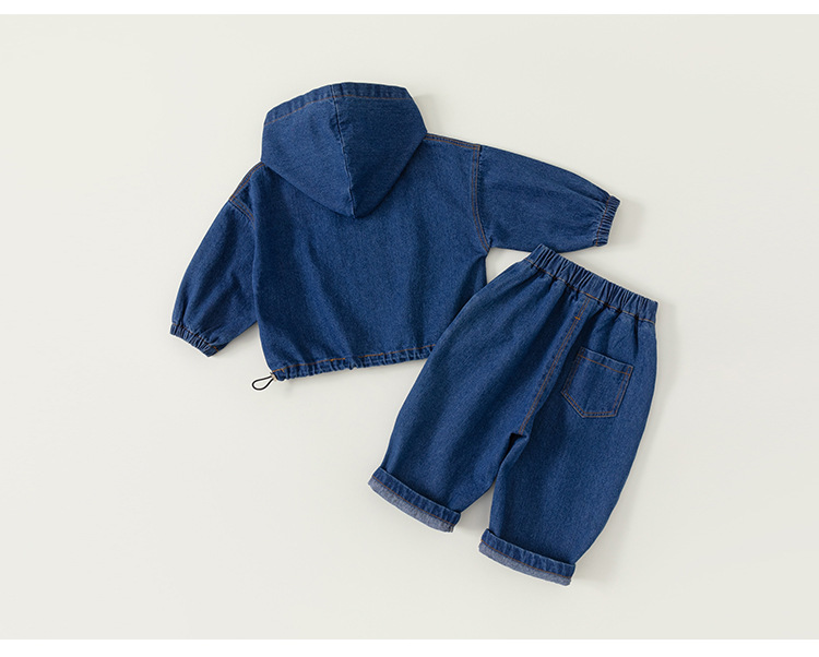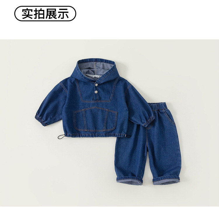 유바오 아동복 남아 가을 후드 데님 투피스 세트 한국 스타일 아동복 2025 중소형 아동복