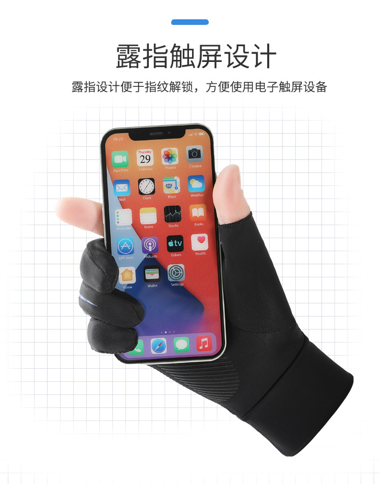 • 아이스 실크 5 파악 반 손가락 블루