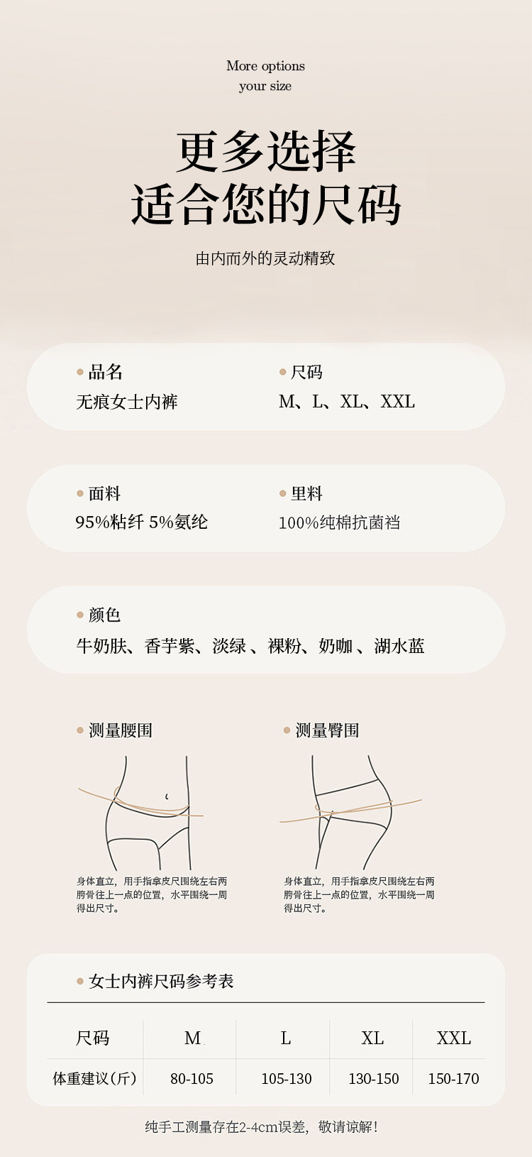 4、贴身衣物不支持7天无理由退换货,悉知;