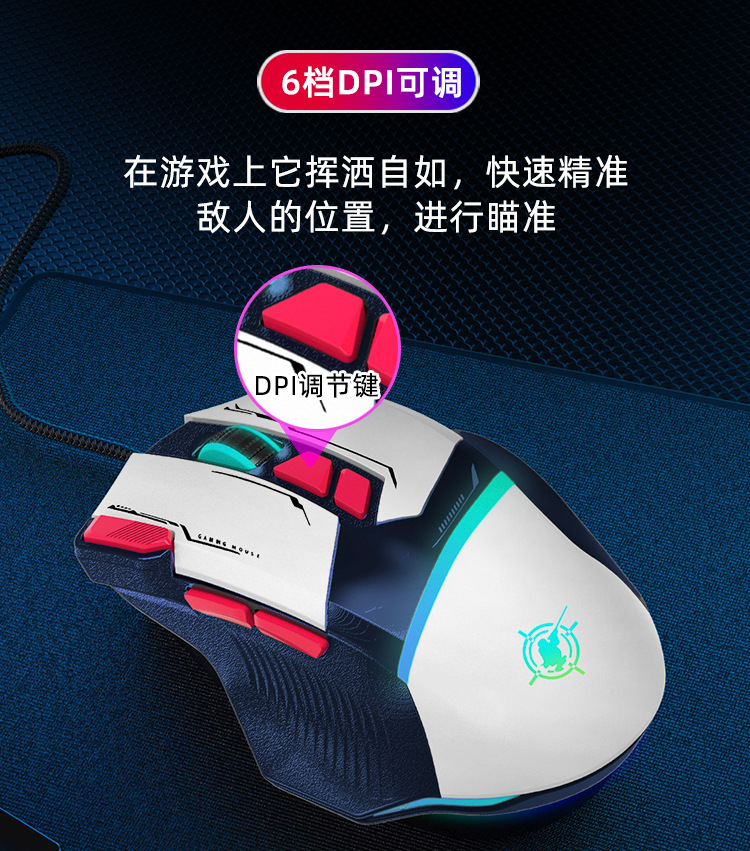 Pengbai GD02 매크로 프로그래밍 게임 메카 마우스 땋은 라인 RGB 발광 8 키 사용자 정의 포인트 연결 기계식 마우스스토어 가기