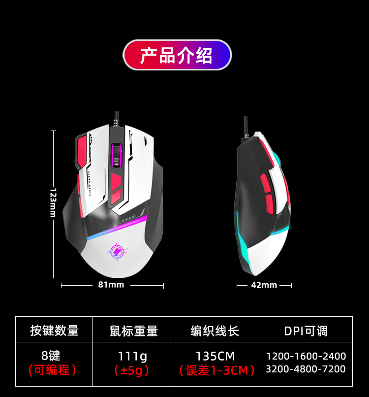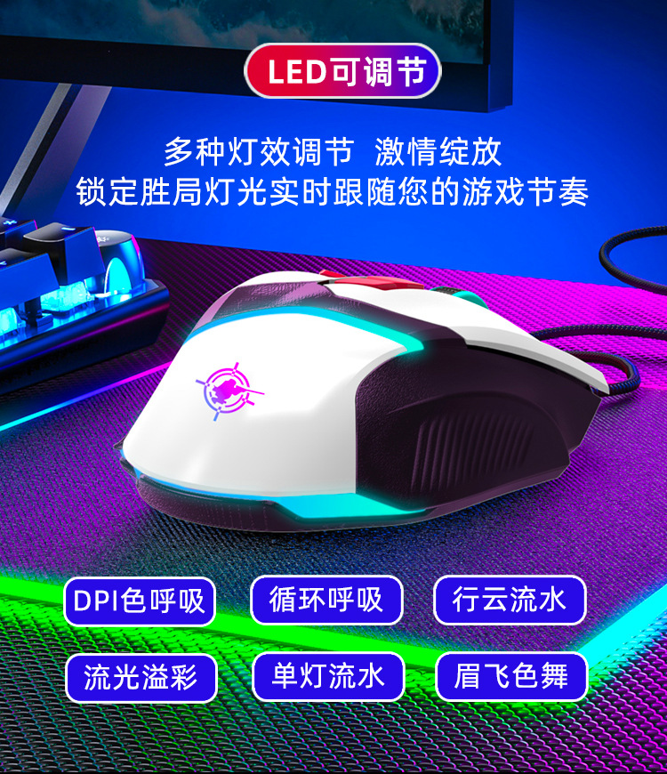 Pengbai GD02 매크로 프로그래밍 게임 메카 마우스 땋은 라인 RGB 발광 8 키 사용자 정의 포인트 연결 기계식 마우스