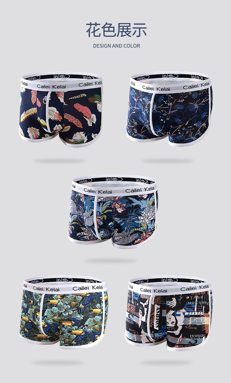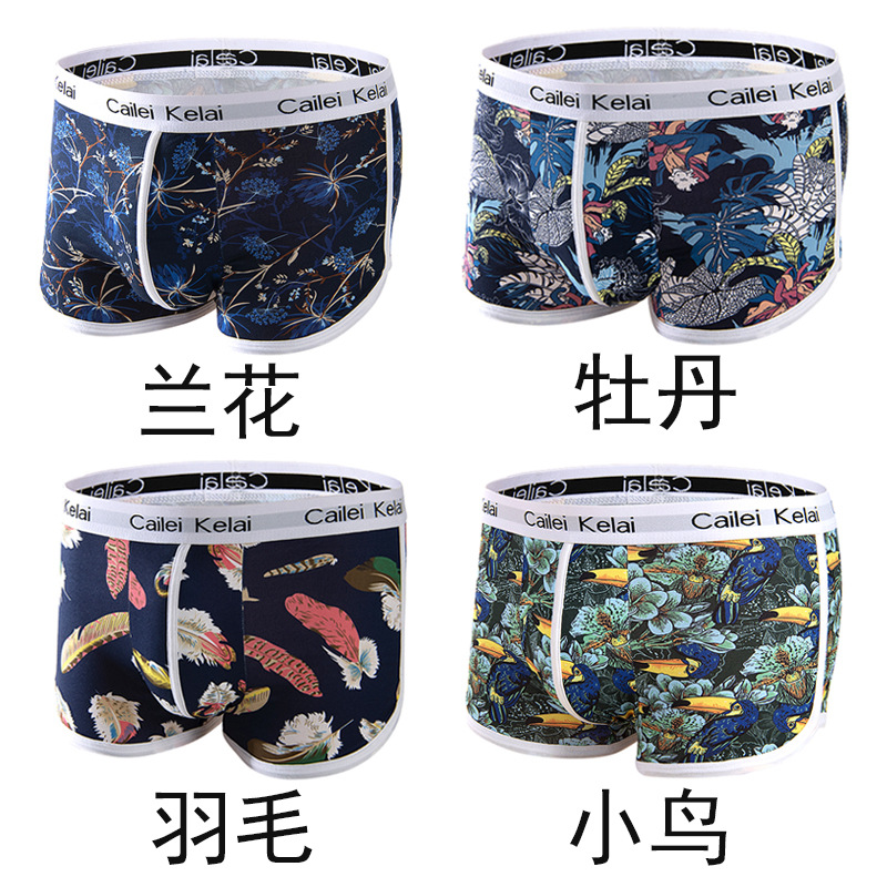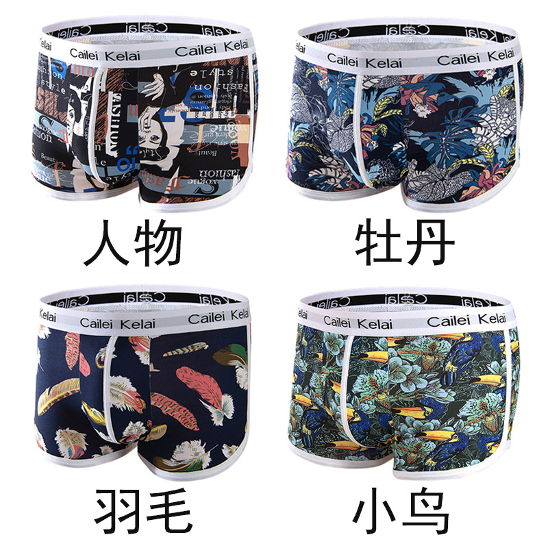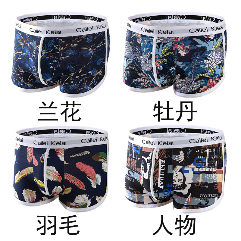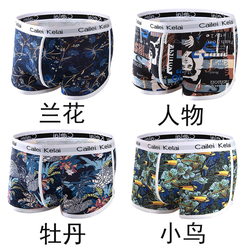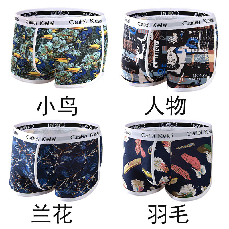 남성 속옷 통기성 독특한 중간 허리 스트레치 패션 인쇄 청소년 속옷 유행 바지 학생 반바지스토어 가기
