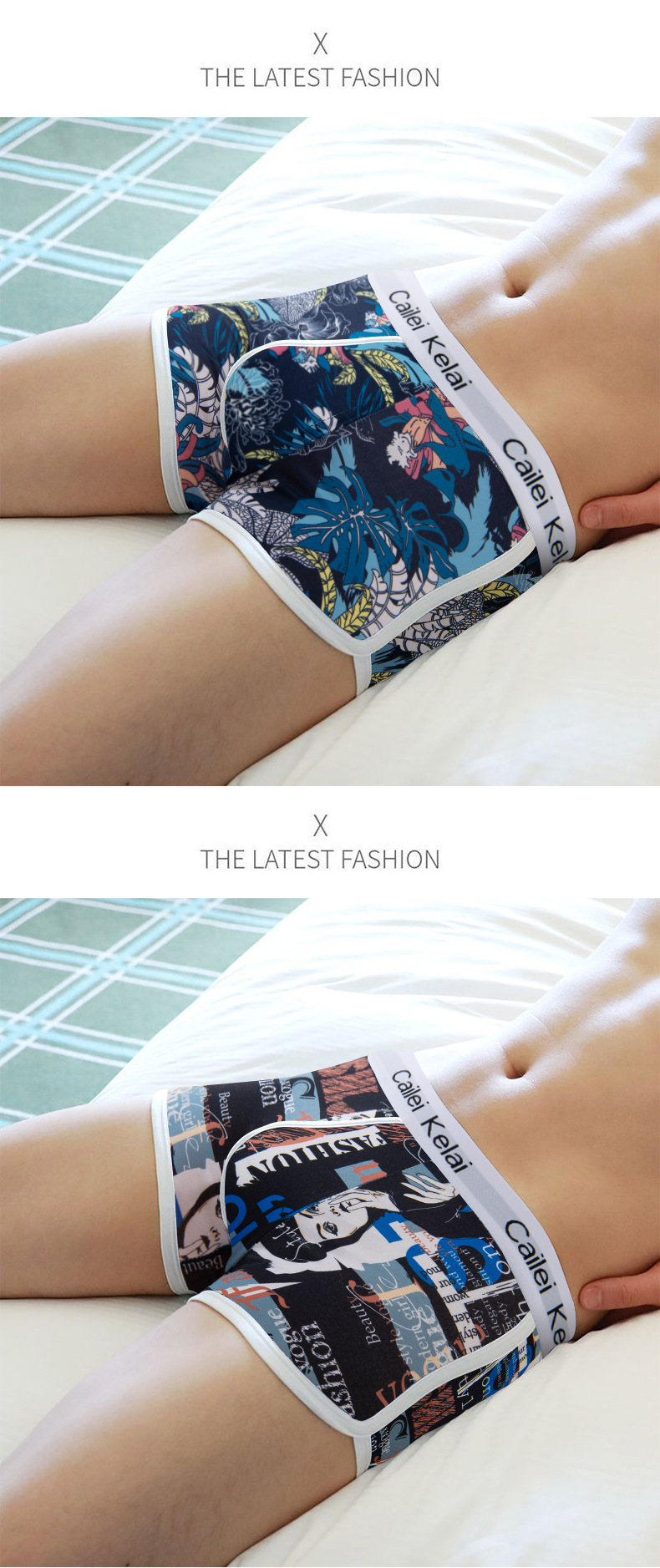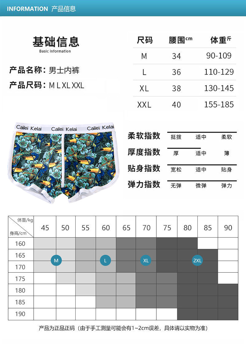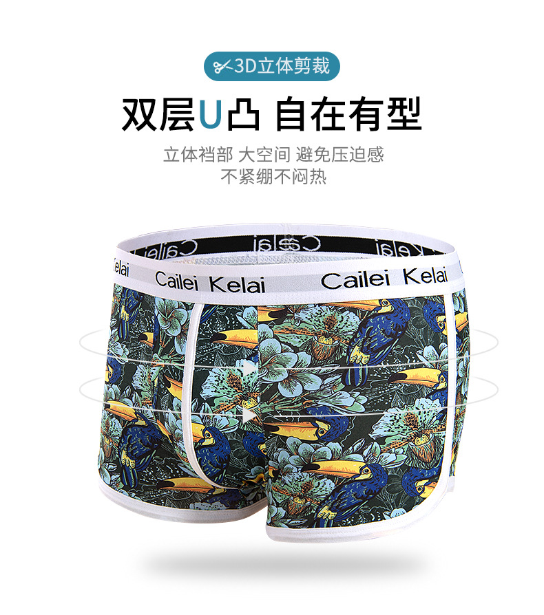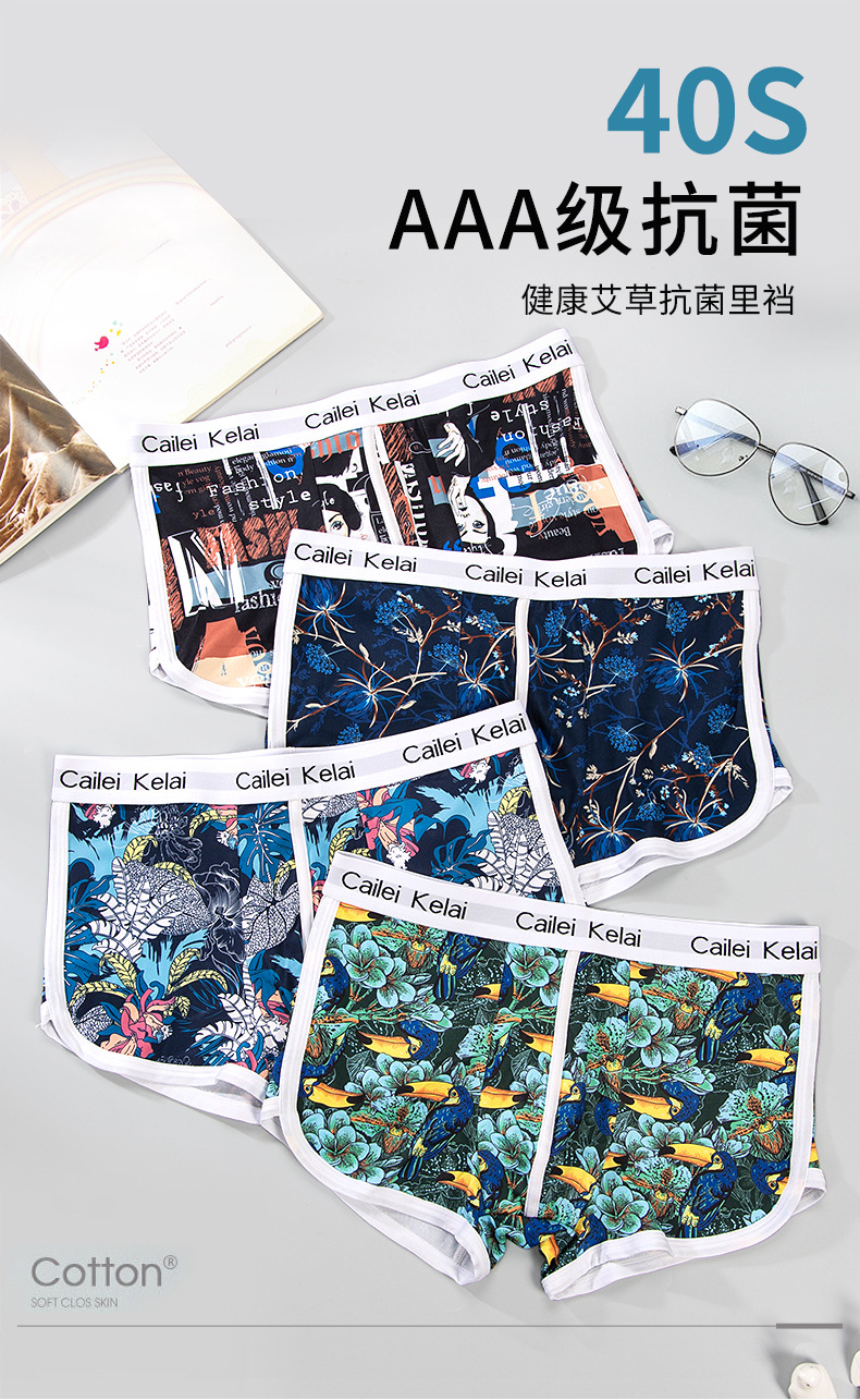 남성 속옷 통기성 독특한 중간 허리 스트레치 패션 인쇄 청소년 속옷 유행 바지 학생 반바지스토어 가기