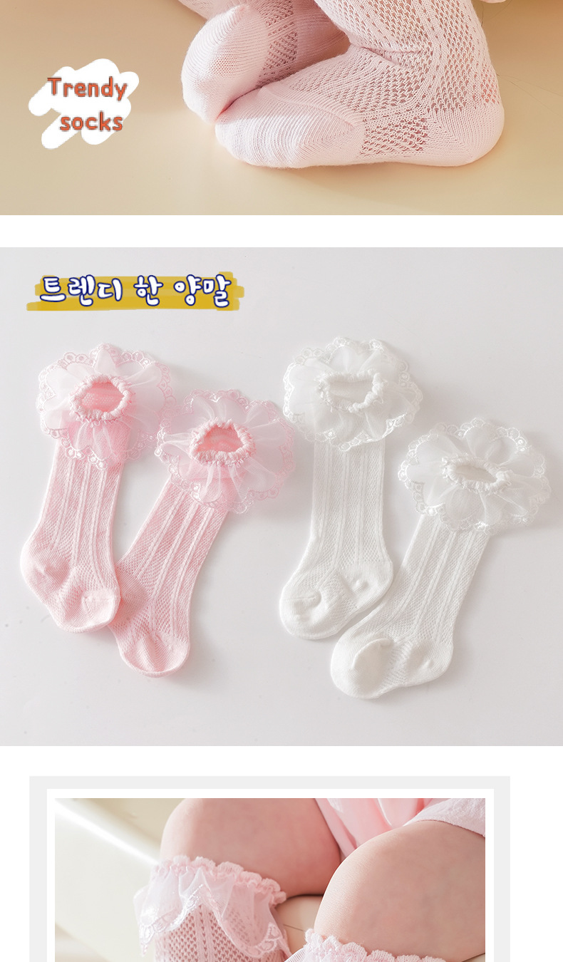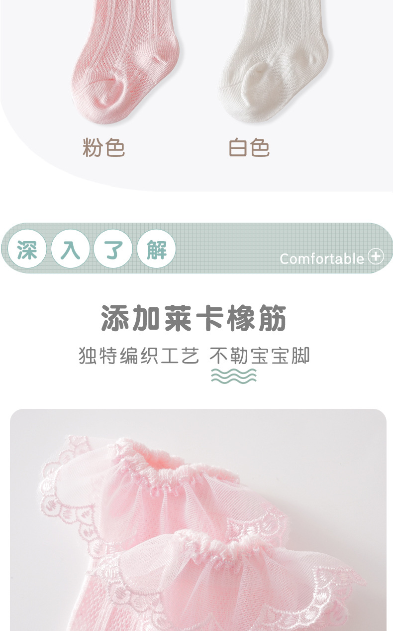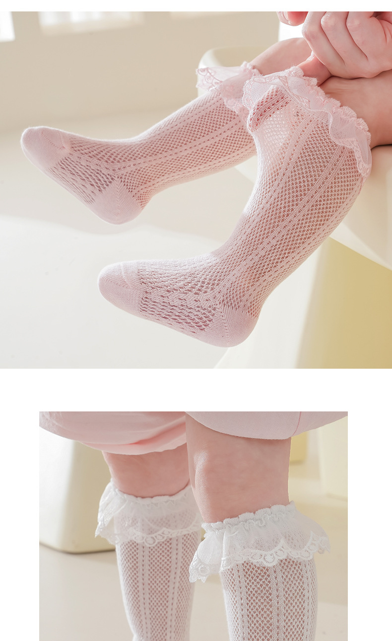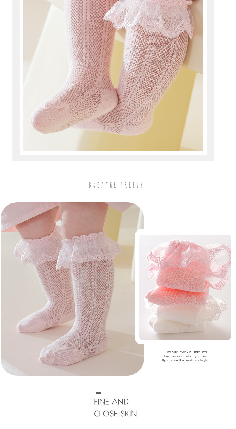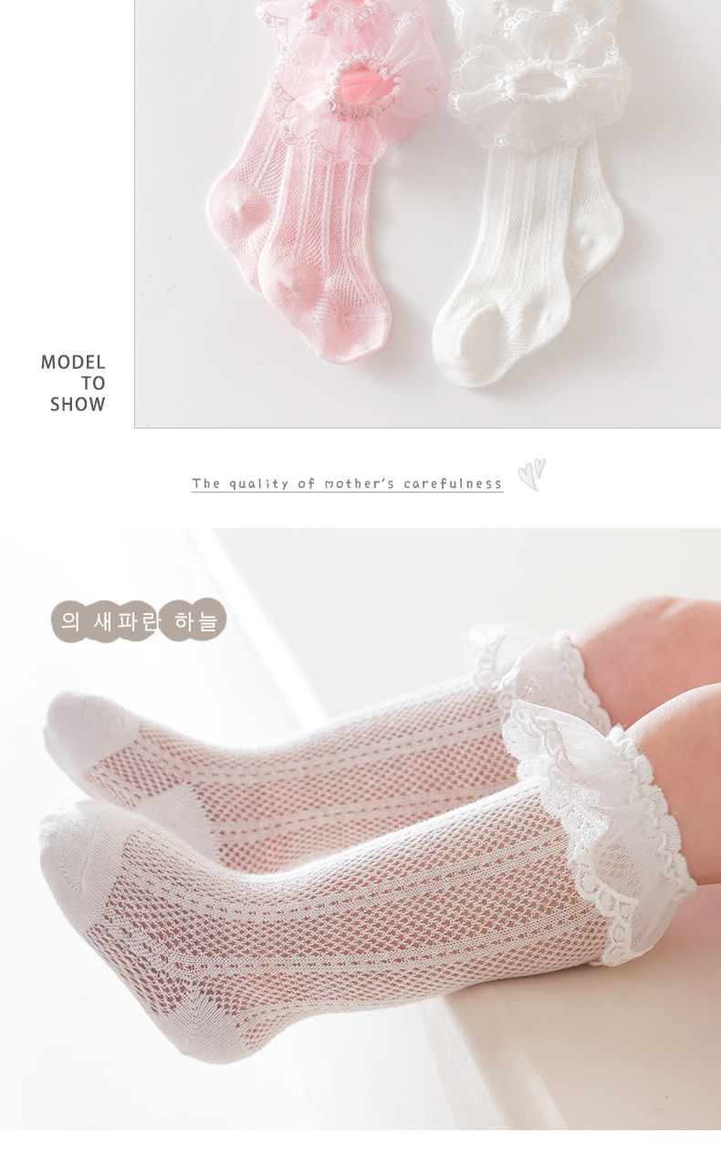 아기 소녀 여름 초박형 아기 레이스 양말 신생아 봄과 여름 면 메쉬 레이스 공주 양말