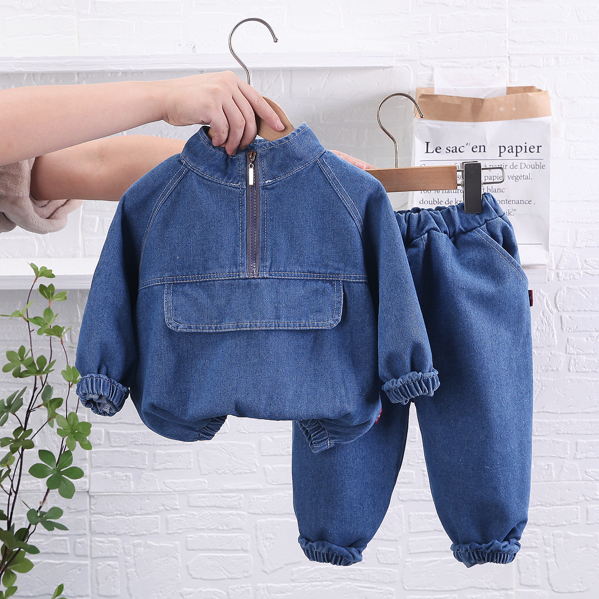 어린 소년의 외국 스타일 청바지 2 피스 도매 크로스 보더 어린이 긴팔 봄과 가을 옷 세트 아기 한국 옷