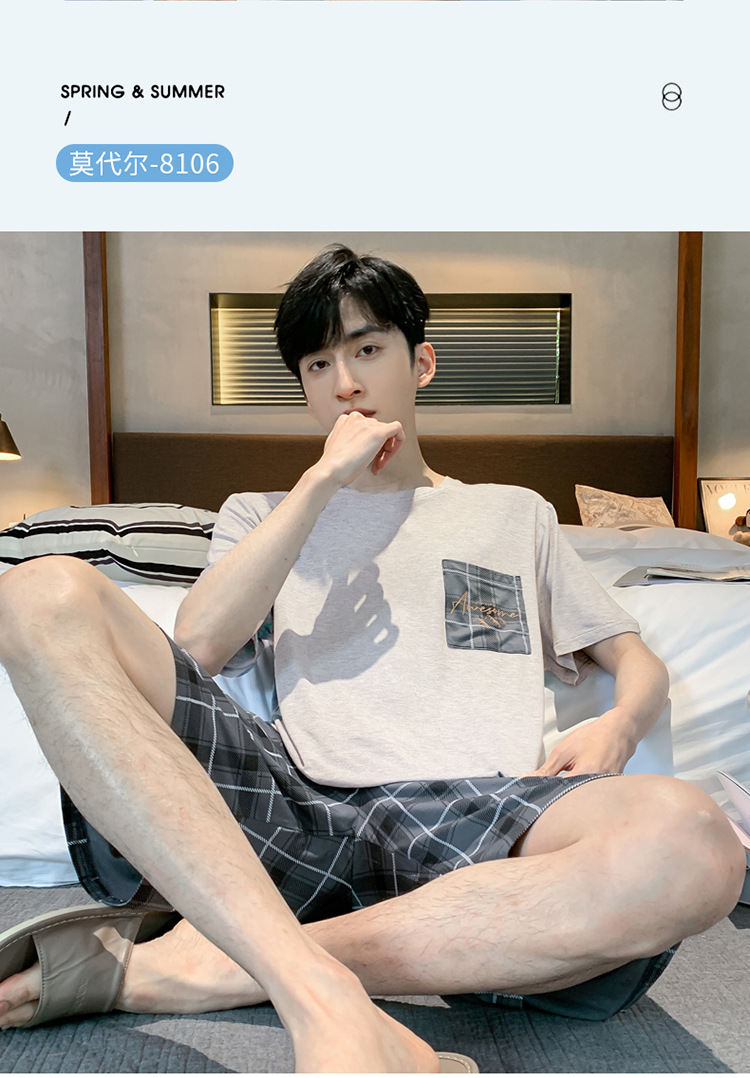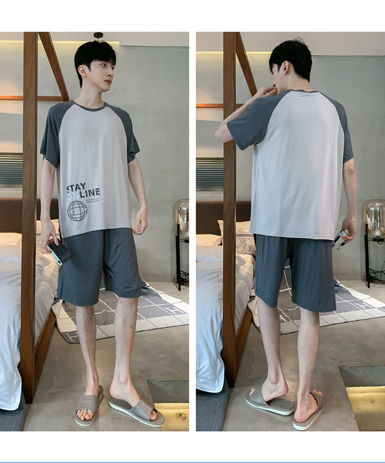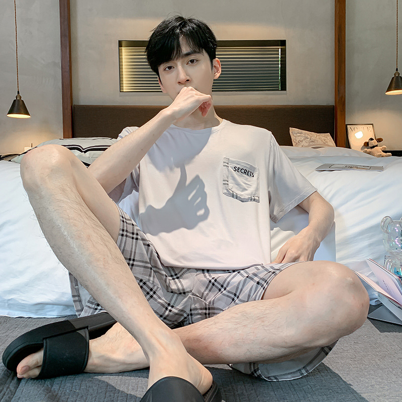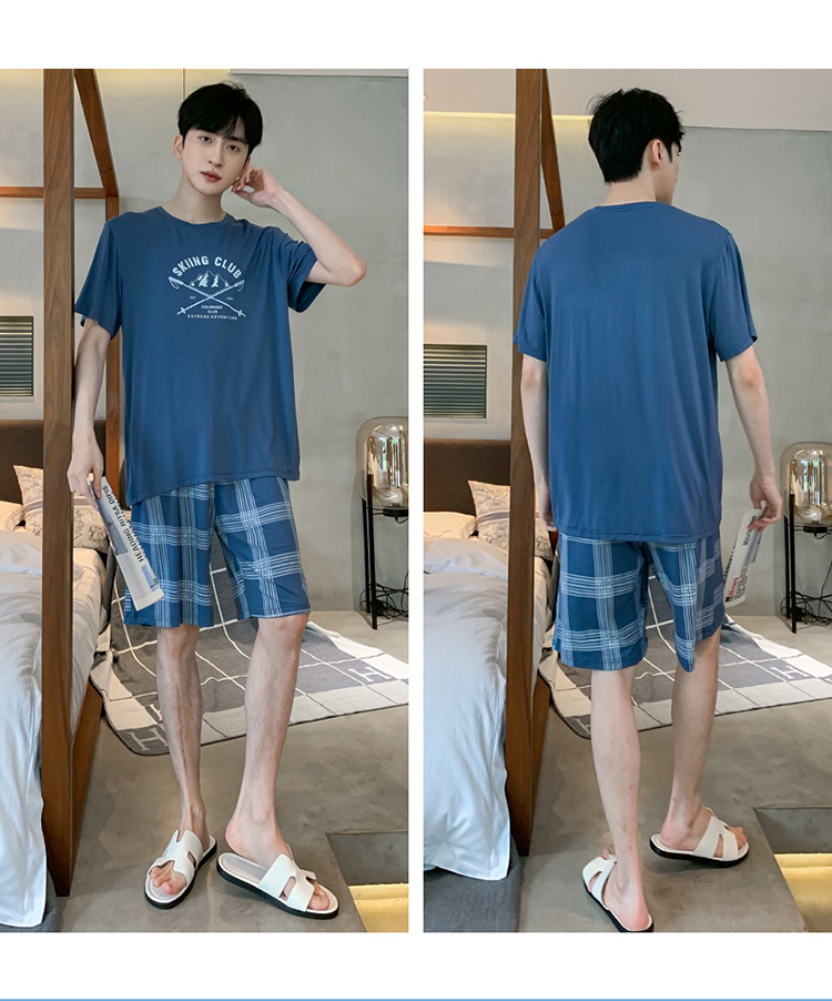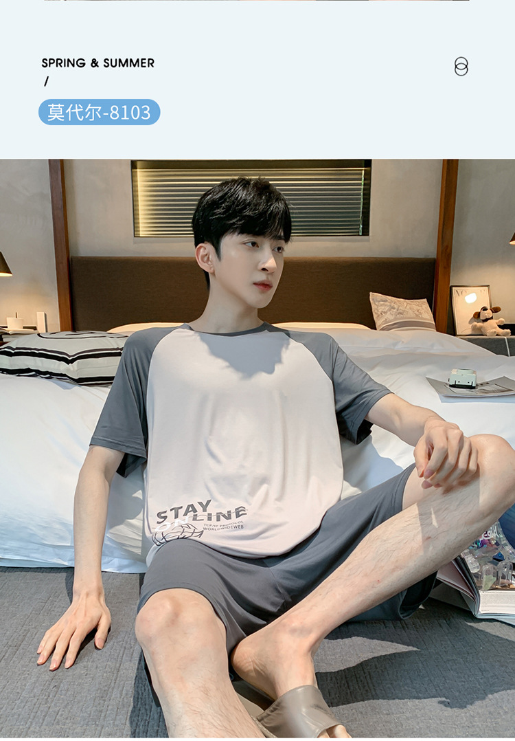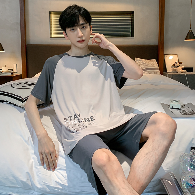 남자 잠옷 여름 모달 반팔 반바지 대학생을위한 십대 한국식 간단한 얇은 가정복 세트
