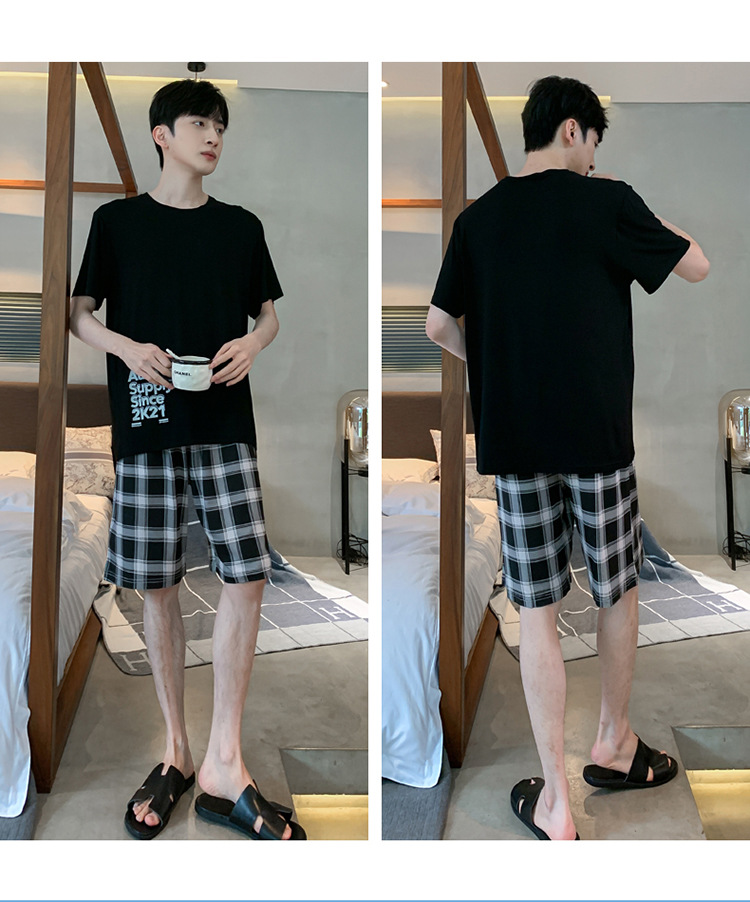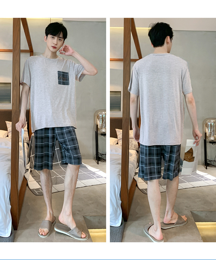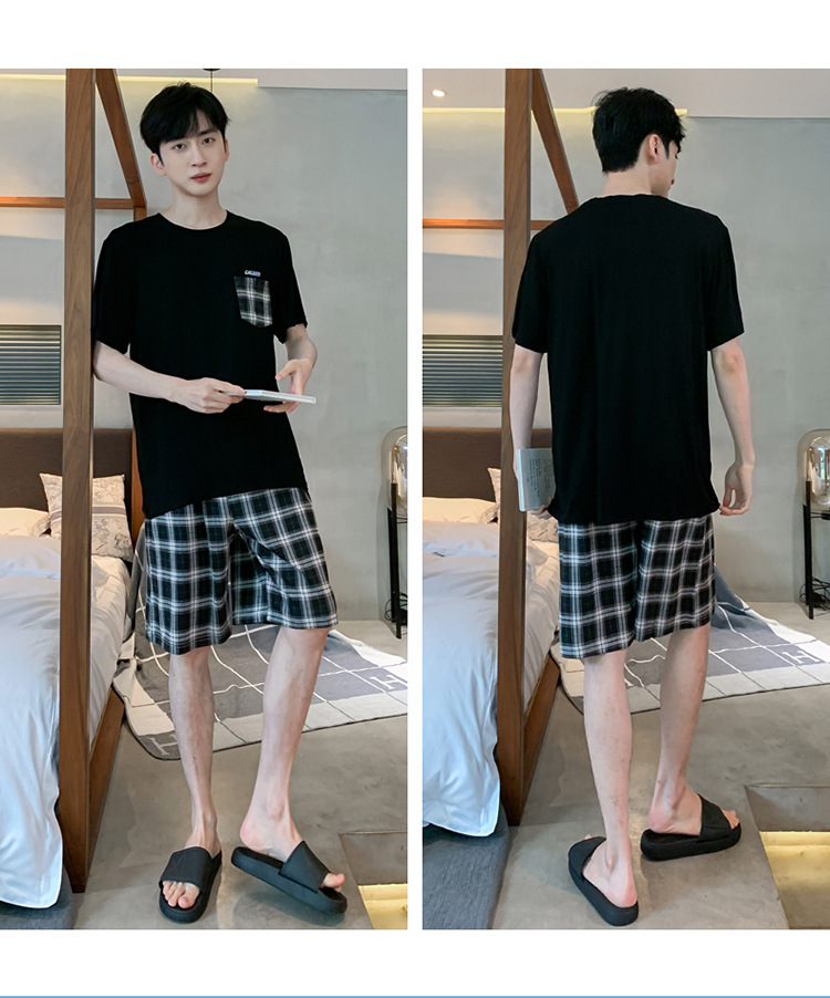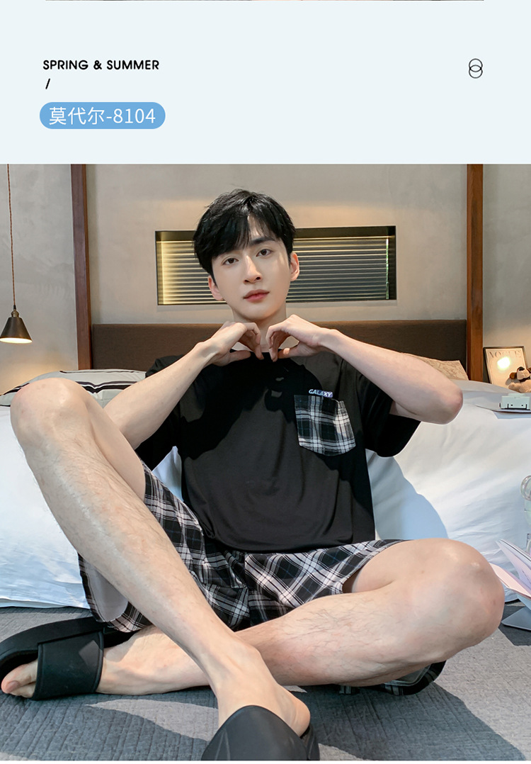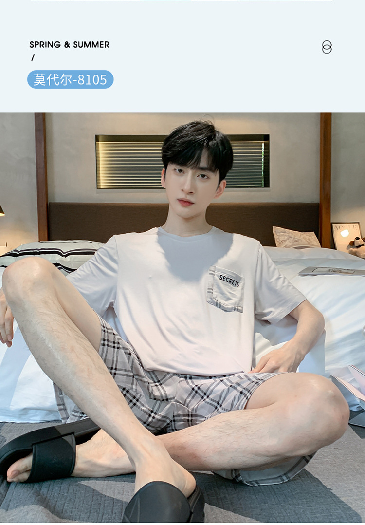 남자 잠옷 여름 모달 반팔 반바지 대학생을위한 십대 한국식 간단한 얇은 가정복 세트