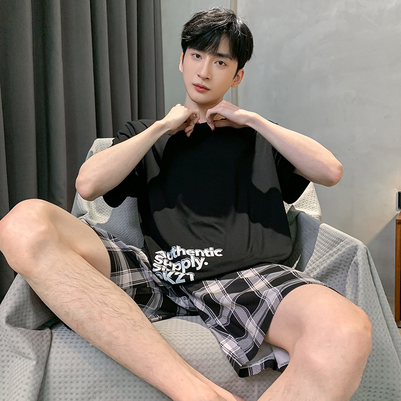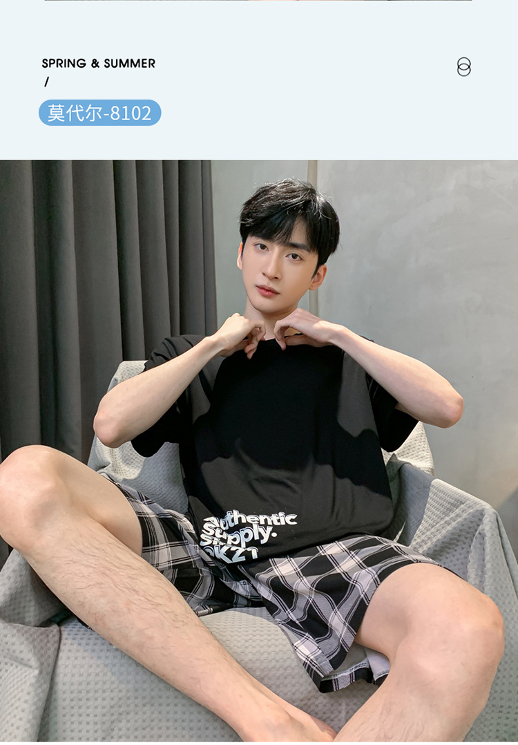 남자 잠옷 여름 모달 반팔 반바지 대학생을위한 십대 한국식 간단한 얇은 가정복 세트스토어 가기