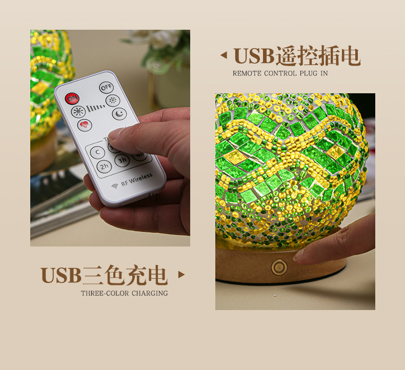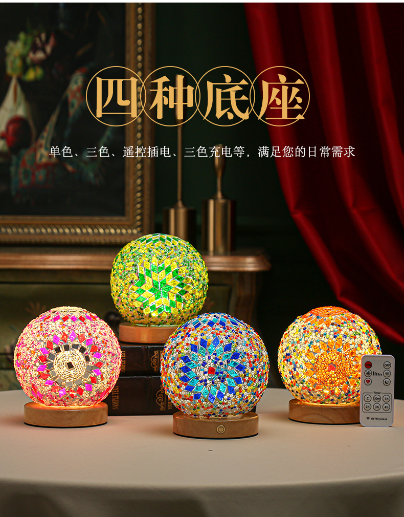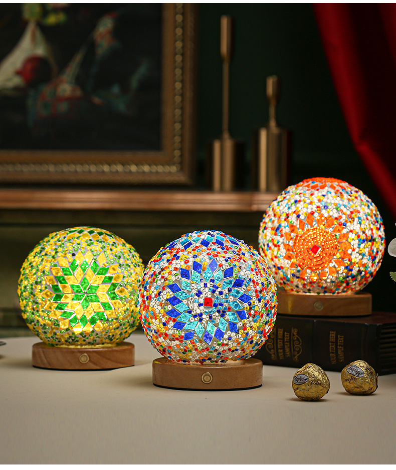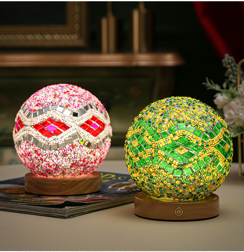 크로스보더 모자이크 야간 조명 바로크 로맨틱과 자유로운 보헤미안 크리에이티브 야간 조명 유리 장식 테이블 램프