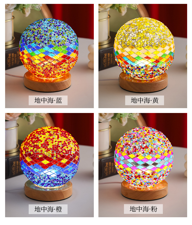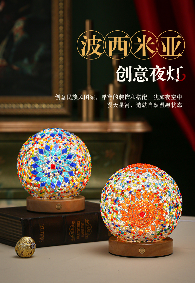 크로스보더 모자이크 야간 조명 바로크 로맨틱과 자유로운 보헤미안 크리에이티브 야간 조명 유리 장식 테이블 램프스토어 가기