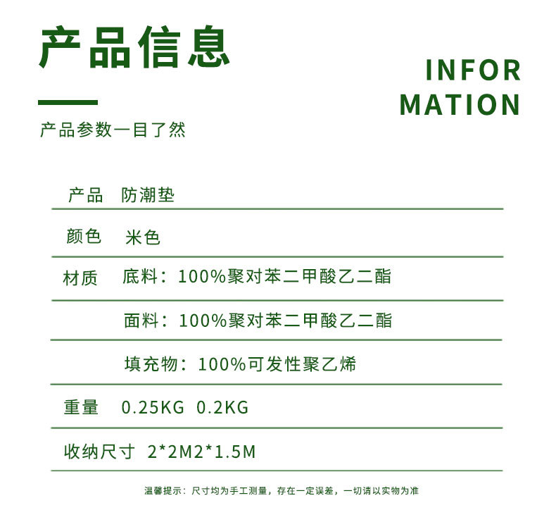 • 2mm 두께의 방습 패드 (보관 봉투 없음)