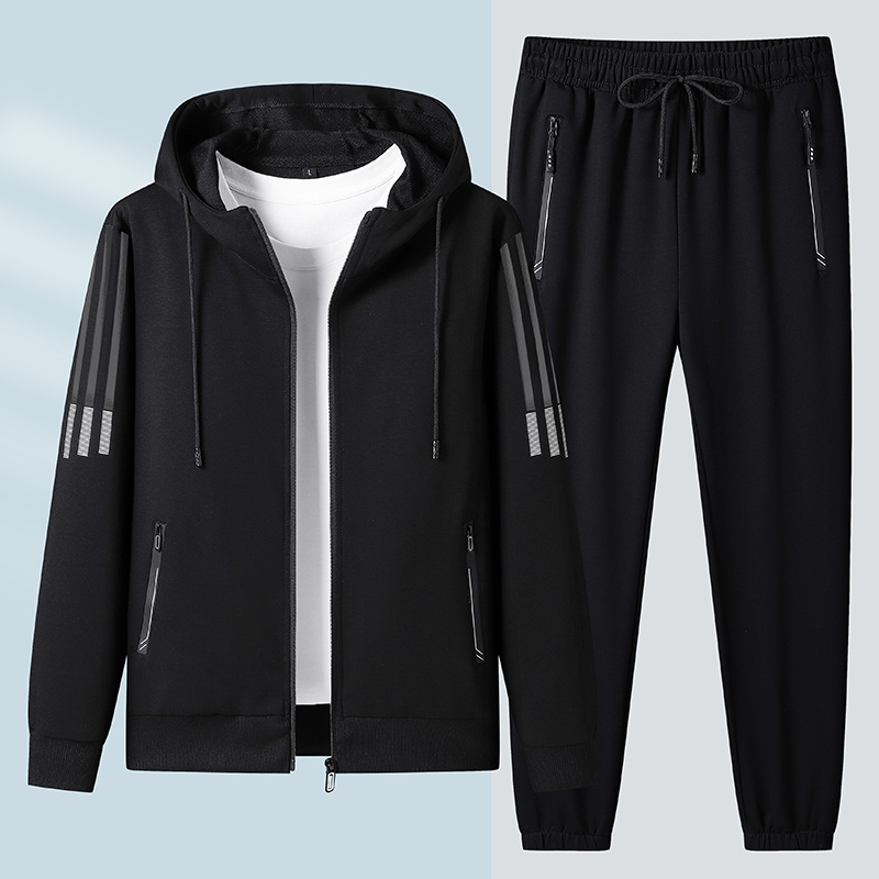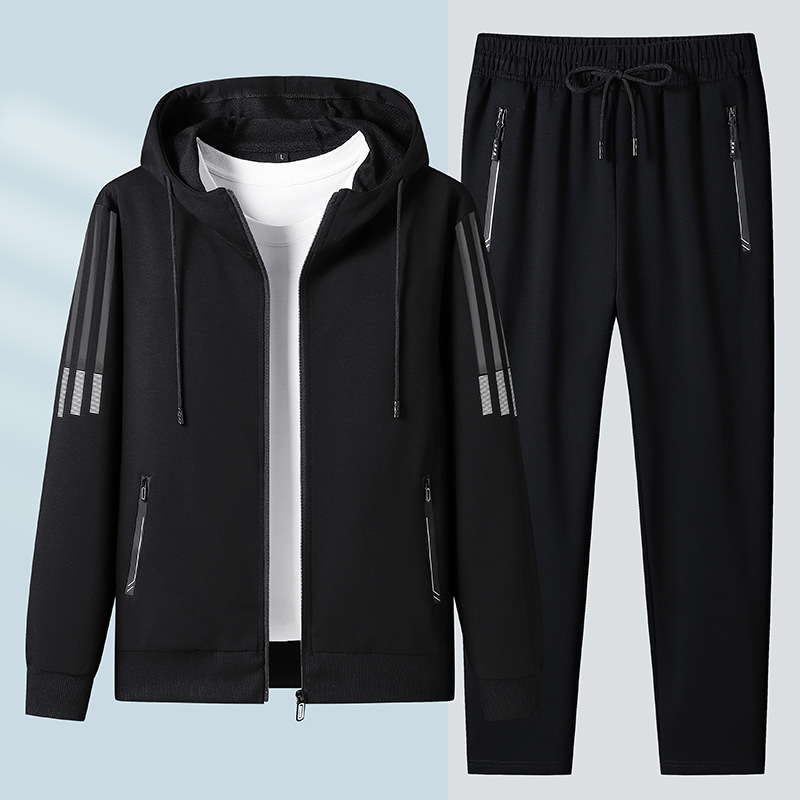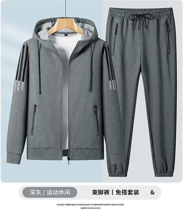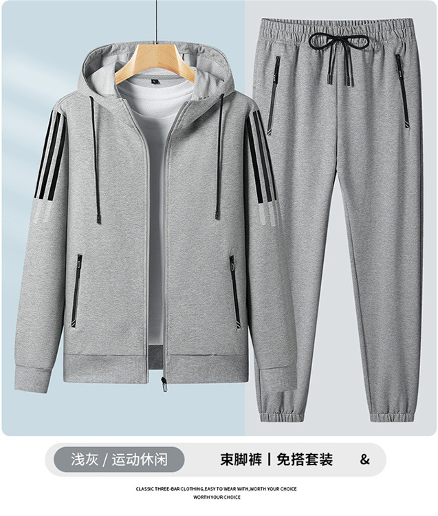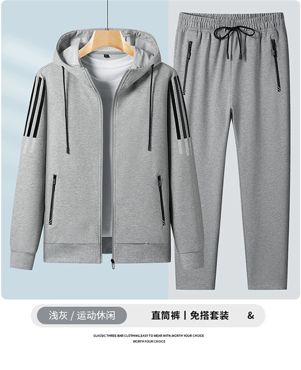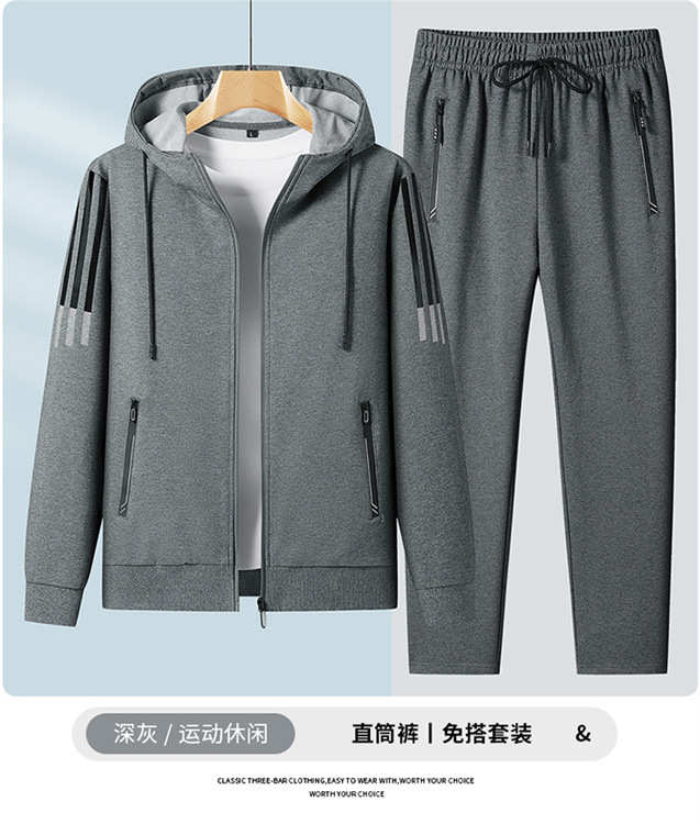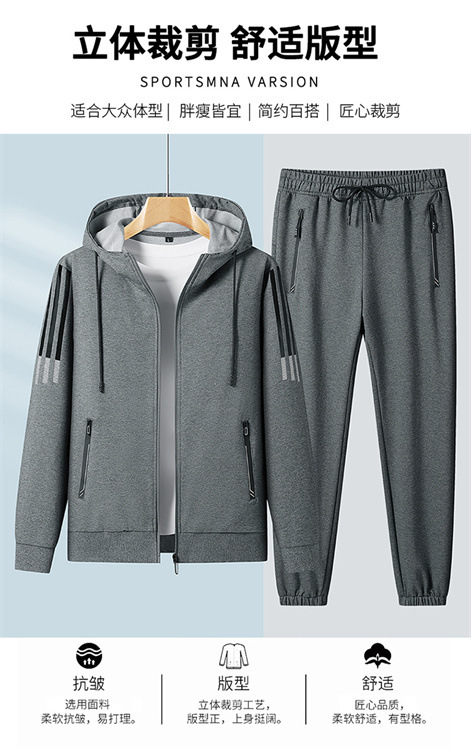 2023 새로운 플러스 사이즈 스포츠 세트 남성 봄과 가을 캐주얼 후드 카디건 스웨터 코트 투피스 코튼 스포츠스토어 가기