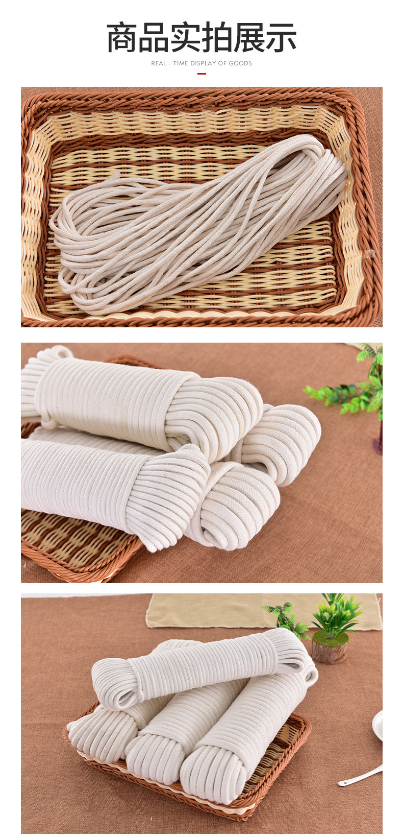 고부가가치 심 포장 면로프 빨랫줄 건조 로프 커튼 로프 바인딩 로프 두꺼운 깃대 얇은 꼰 로프스토어 가기