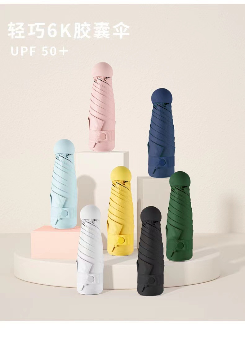 5 배 우산 맑고 비가 오는 이중 사용 초경량 미니 포켓 캡슐 우산 태양 커버 블랙 접착제 태양 보호 광고 선물 맞춤형 인쇄스토어 가기