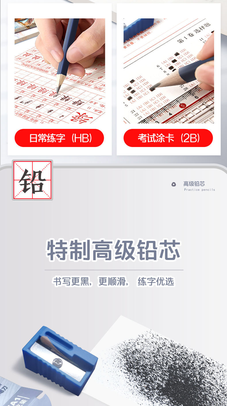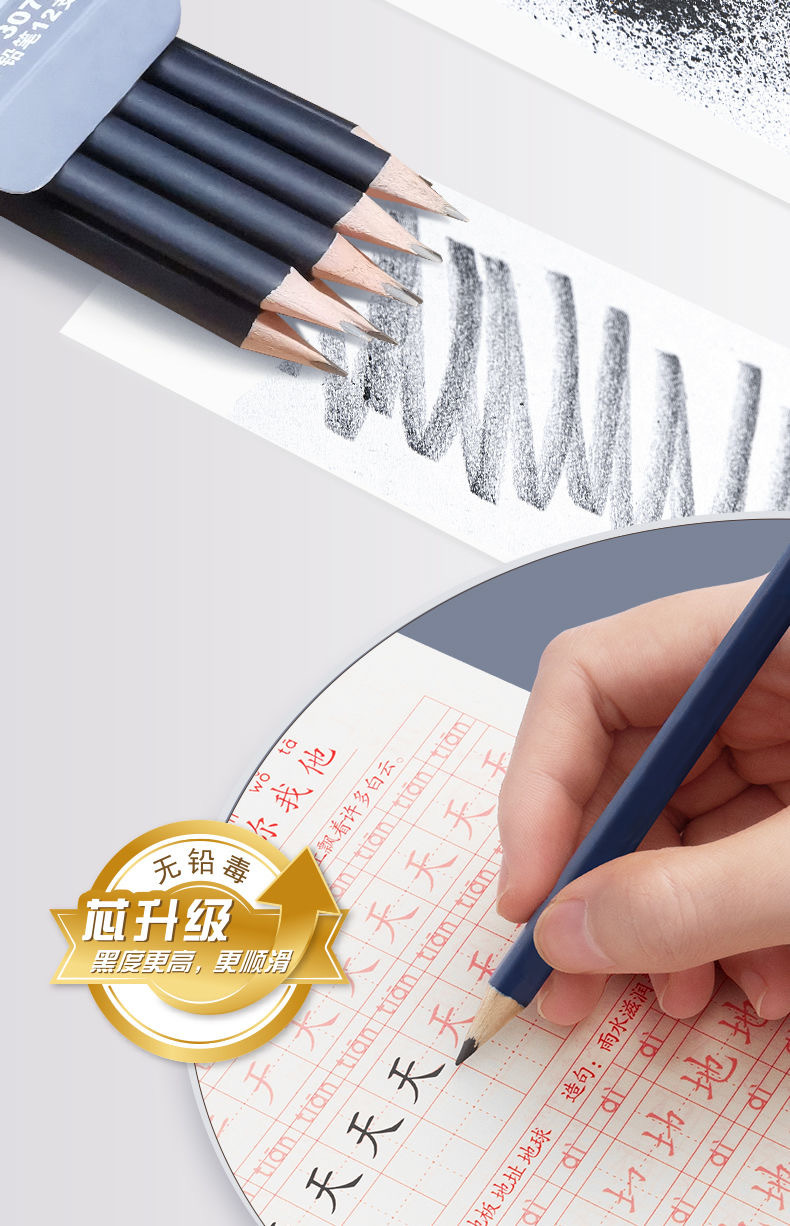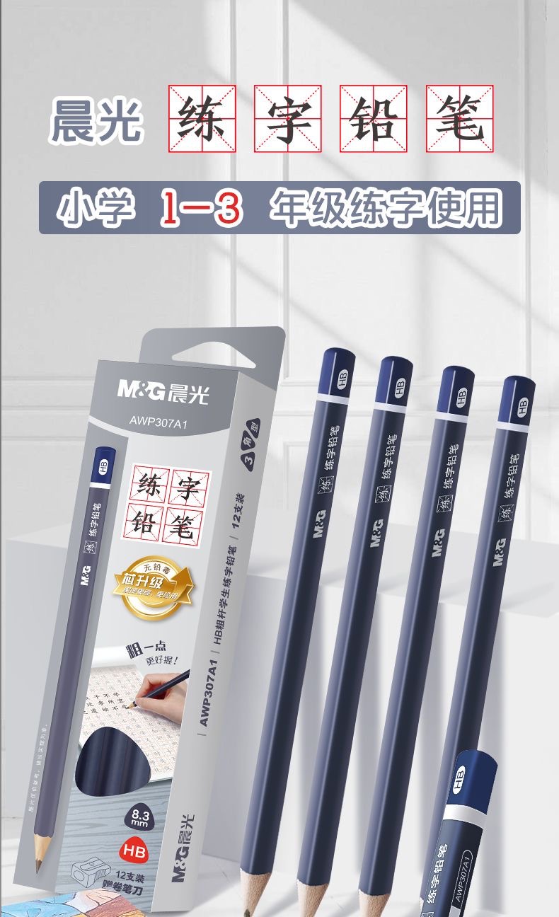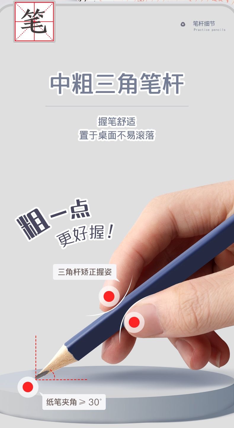 초등학생을 위한 아침빛 캘리그라피 연습연필, 두꺼운 나무연필 HB2B 1학년 초보자를 위한 깨짐 방지 코어 시험