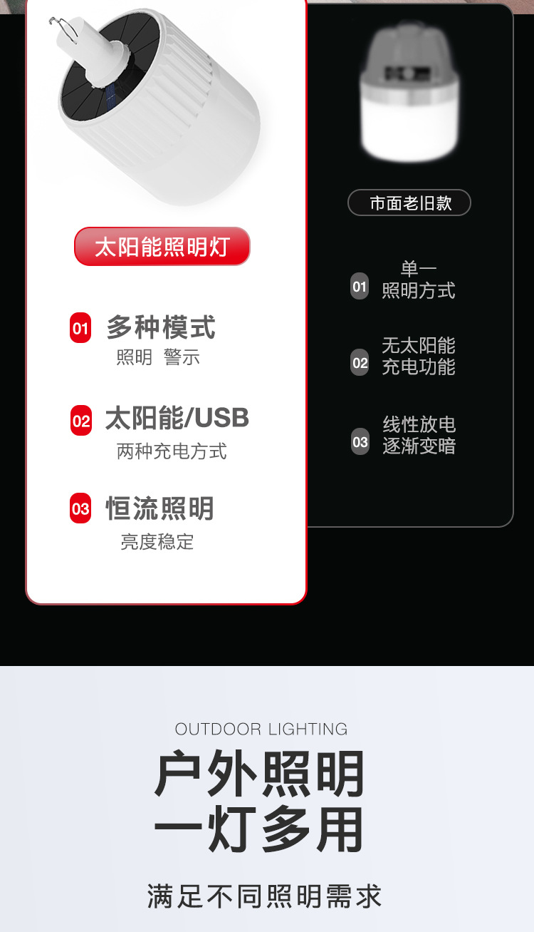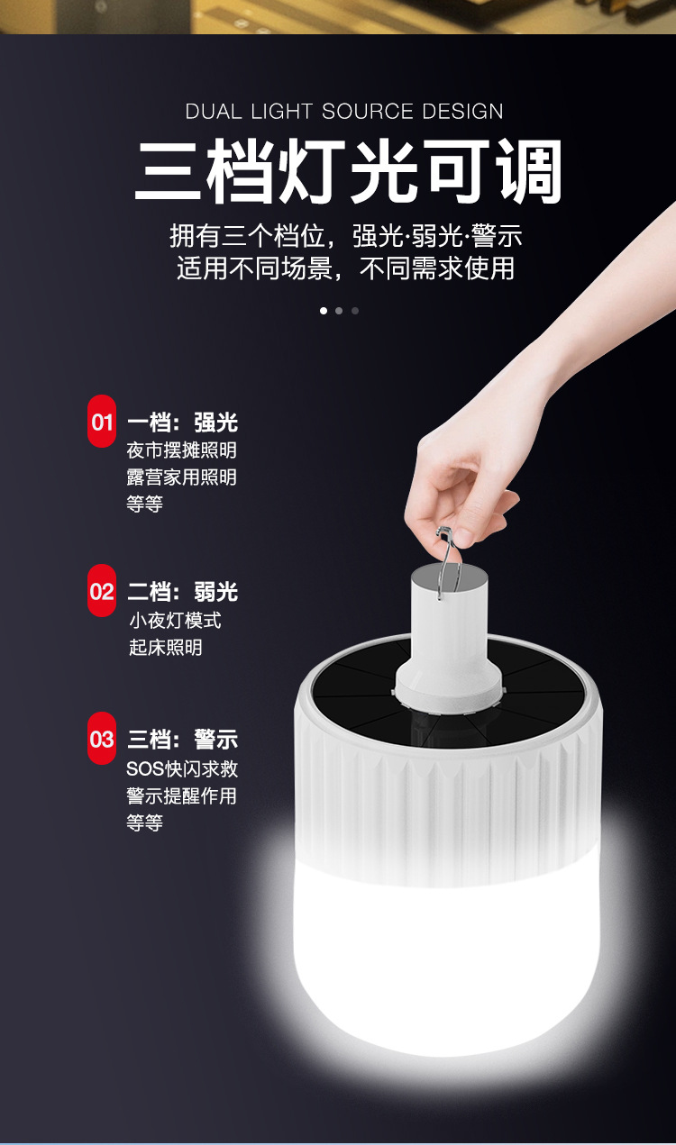 태양 충전식 전구 램프 실속 야시장 조명 정전 비상 야외 캠핑 텐트 led 전구