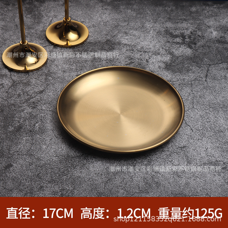 한국식 304 스테인레스 스틸 플레이트 황금 공예 트레이 서양 음식 바베큐 케이크 접시 과일 디스크 뷔페 접시스토어 가기