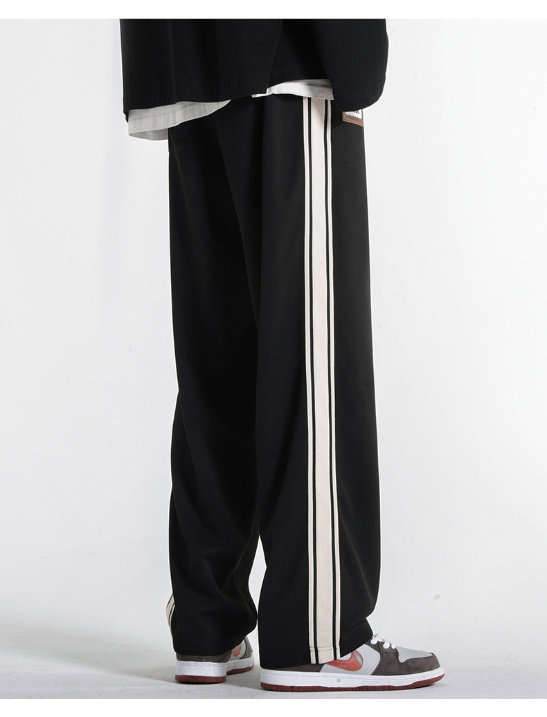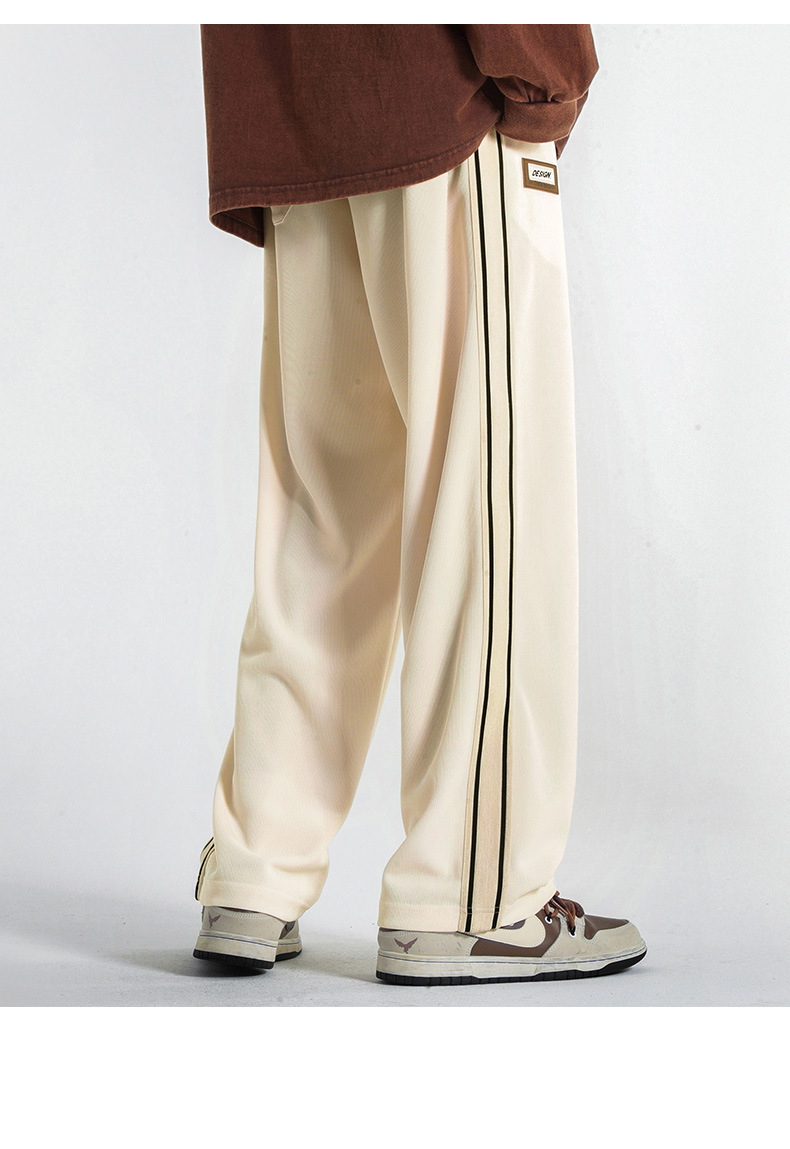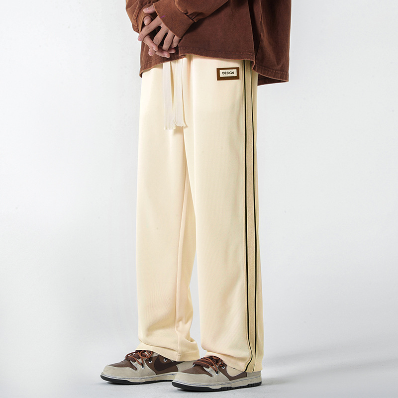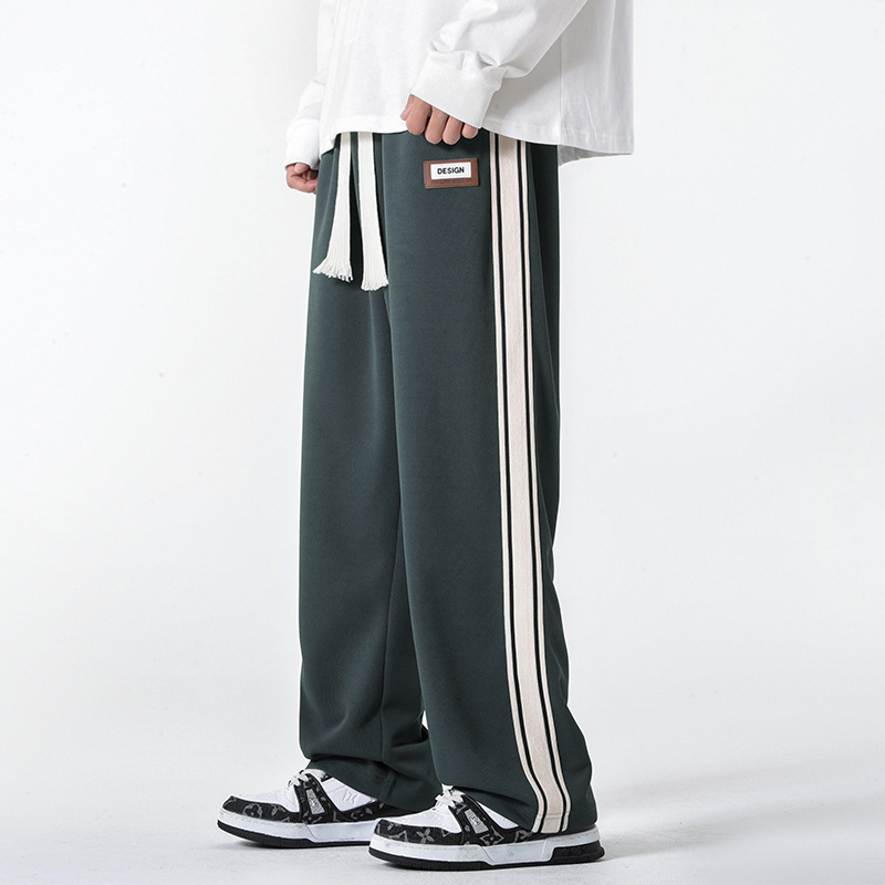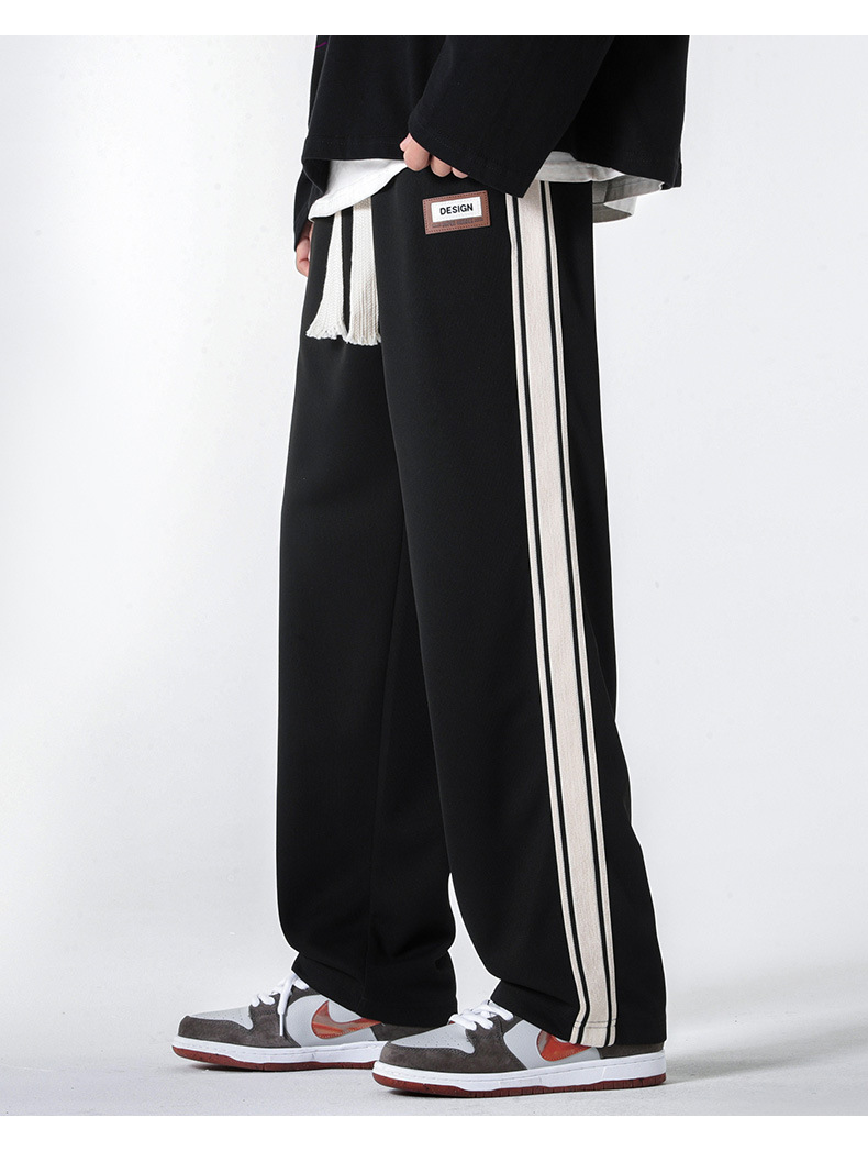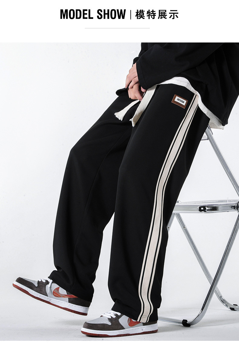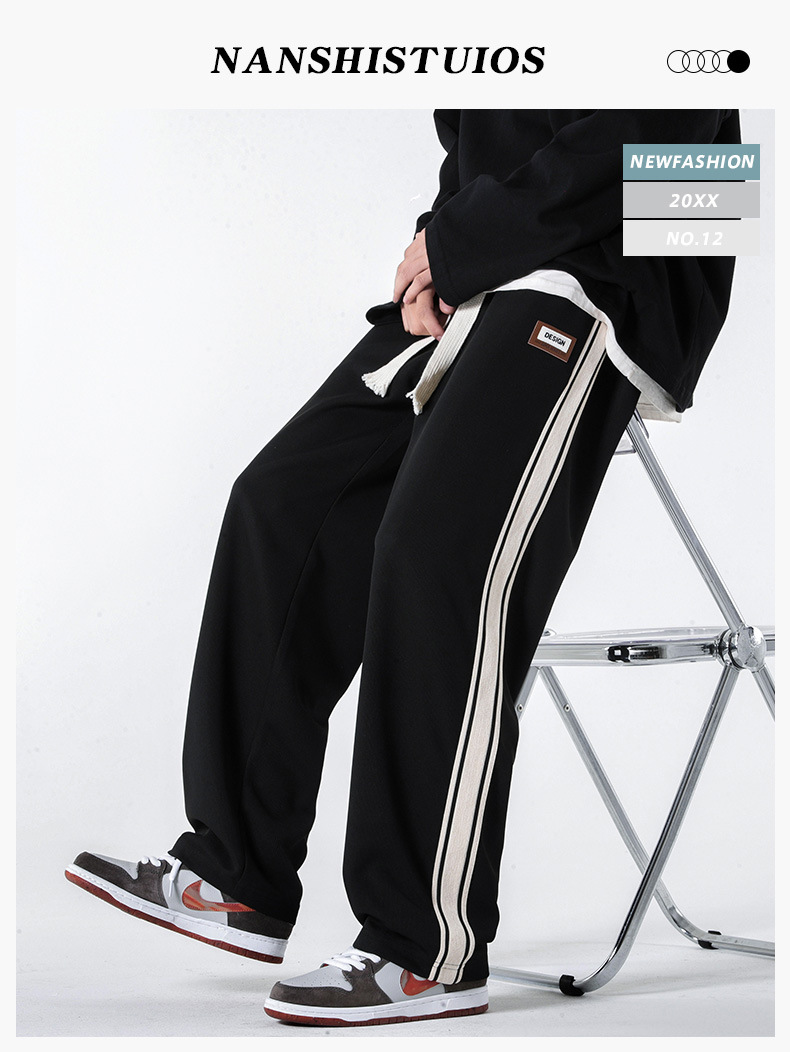 캐주얼 바지 남자의 봄 새로운 빈티지 드레이프 사이드 스트립 스티칭 느슨한 스트레이트 바지 유행 스포츠 바지 남자스토어 가기