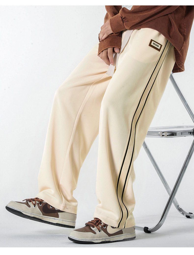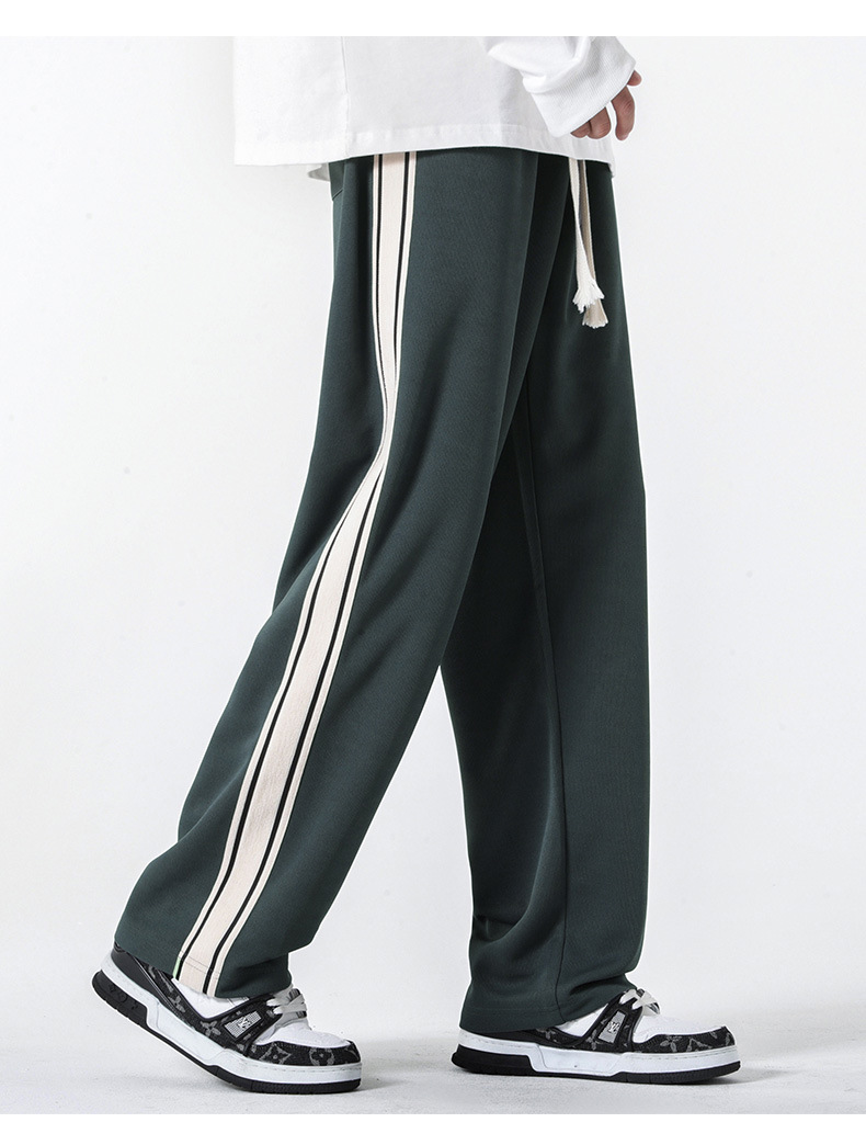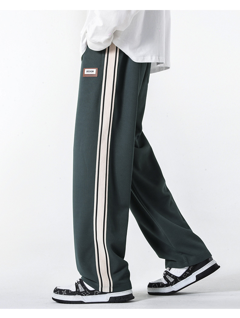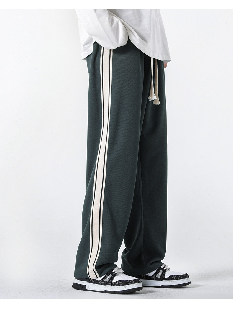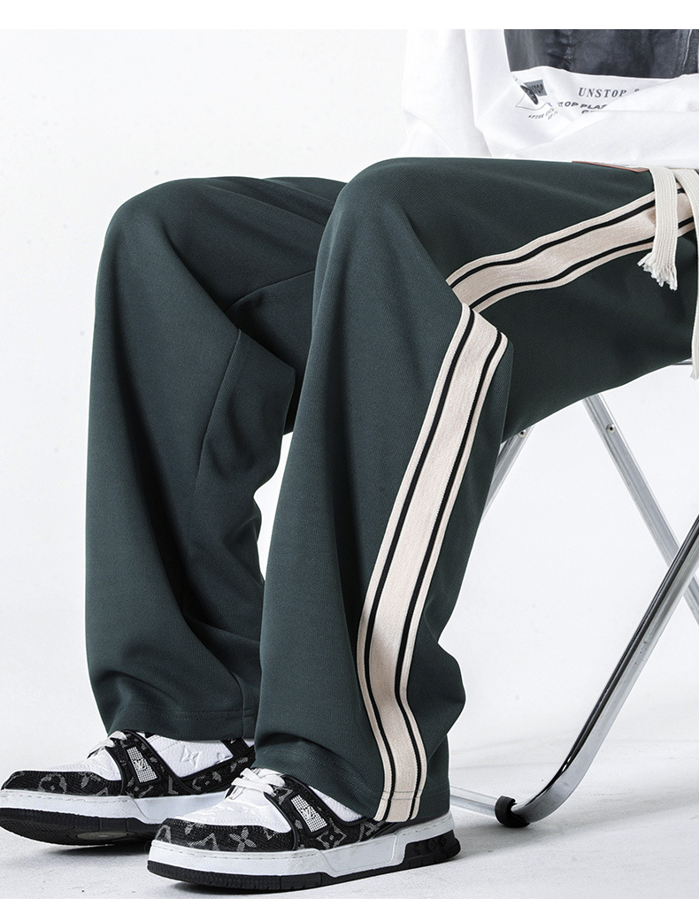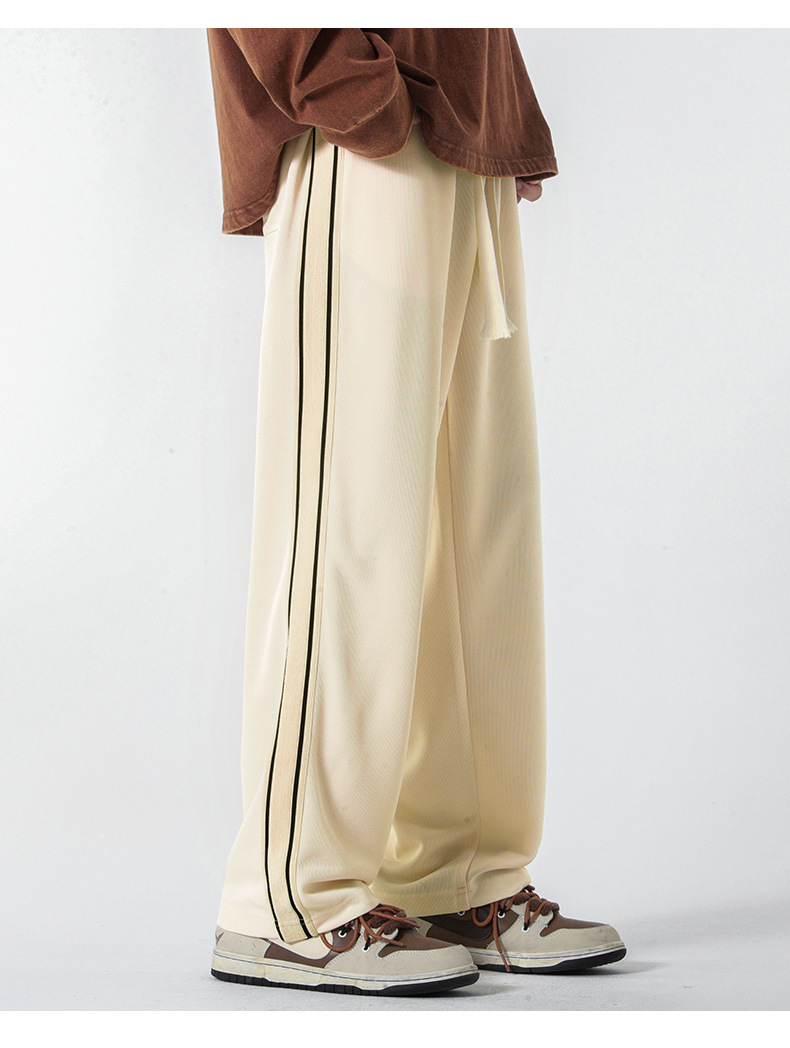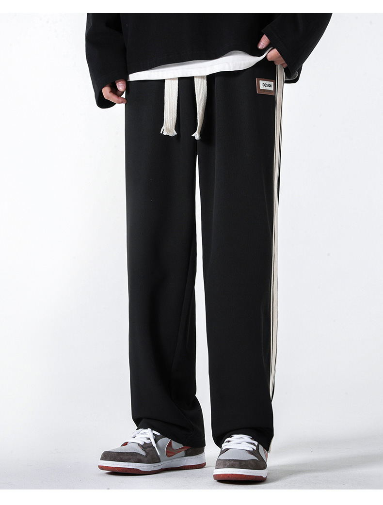 캐주얼 바지 남자의 봄 새로운 빈티지 드레이프 사이드 스트립 스티칭 느슨한 스트레이트 바지 유행 스포츠 바지 남자스토어 가기