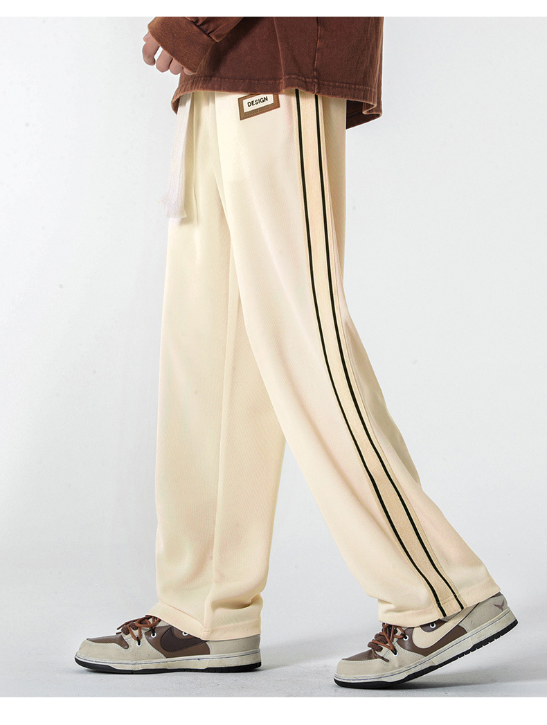 캐주얼 바지 남자의 봄 새로운 빈티지 드레이프 사이드 스트립 스티칭 느슨한 스트레이트 바지 유행 스포츠 바지 남자