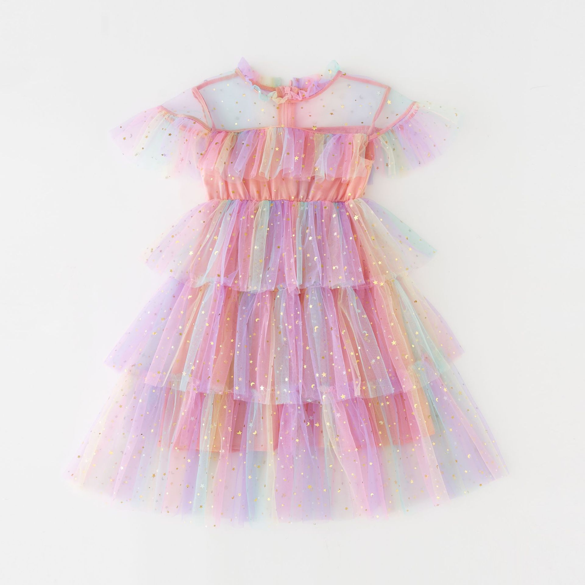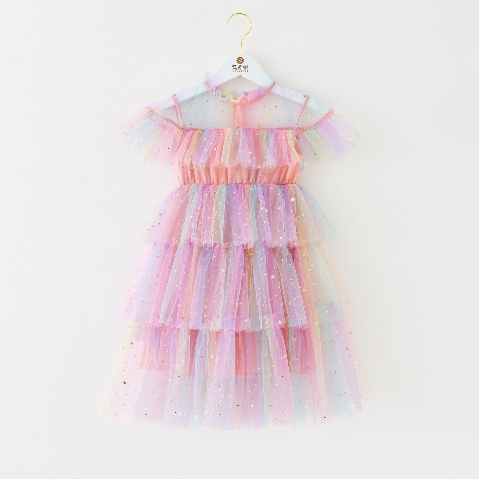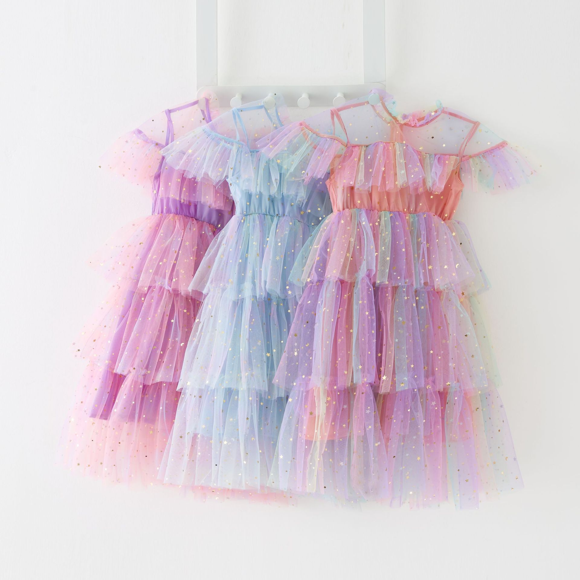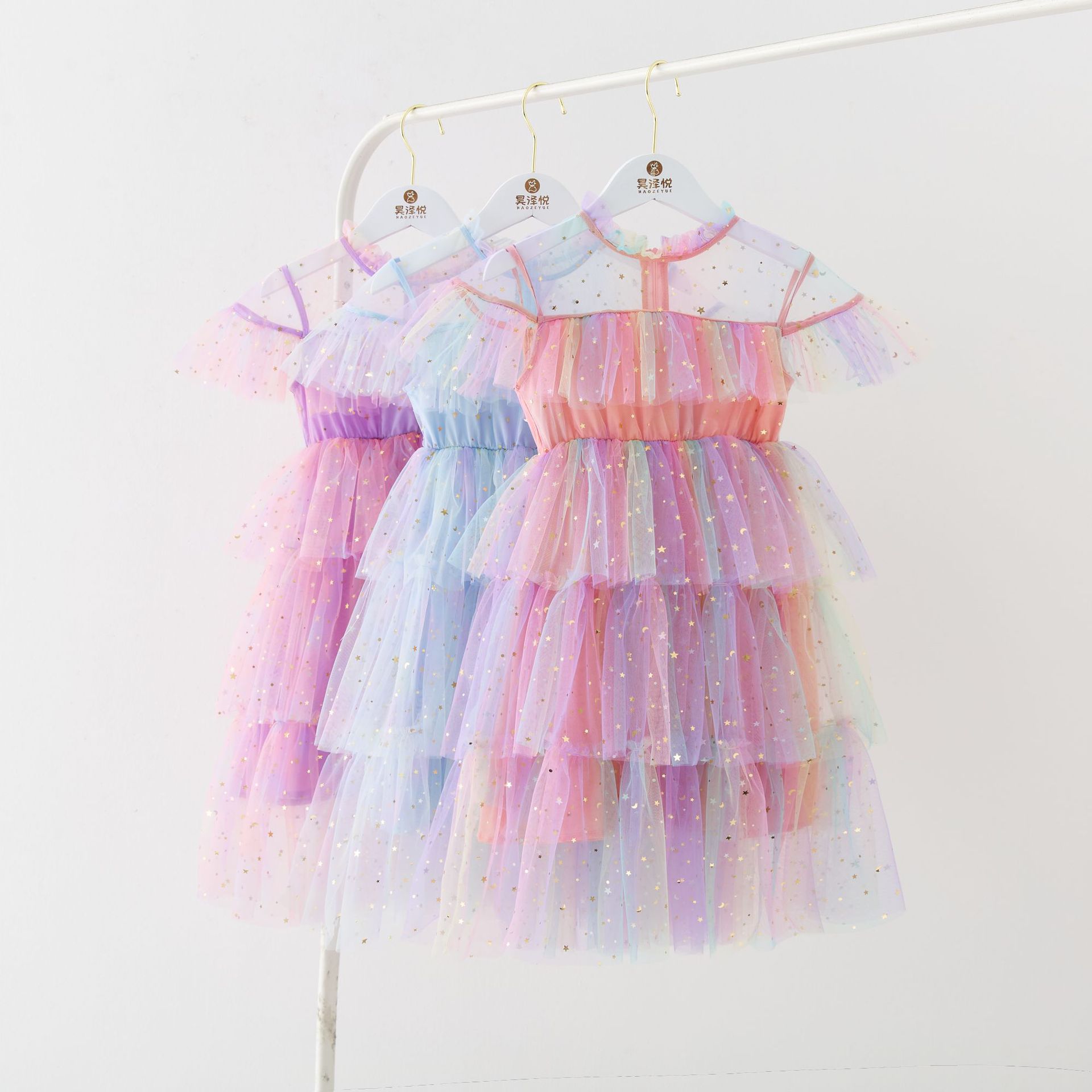 슈퍼 페어리 스타 문 레인보우 메쉬 소녀의 원피스 어린이 공주 원피스 스타일리스트 원피스 한국 판초 원피스스토어 가기