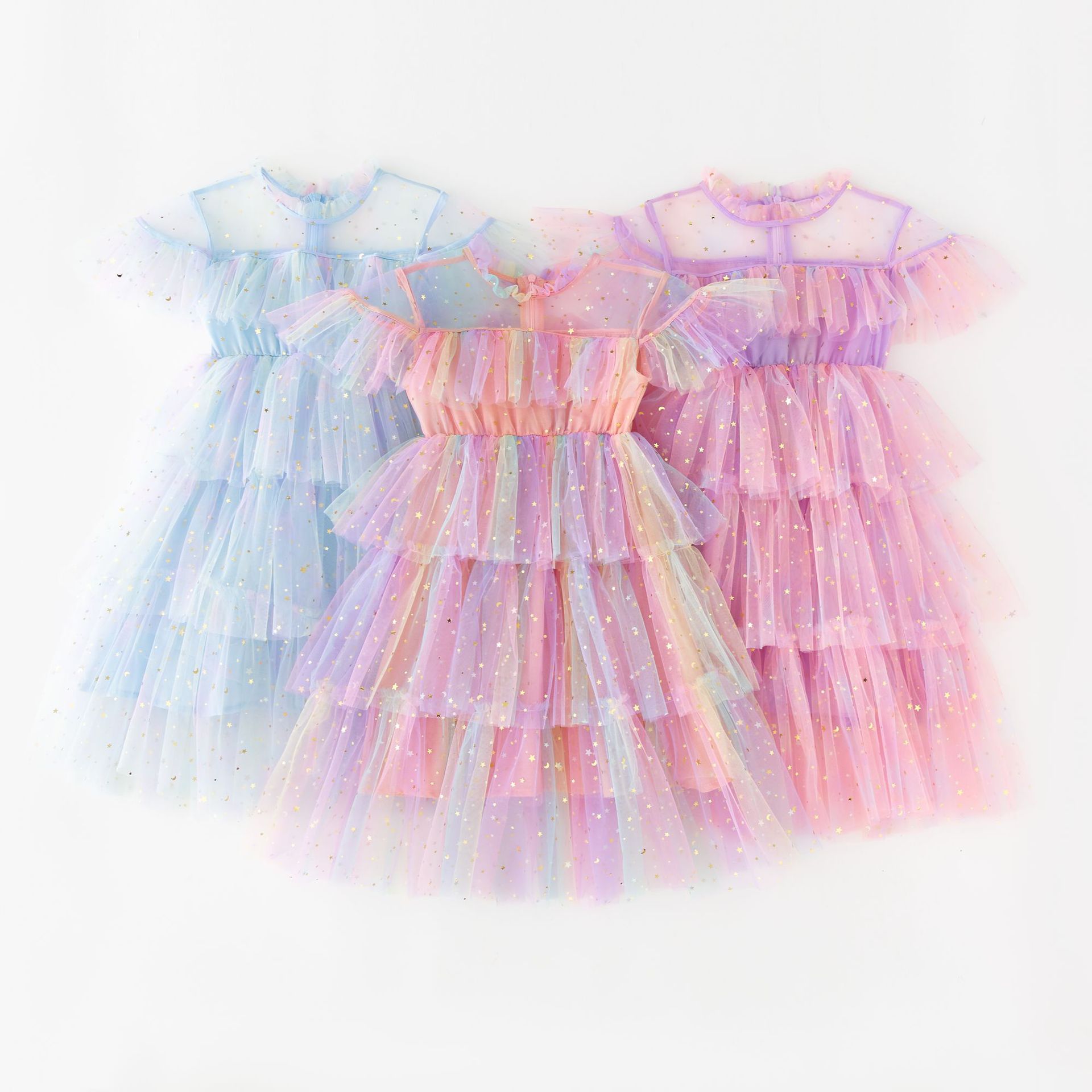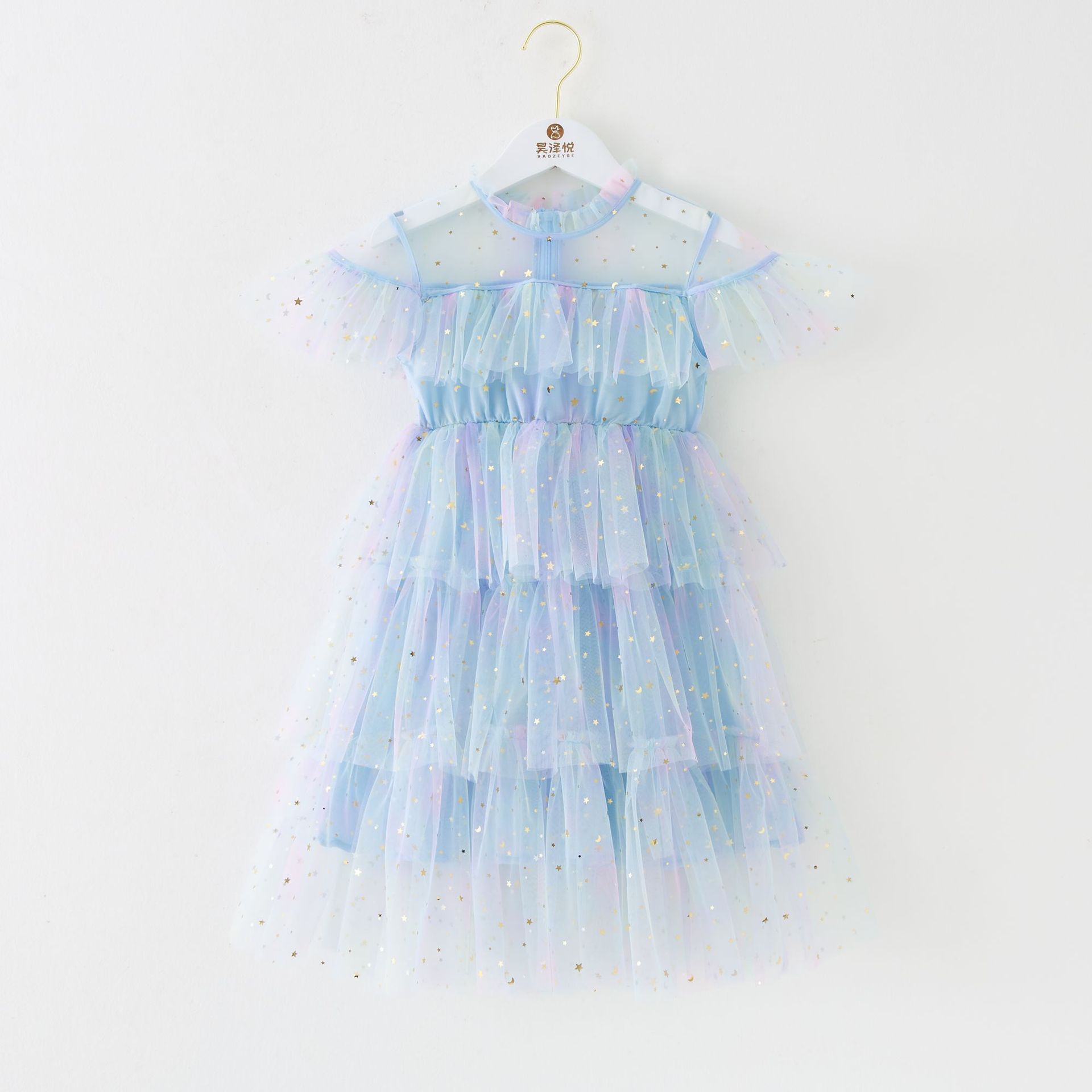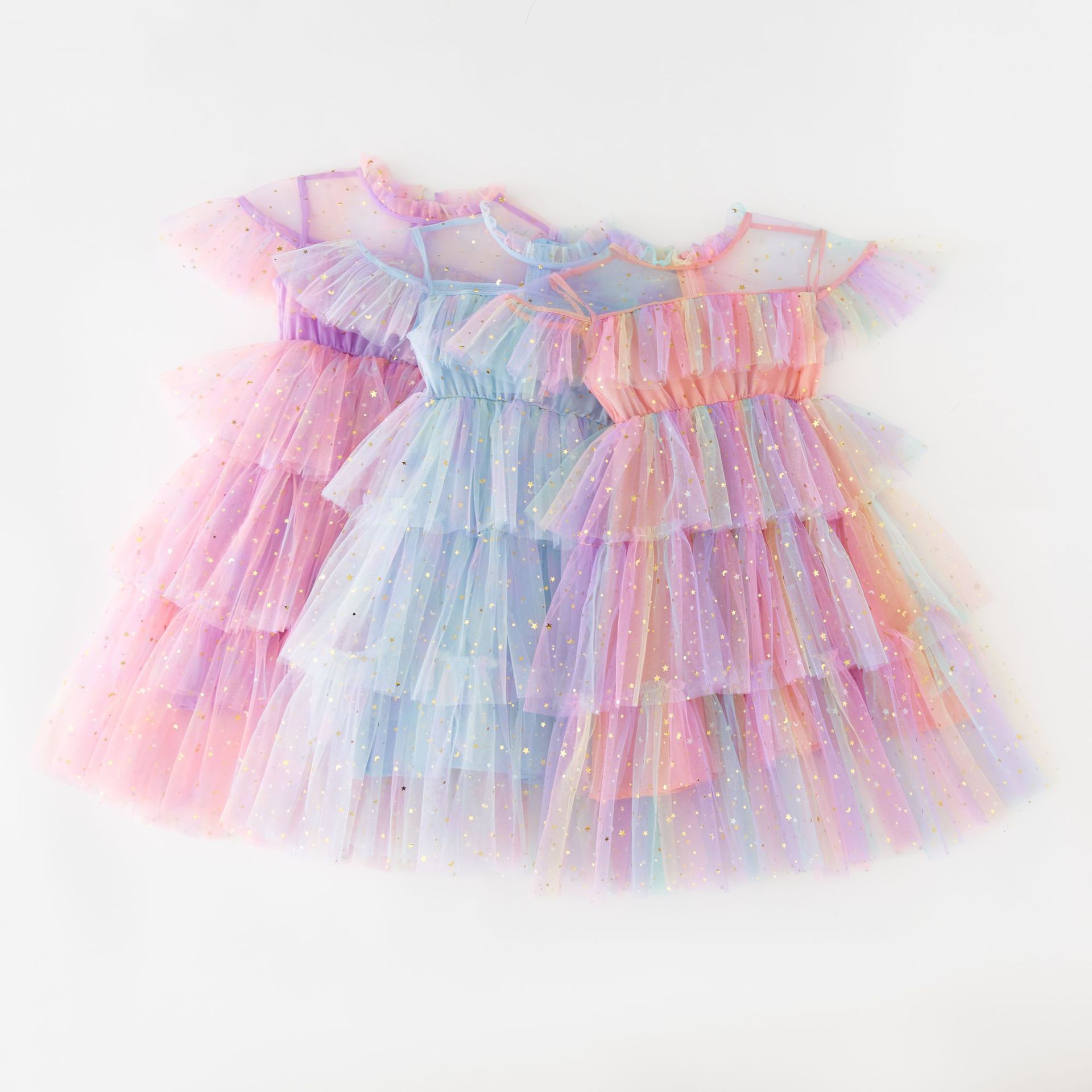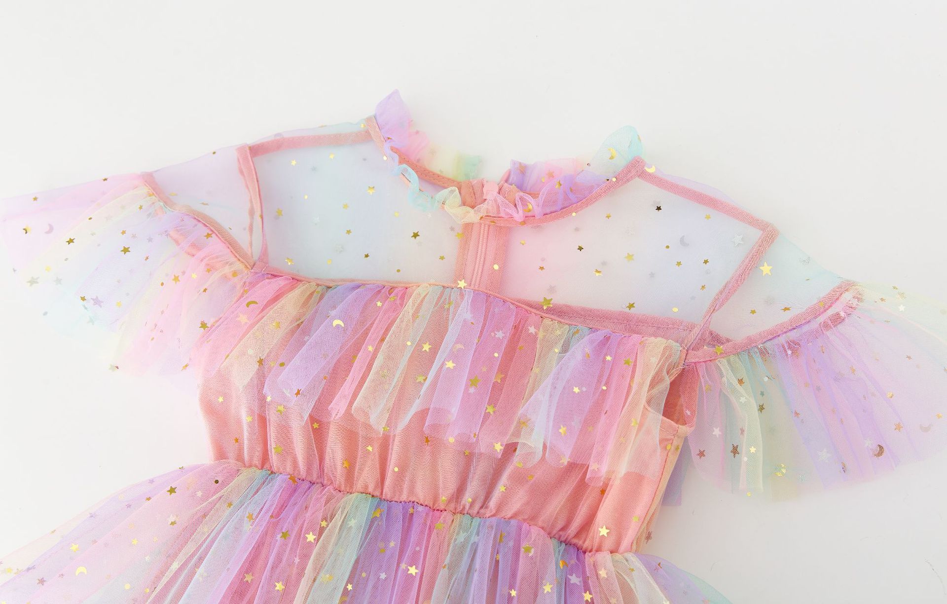 슈퍼 페어리 스타 문 레인보우 메쉬 소녀의 원피스 어린이 공주 원피스 스타일리스트 원피스 한국 판초 원피스스토어 가기
