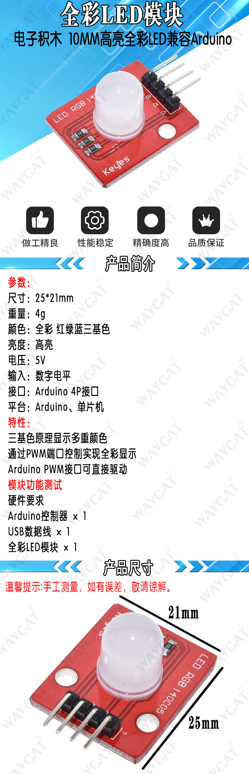 전자 빌딩 블록 RGB 풀 컬러 LED 모듈 10mm 하이라이트 풀 컬러 LED 새로운 호환 Arduino