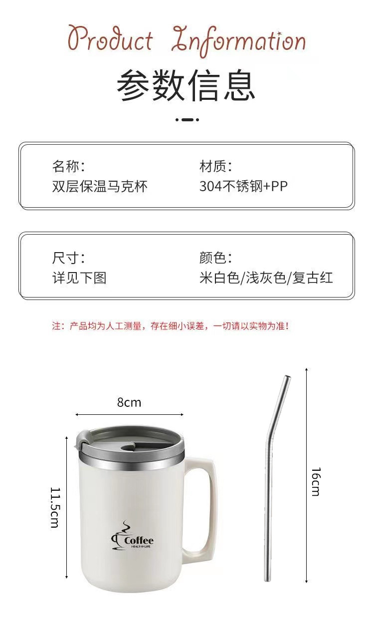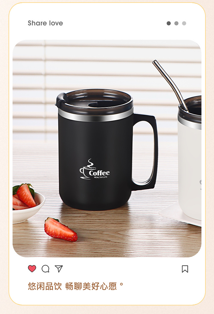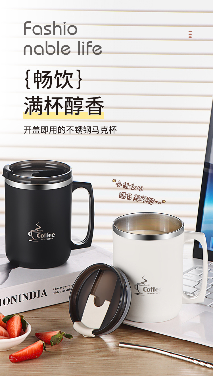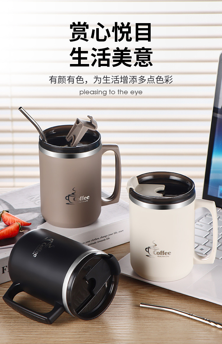국경 간 아마존 편리한 브래킷 머그컵 오피스 컵 보온병 304 더블 레이어 스테인레스 스틸 머그잔