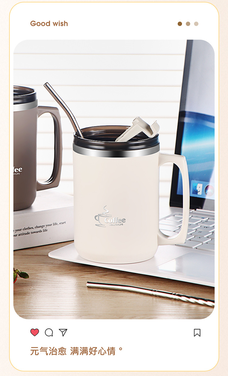 국경 간 아마존 편리한 브래킷 머그컵 오피스 컵 보온병 304 더블 레이어 스테인레스 스틸 머그잔스토어 가기