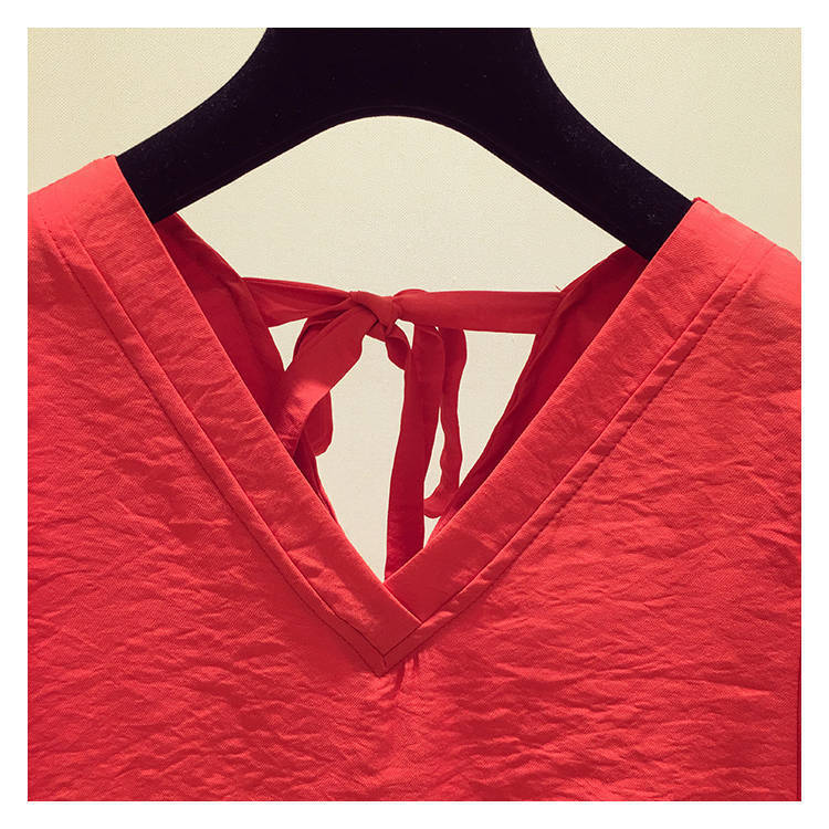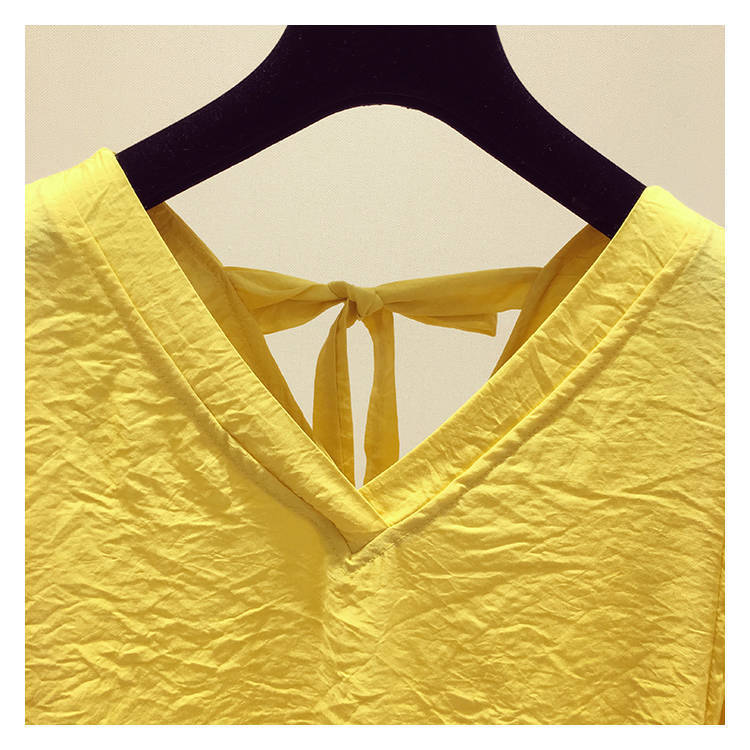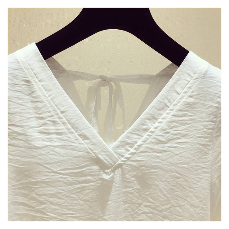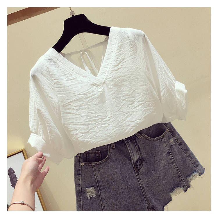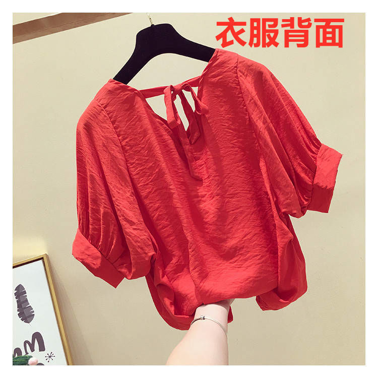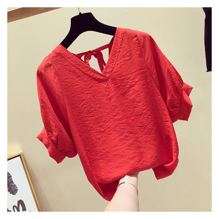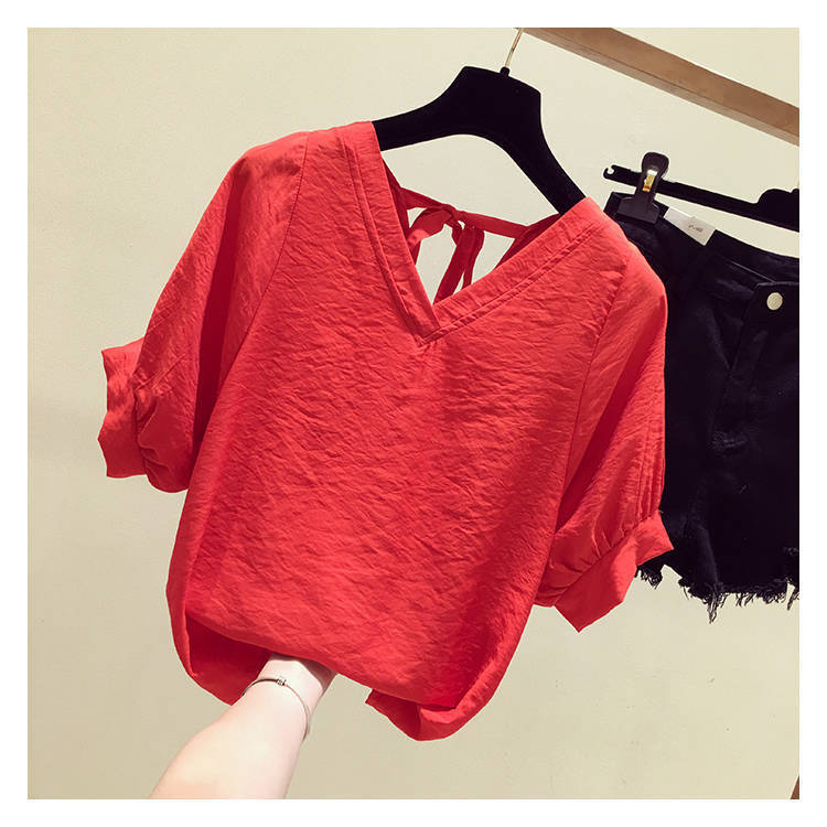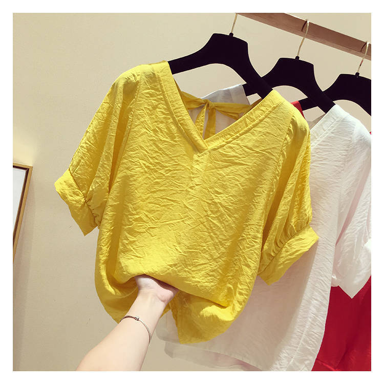 V-넥 등이없는 쉬폰 셔츠 여성용 반팔 2023 새로운 한국 스타일 슈퍼 페어리 달콤한 느슨한 슬림 배꼽 커버 탑 트렌디스토어 가기