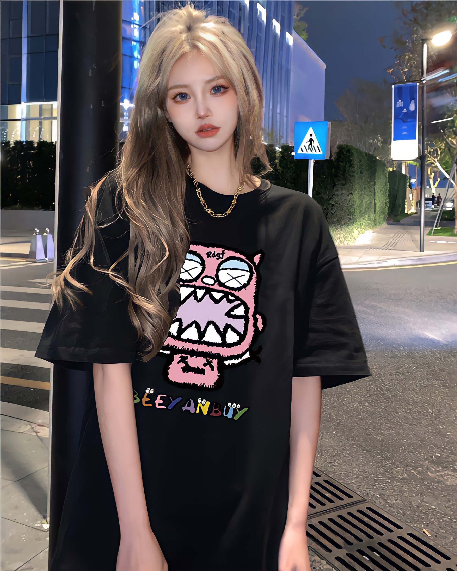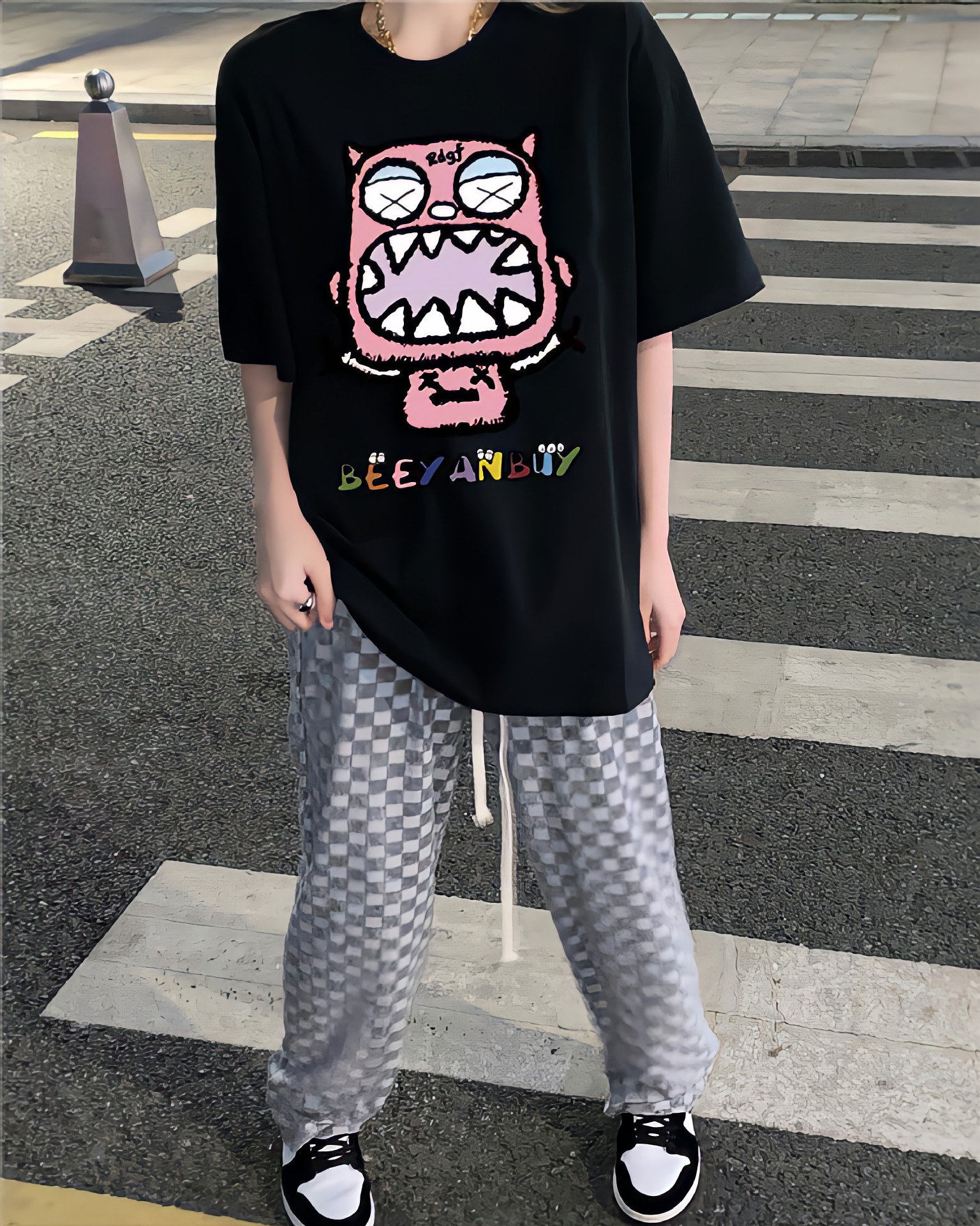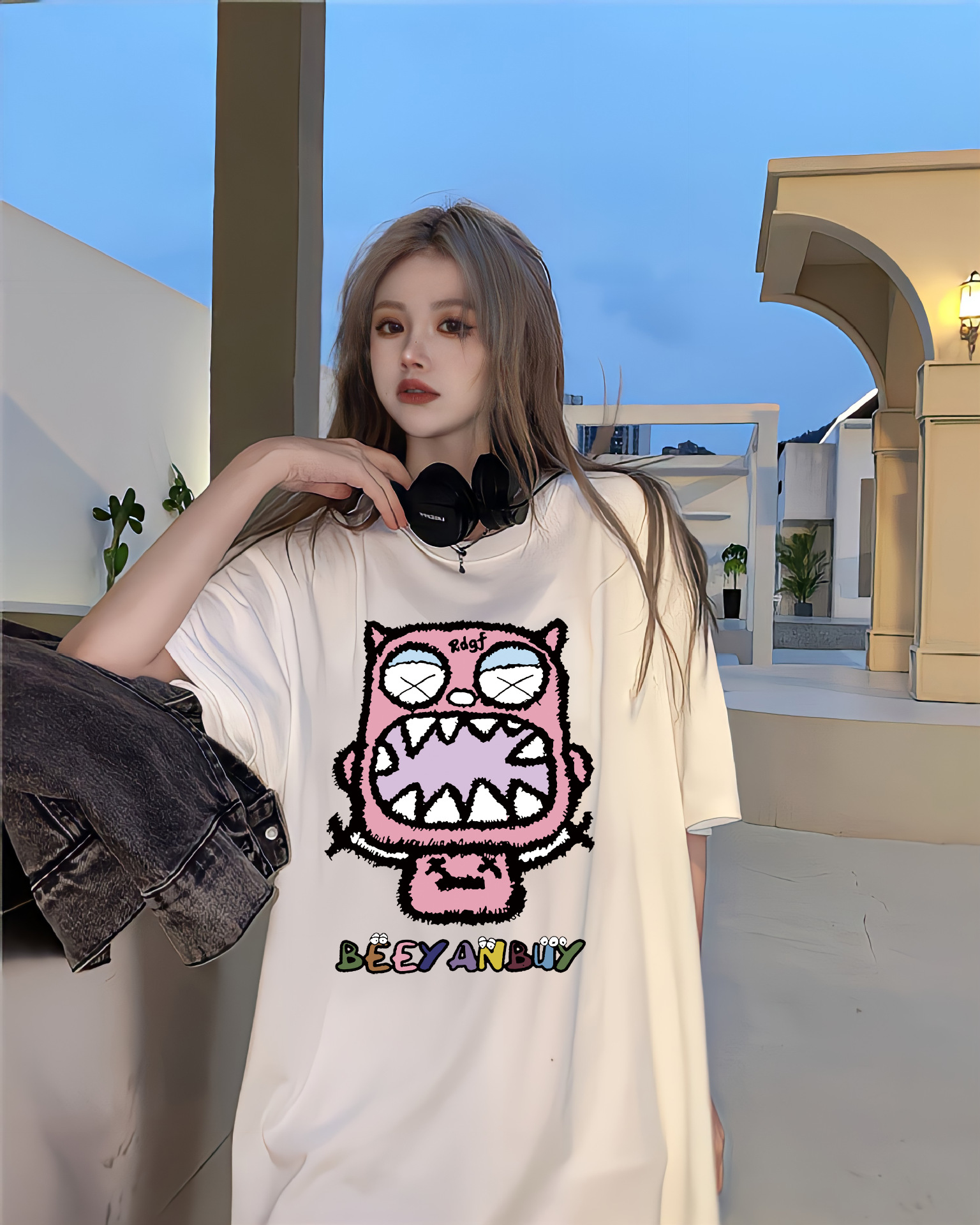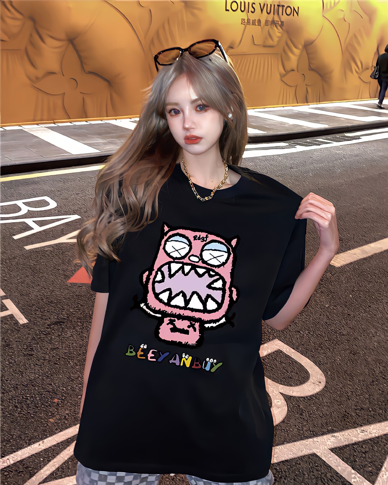 디자인 센스 레트로 재미있는 인쇄 반팔 티셔츠 여성용 여름 새로운 루즈한 모든 매치 캐주얼 중간 길이 탑 인스토어 가기