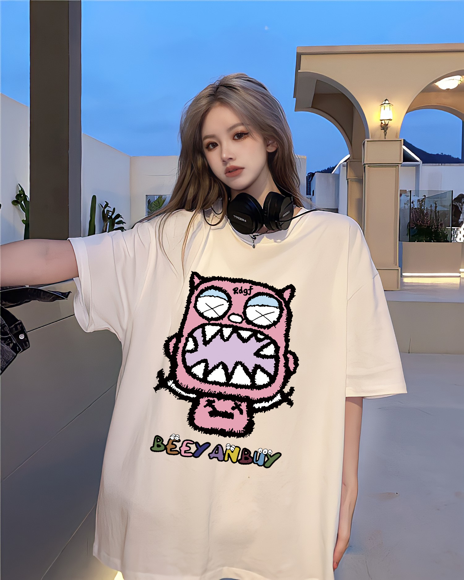 디자인 센스 레트로 재미있는 인쇄 반팔 티셔츠 여성용 여름 새로운 루즈한 모든 매치 캐주얼 중간 길이 탑 인