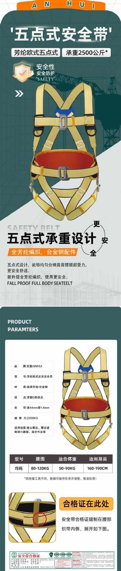 안후이 전신 아라미드 안전 벨트 공사 전원 부지 아라미드 5 점 난연성 고온 안전 벨트