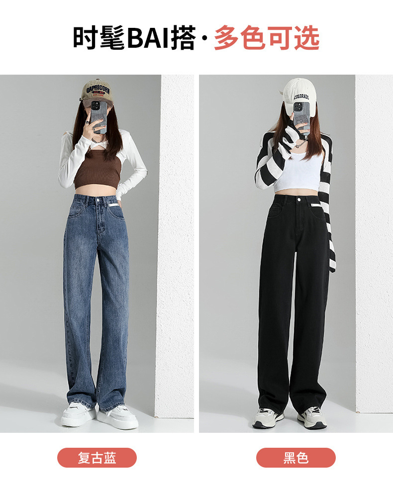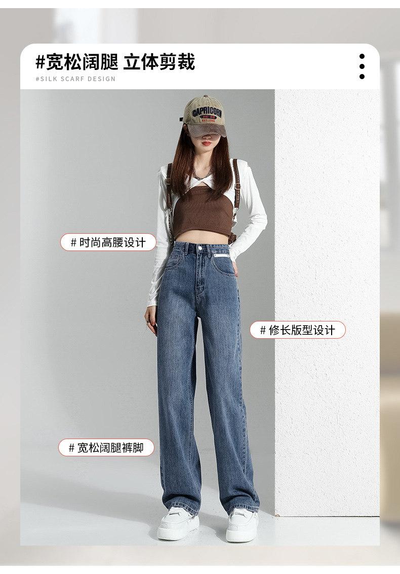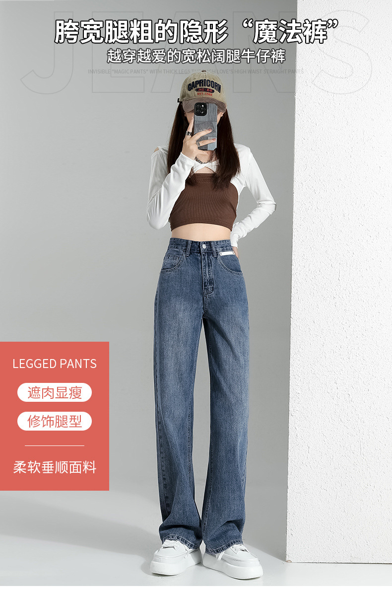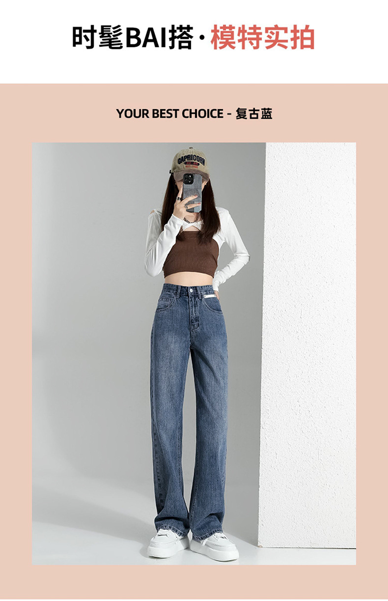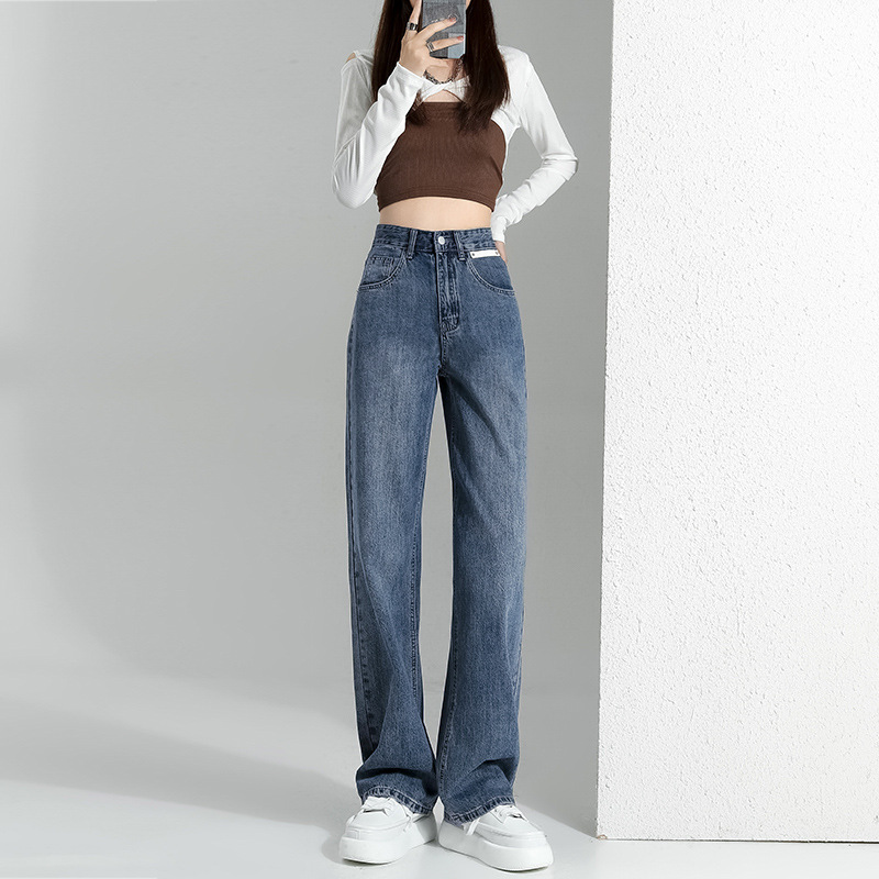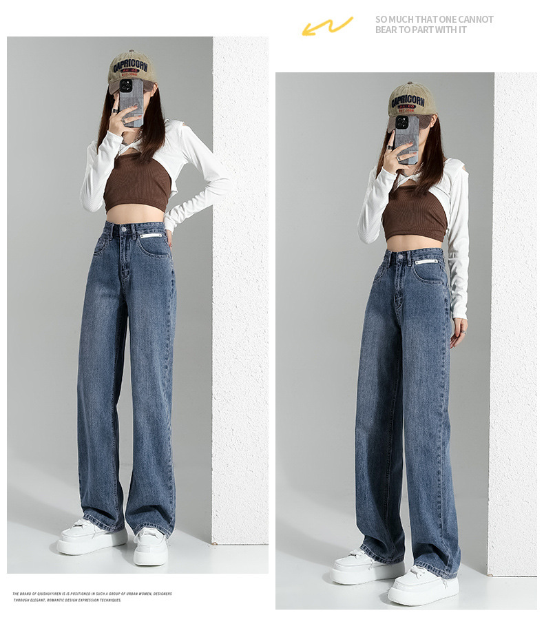 하이 웨이스트 와이드 레그 청바지 여성용 봄과 가을 2023 새로운 슬리밍 모든 매치 루즈한 드레이핑 레트로 스트레이트 팬츠스토어 가기